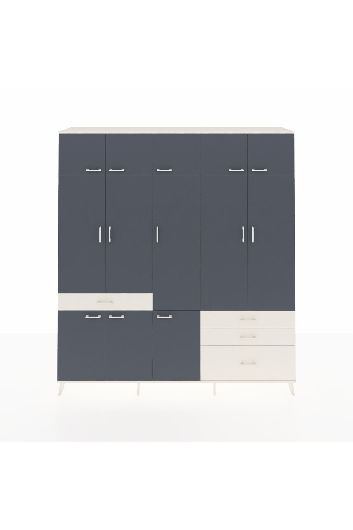 Hyperion Dolap 8 Raflı 4 Çekmeceli 3 Askılı 220x44x243 Aytaşı-Antrasit/Aytaşı
