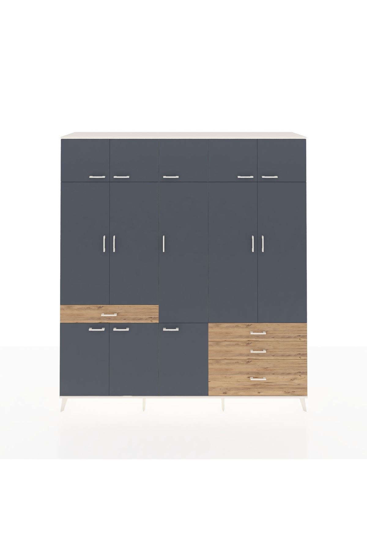 Hyperion Dolap 8 Raflı 4 Çekmeceli 3 Askılı 220x44x243 Antrasit-Antrasit/Çam