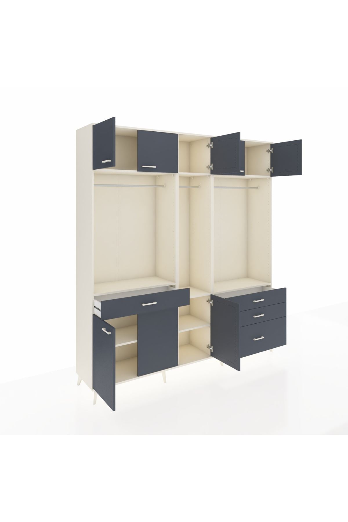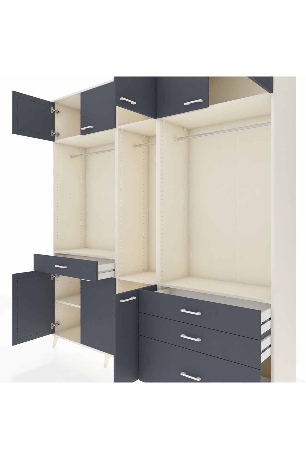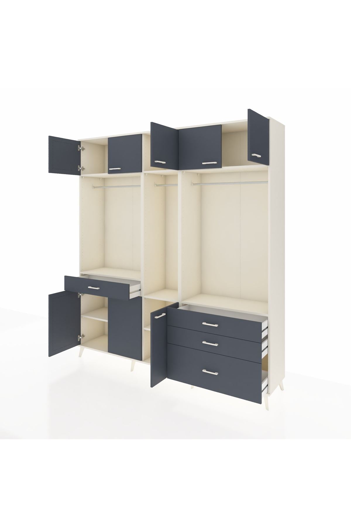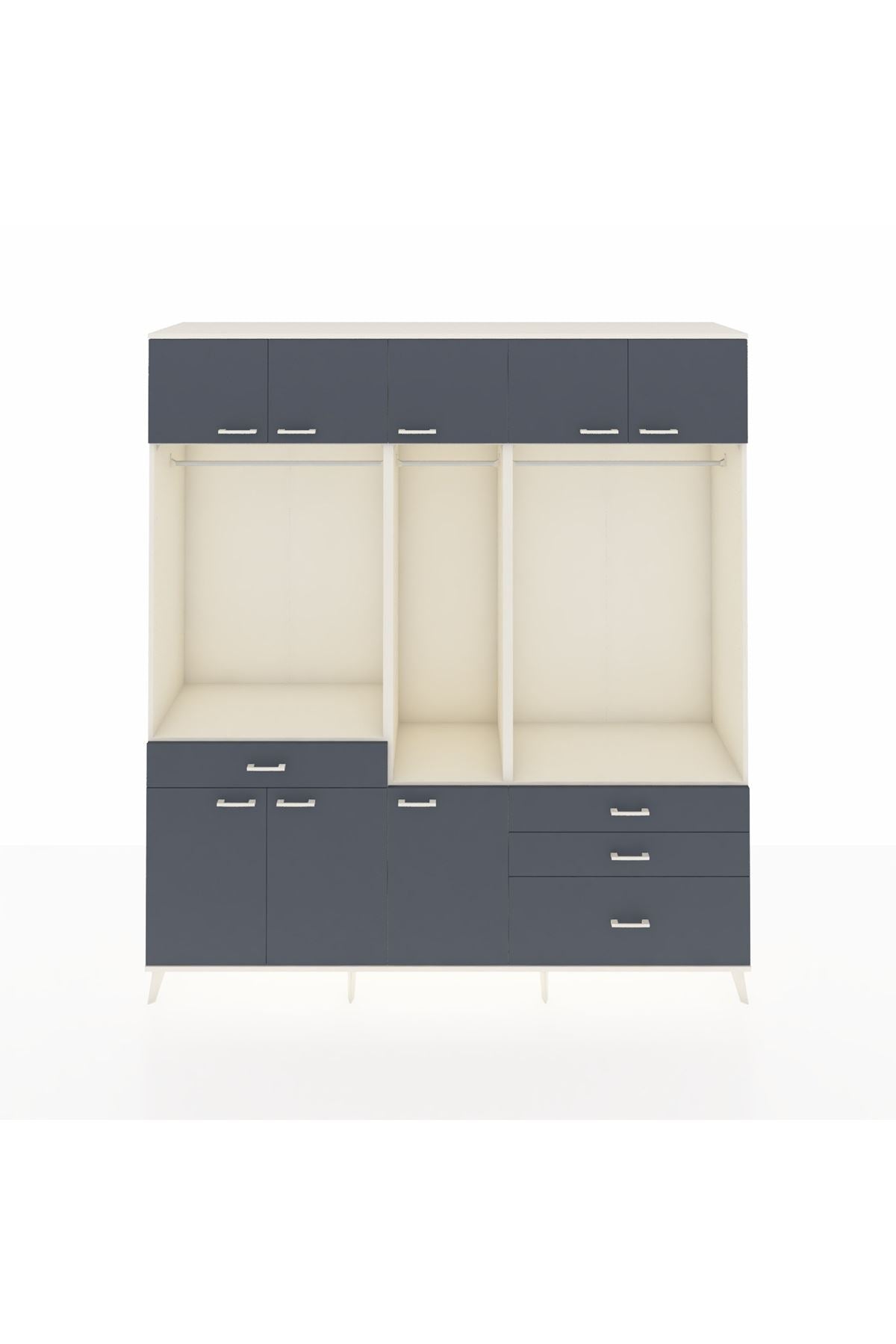 Hyperion Dolap 8 Raflı 4 Çekmeceli 3 Askılı 220x44x243 Aytaşı-Antrasit/Antrasit