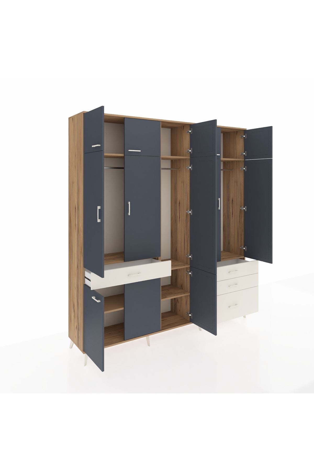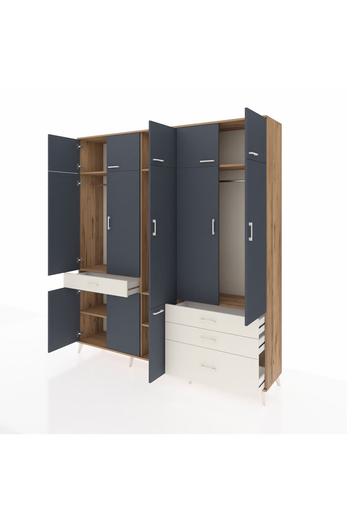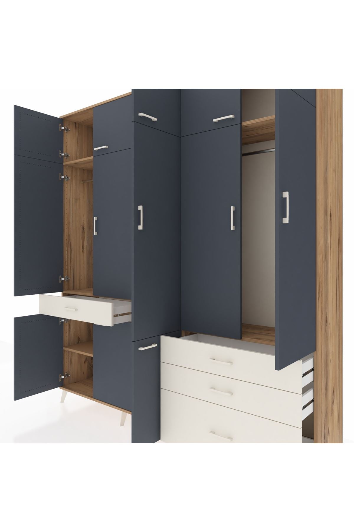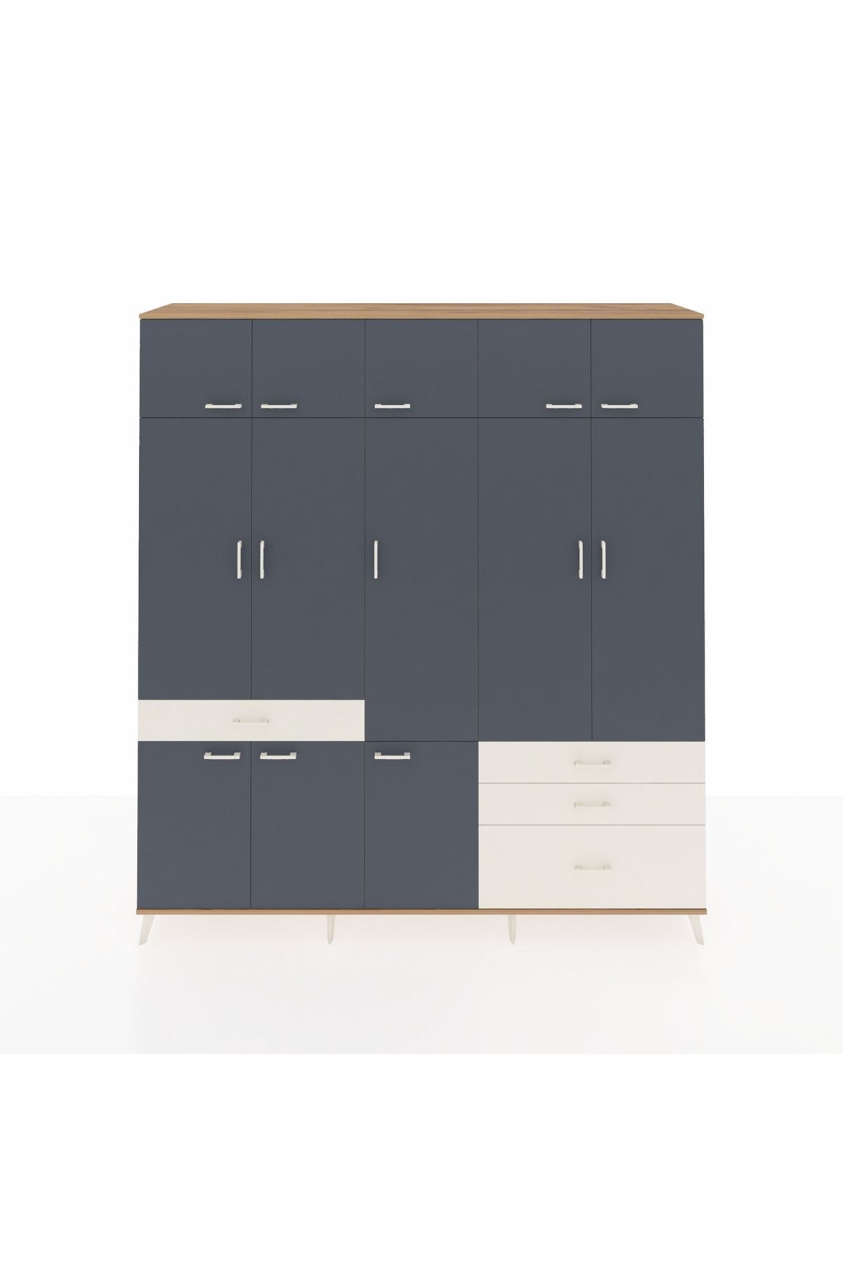 Hyperion Dolap 8 Raflı 4 Çekmeceli 3 Askılı 220x44x243 Çam-Antrasit/Aytaşı