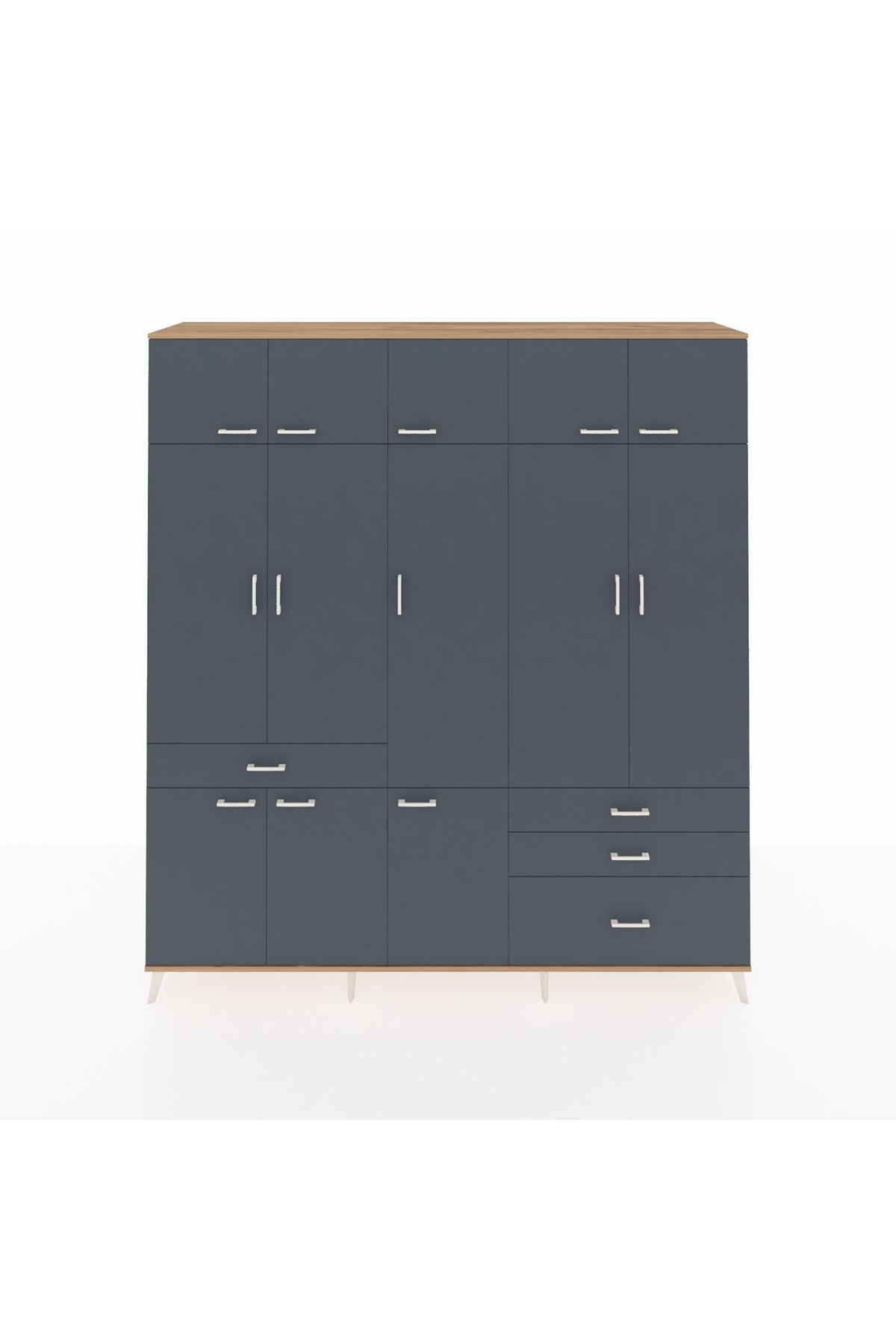 Hyperion Dolap 8 Raflı 4 Çekmeceli 3 Askılı 220x44x243 Çam-Antrasit/Antrasit