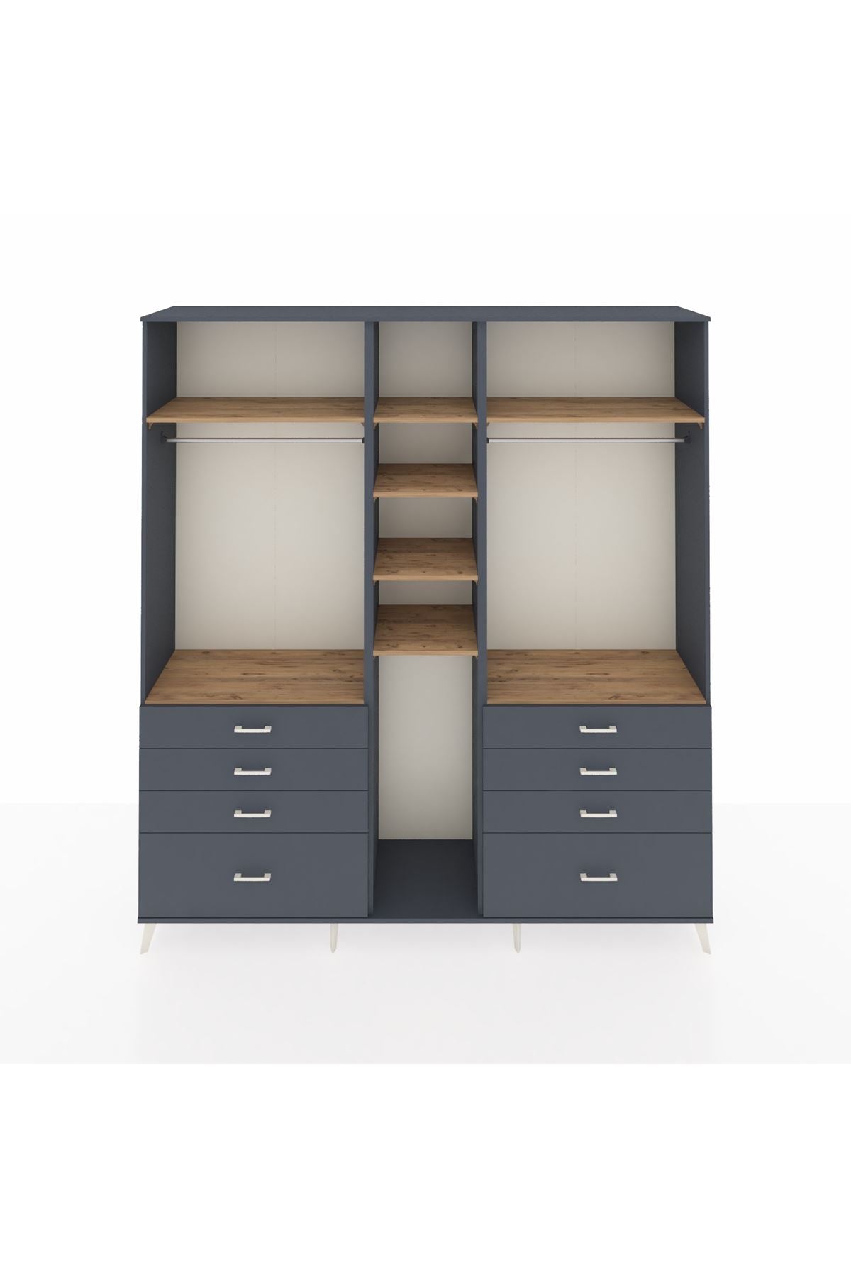 Hyperion Dolap 8 Raflı 8 Çekmeceli 3 Askılı 220x44x243 Antrasit-Çam/Antrasit