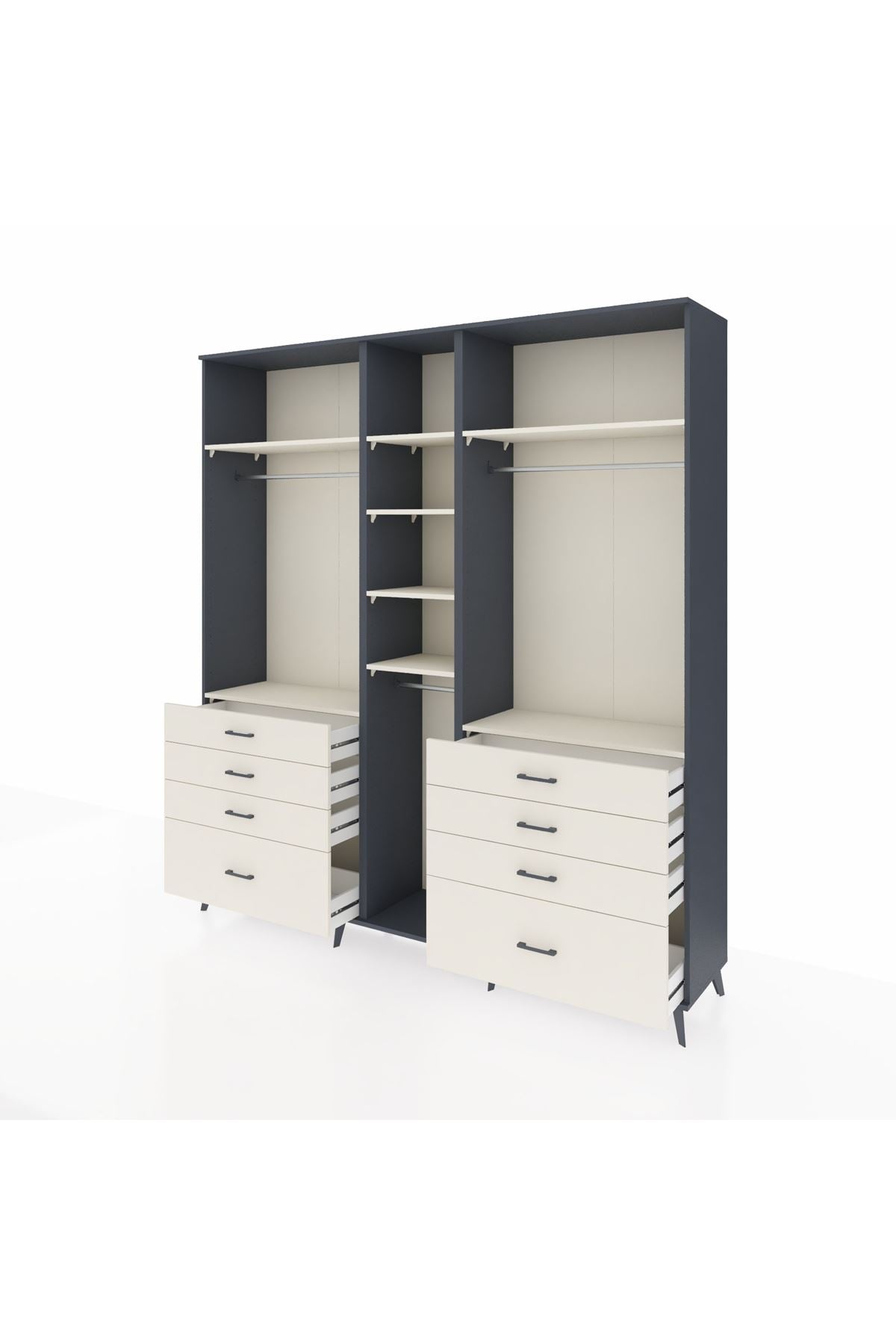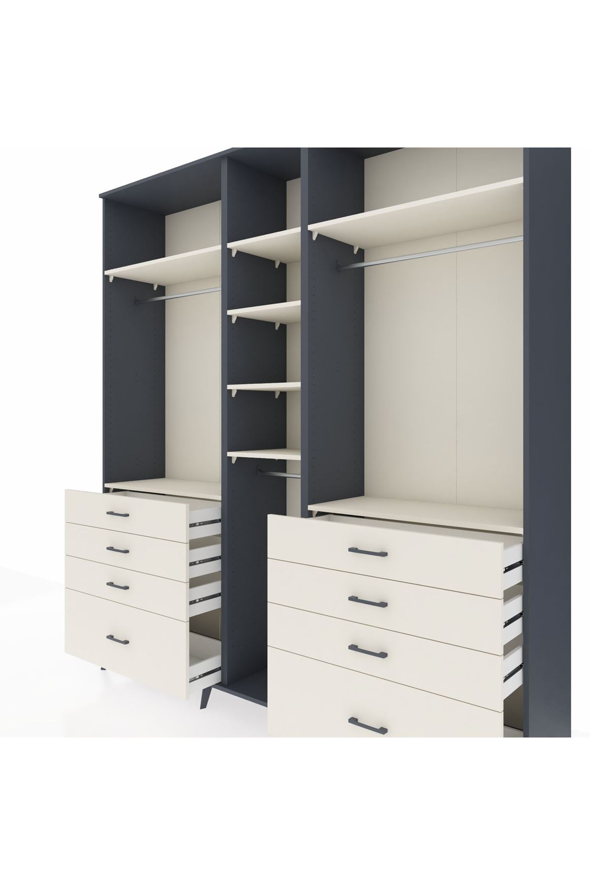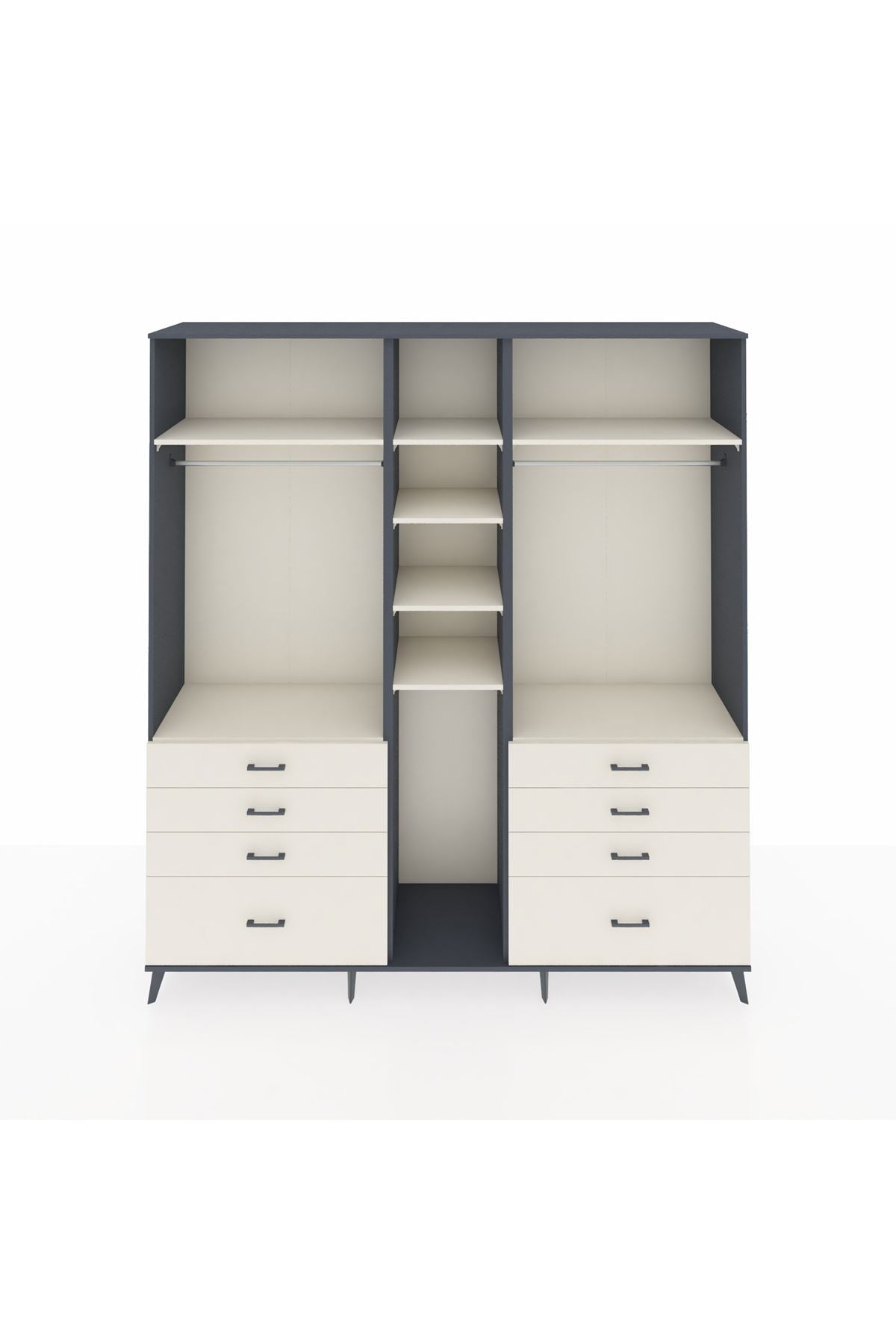 Hyperion Dolap 8 Raflı 8 Çekmeceli 3 Askılı 220x44x243 Antrasit-Aytaşı/Aytaşı