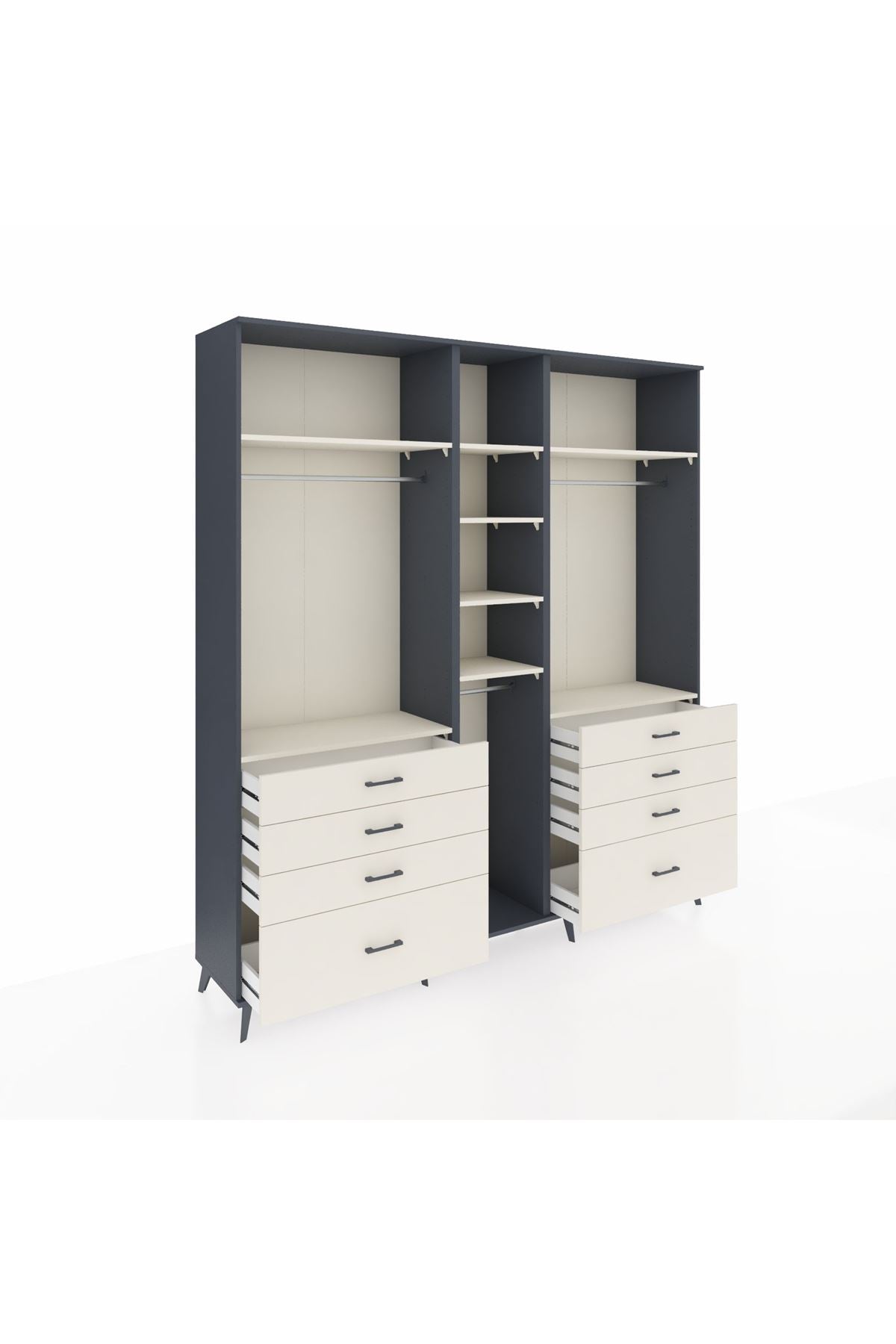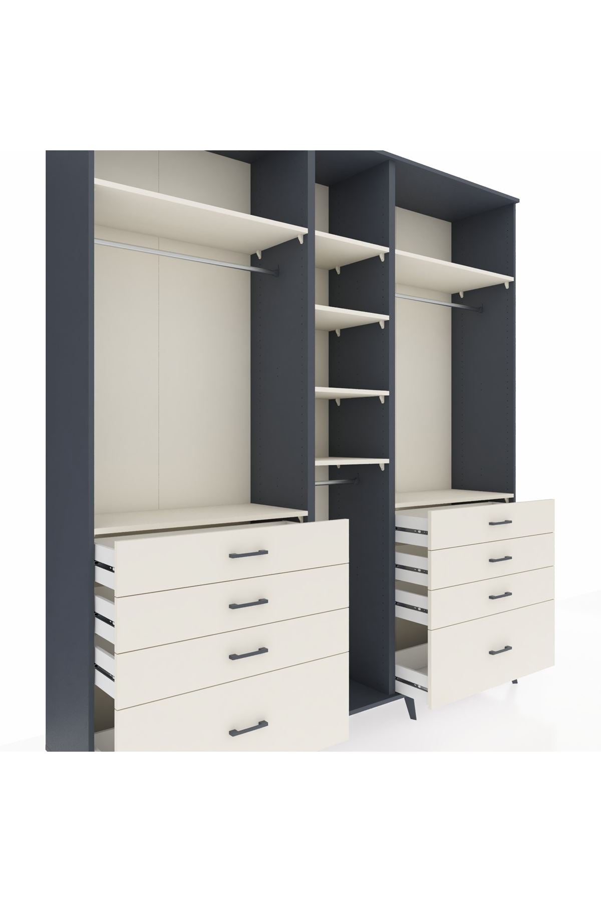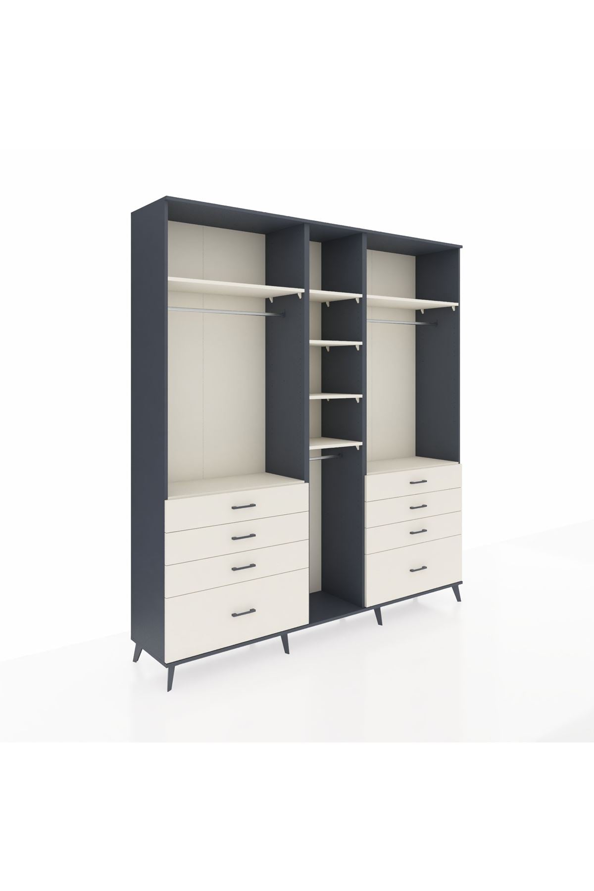 Hyperion Dolap 8 Raflı 8 Çekmeceli 3 Askılı 220x44x243 Antrasit-Aytaşı/Aytaşı