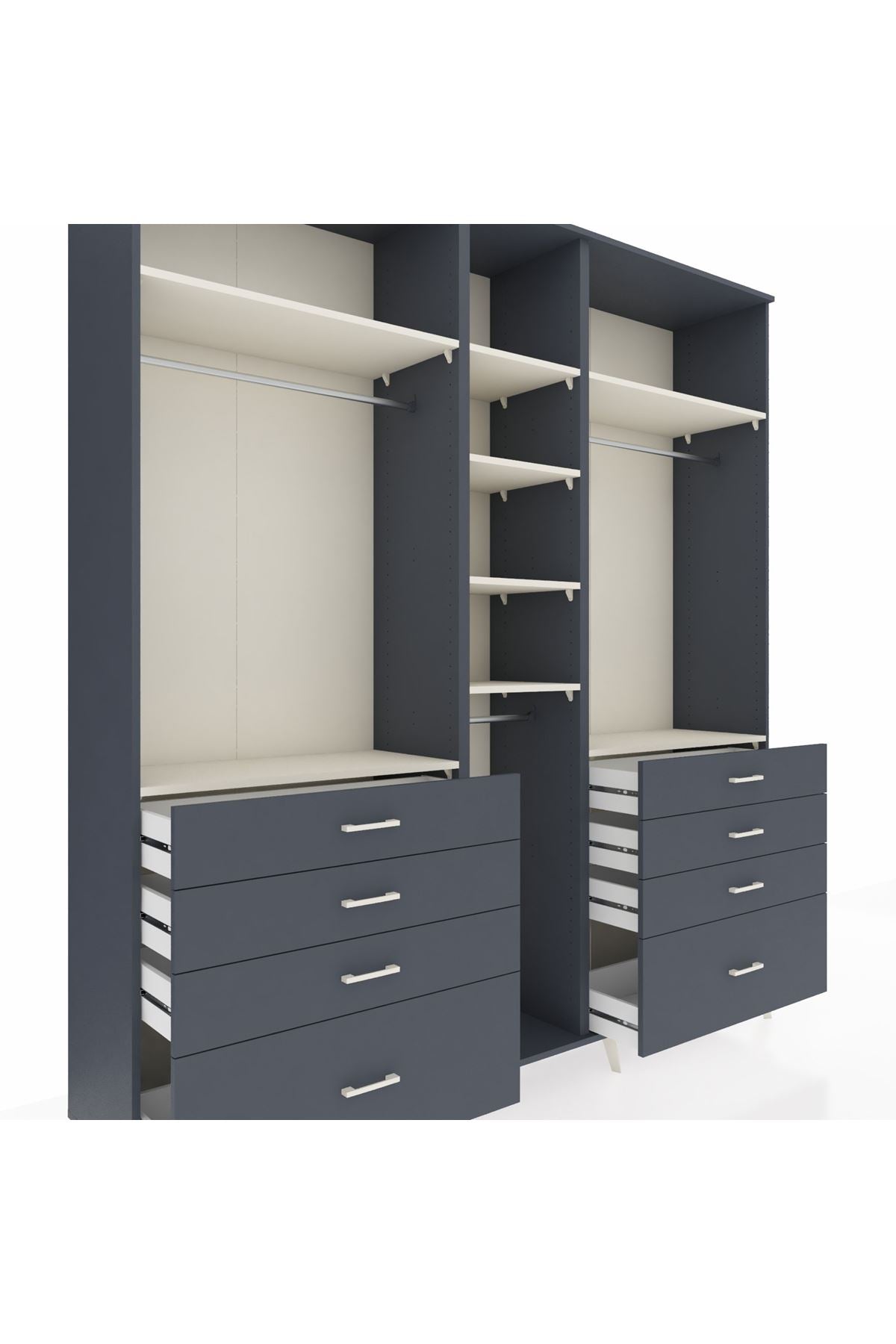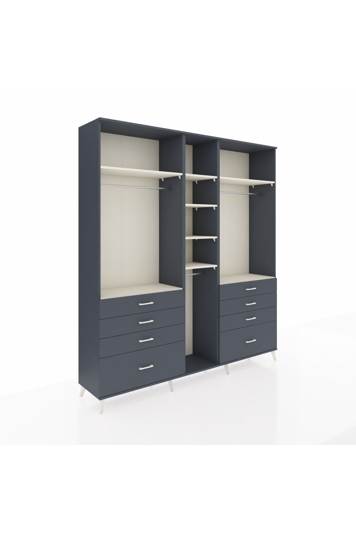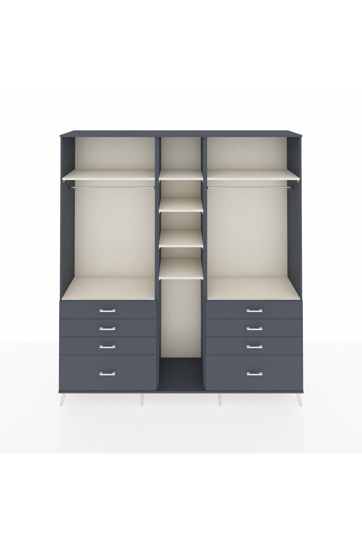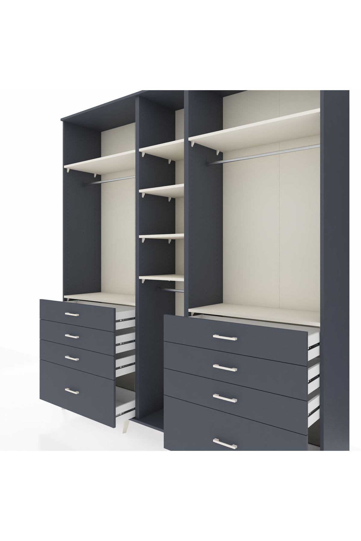 Hyperion Dolap 8 Raflı 8 Çekmeceli 3 Askılı 220x44x243 Antrasit-Aytaşı/Antrasit📐 Ölçüler: