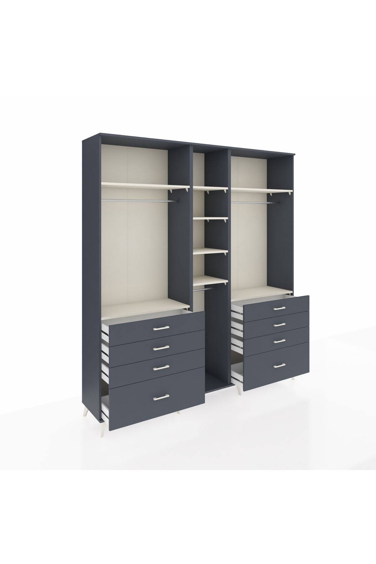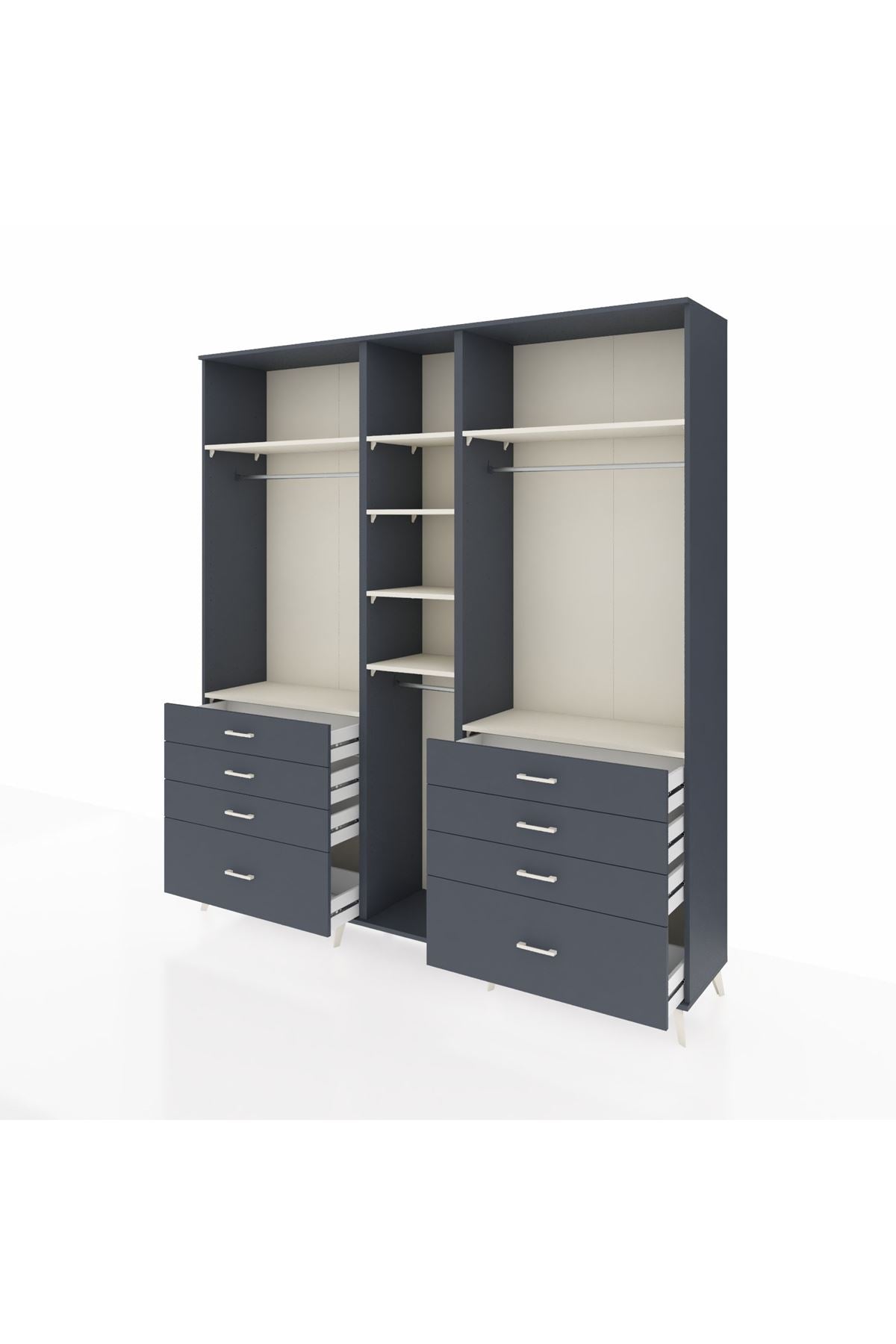 Hyperion Dolap 8 Raflı 8 Çekmeceli 3 Askılı 220x44x243 Antrasit-Aytaşı/Antrasit