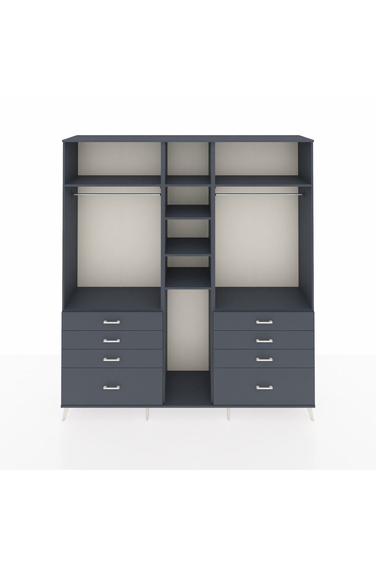 Hyperion Dolap 8 Raflı 8 Çekmeceli 3 Askılı 220x44x243 Antrasit-Antrasit/Antrasit