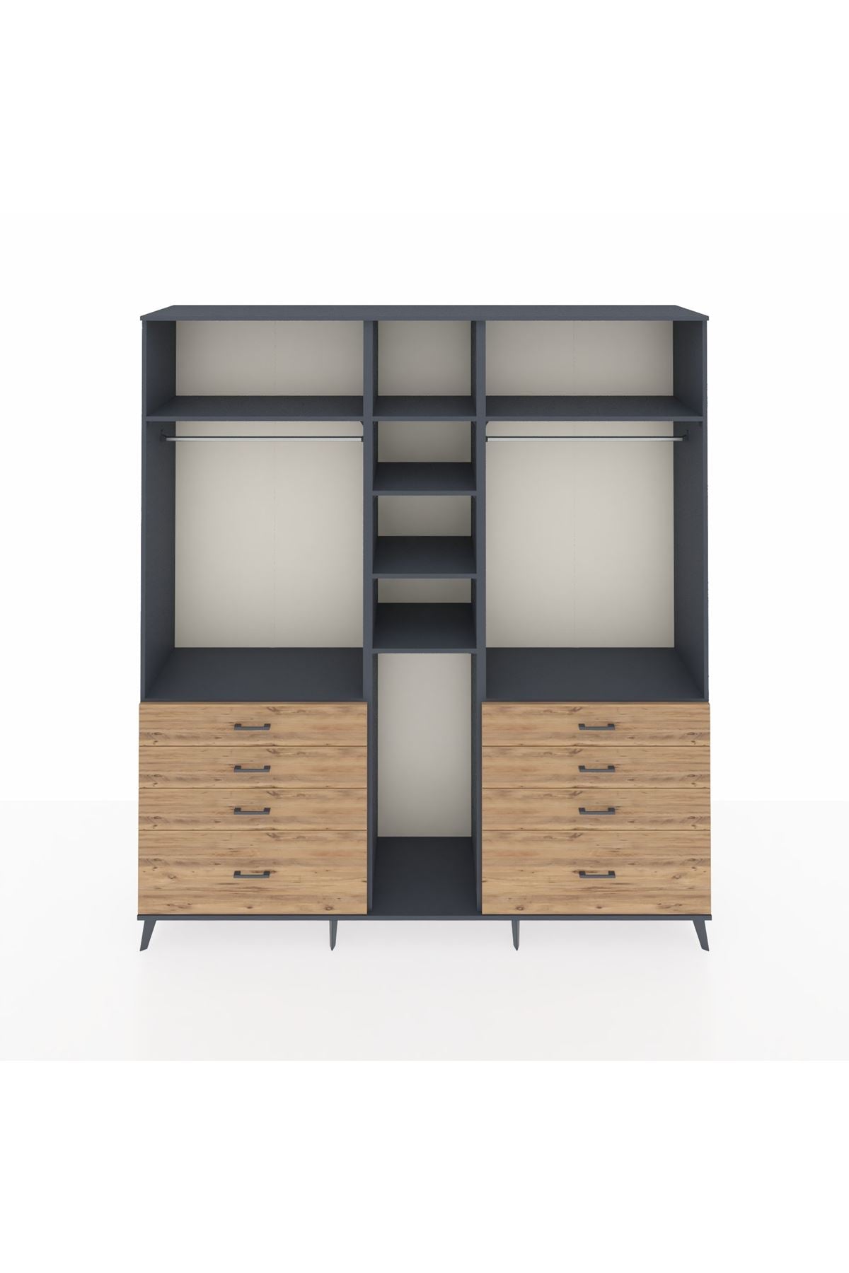 Hyperion Dolap 8 Raflı 8 Çekmeceli 3 Askılı 220x44x243 Antrasit-Antrasit/Çam