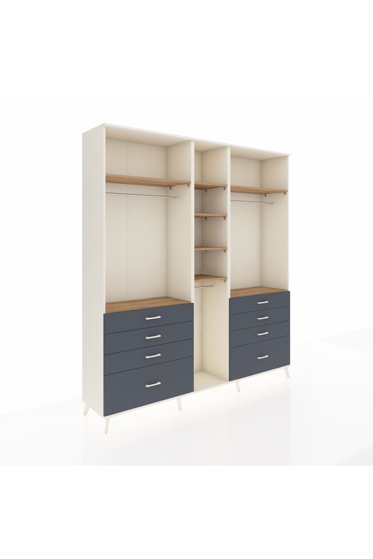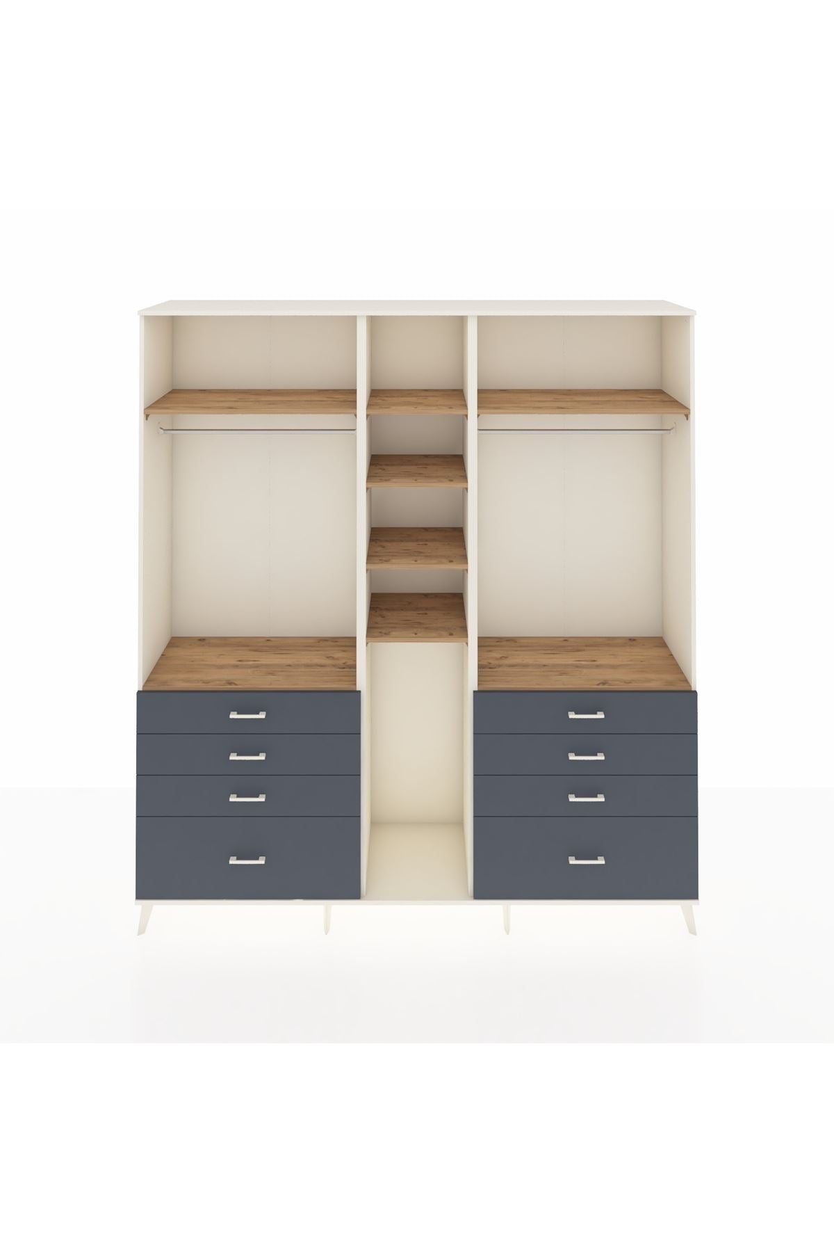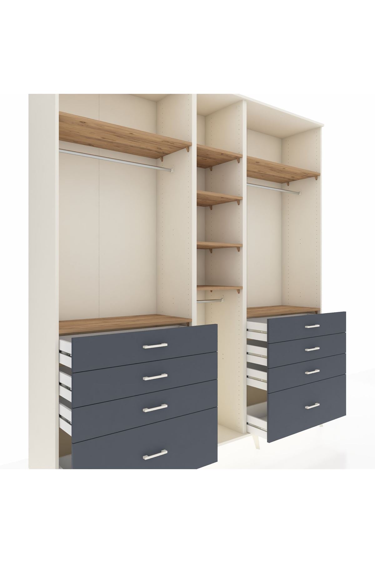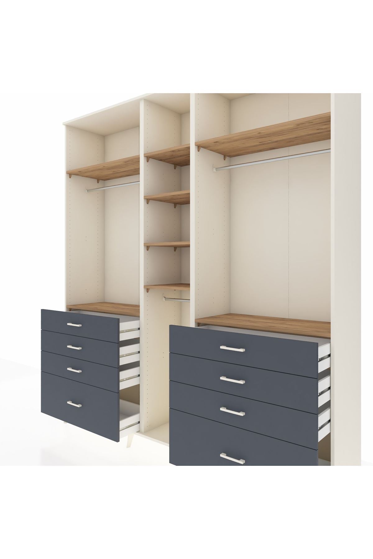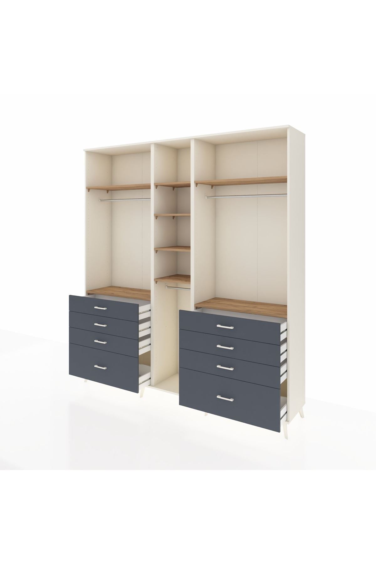 Hyperion Dolap 8 Raflı 8 Çekmeceli 3 Askılı 220x44x243 Aytaşı-Çam/Antrasit