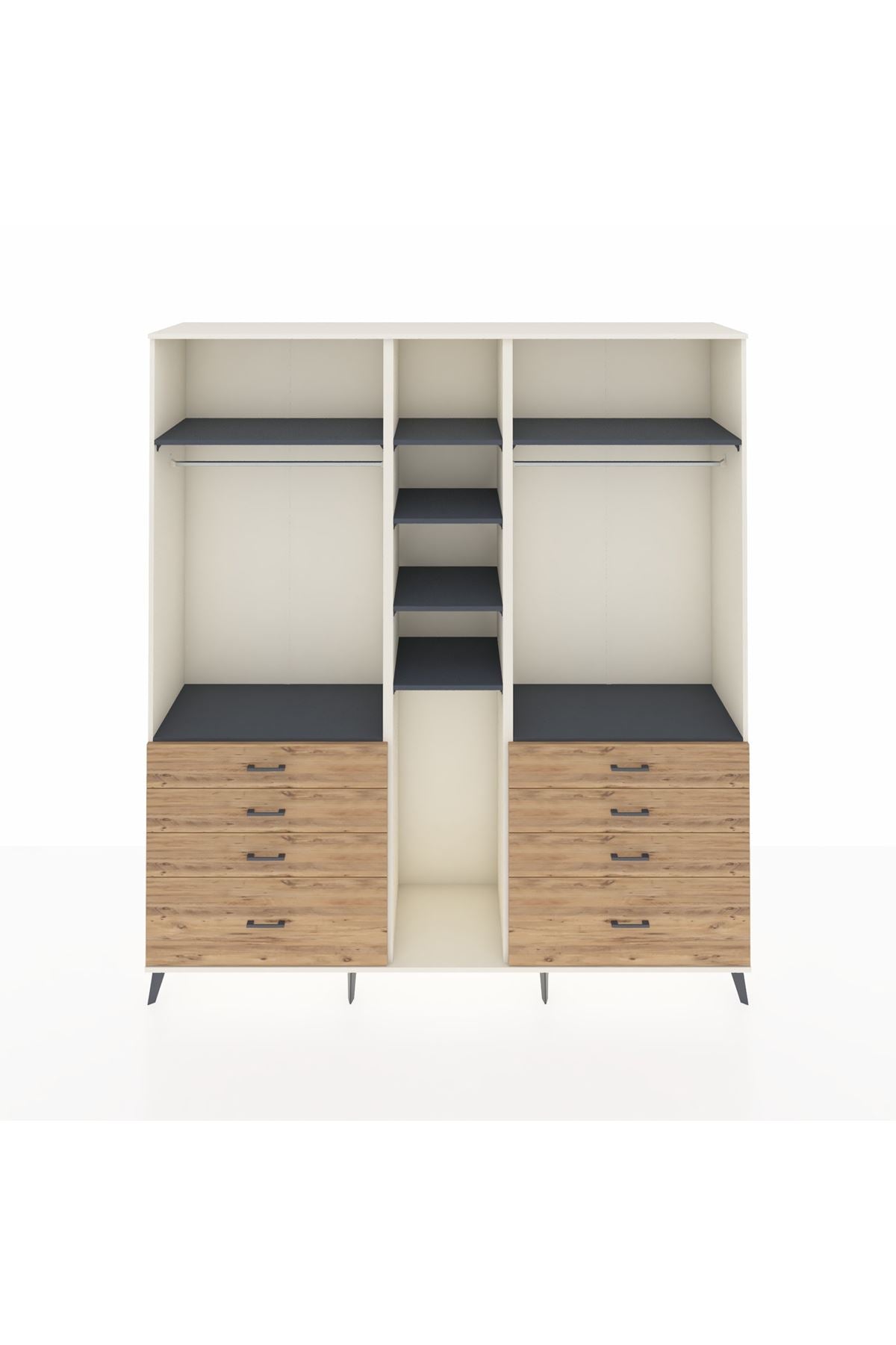 Hyperion Dolap 8 Raflı 8 Çekmeceli 3 Askılı 220x44x243 Aytaşı-Antrasit/Çam