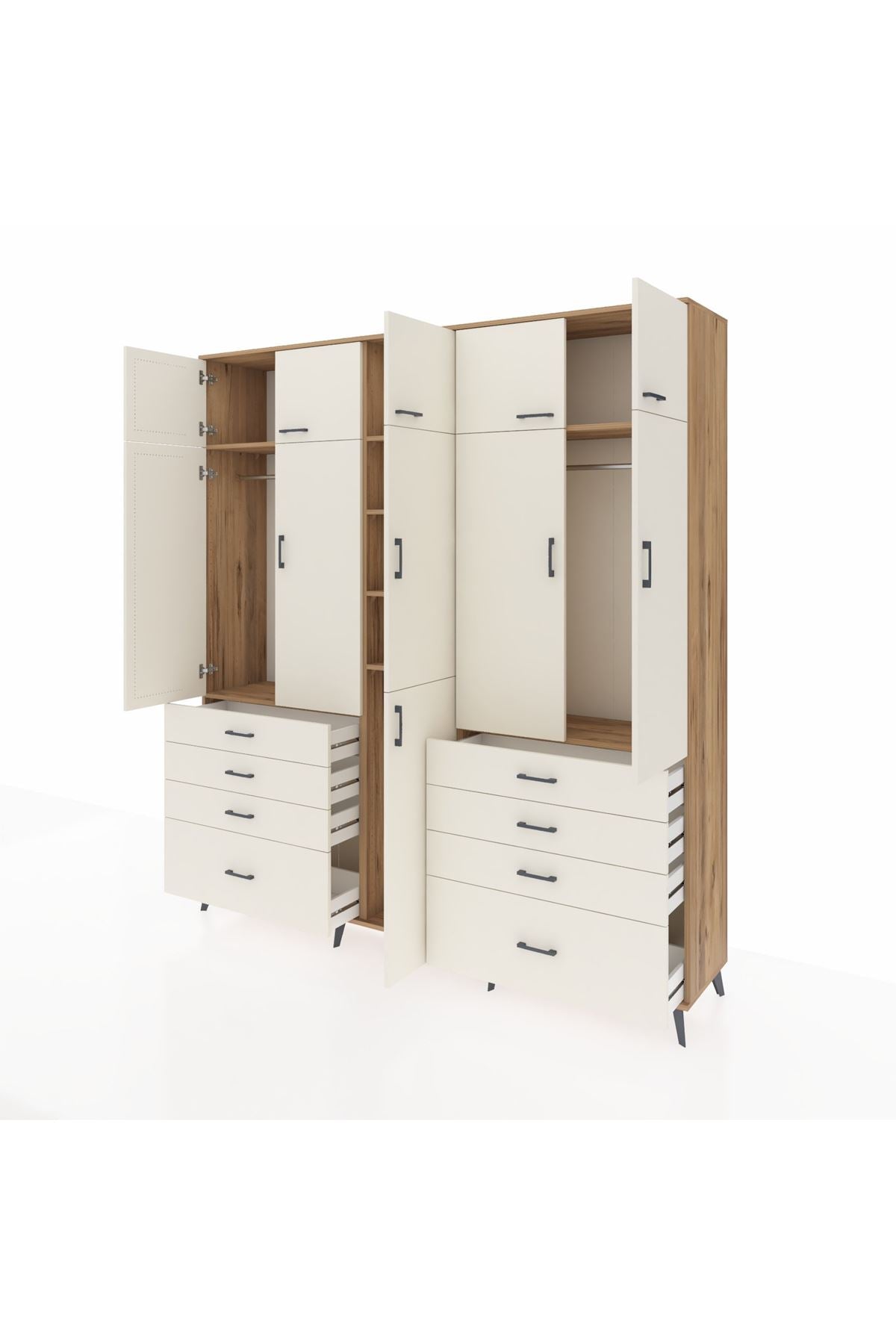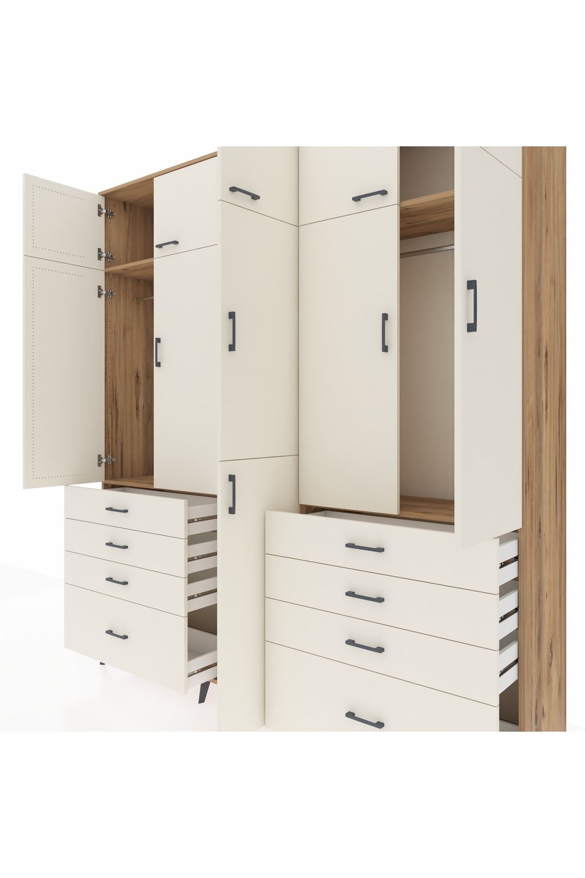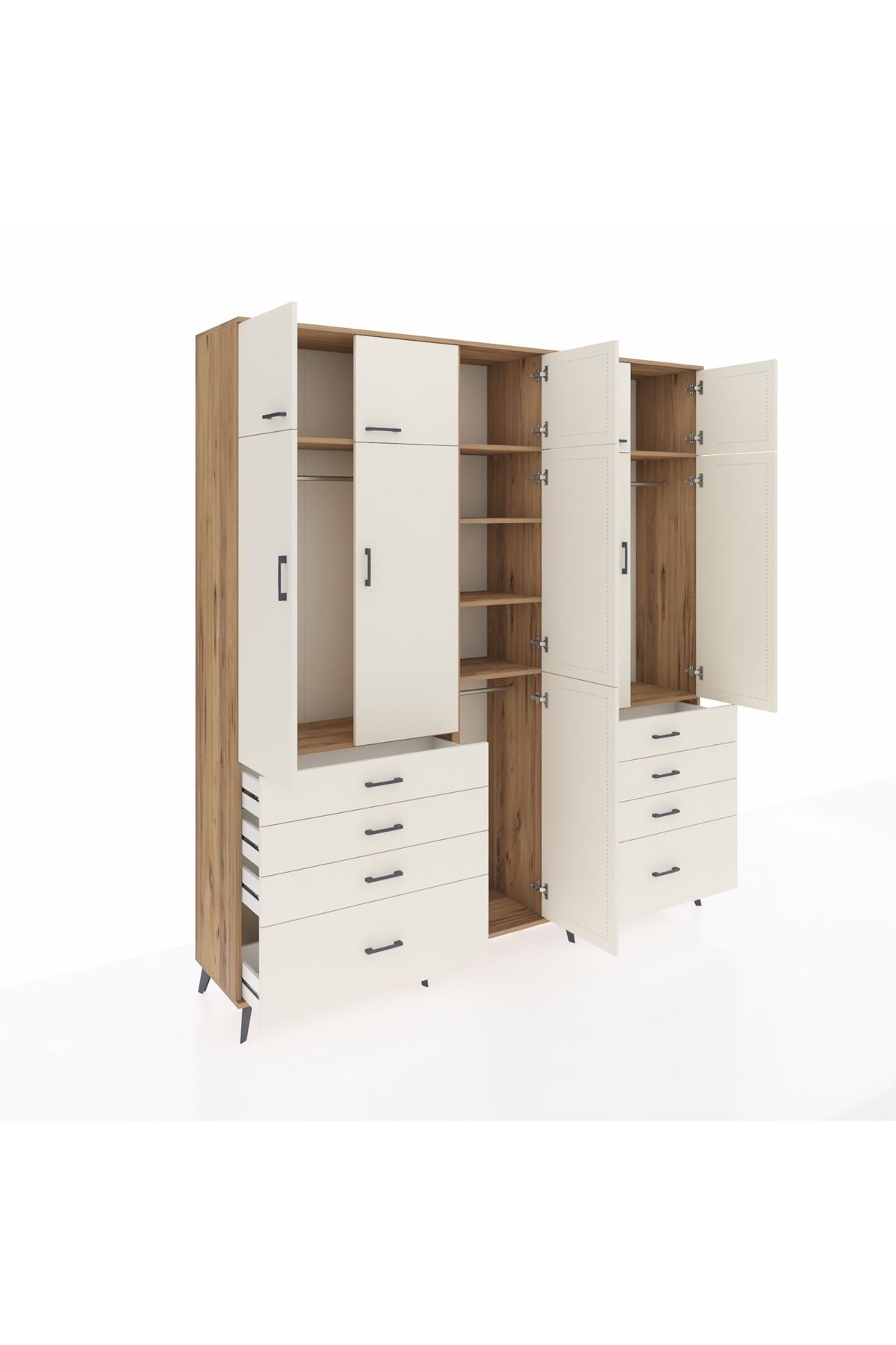 Hyperion Dolap 8 Raflı 8 Çekmeceli 3 Askılı 220x44x243 Çam-Aytaşı/Aytaşı