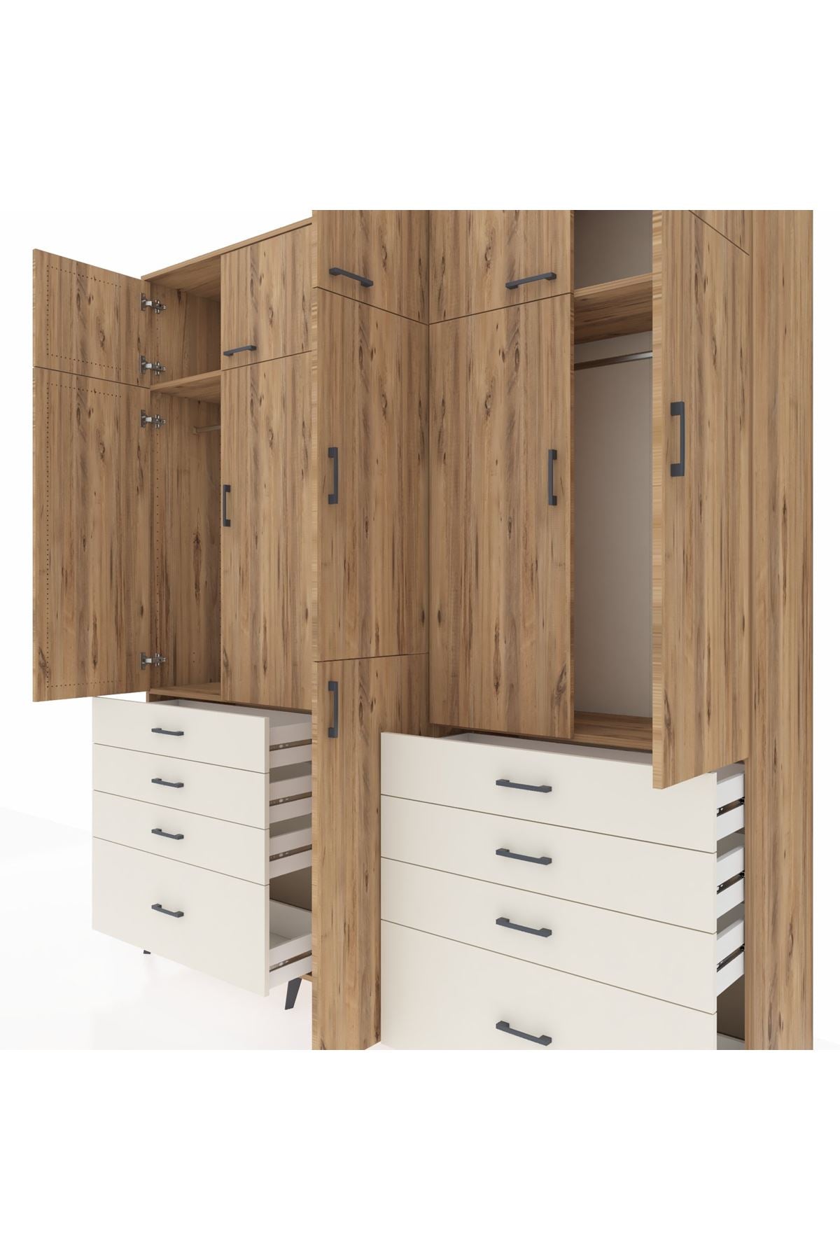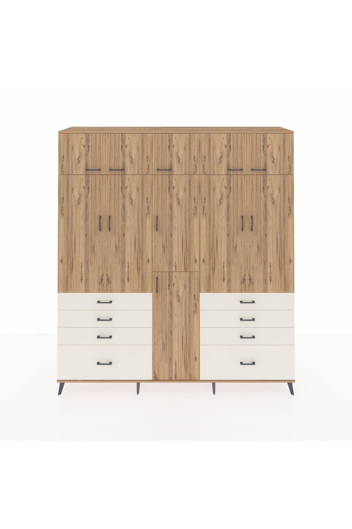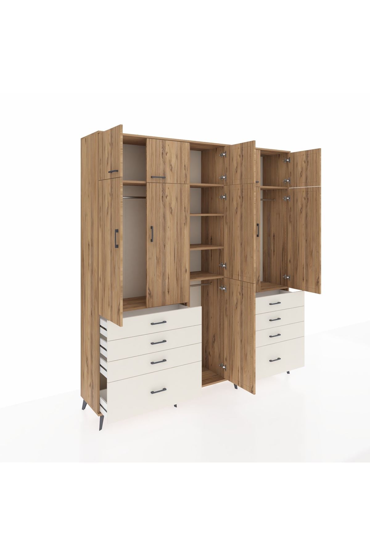 Hyperion Dolap 8 Raflı 8 Çekmeceli 3 Askılı 220x44x243 Çam-Çam/Aytaşı