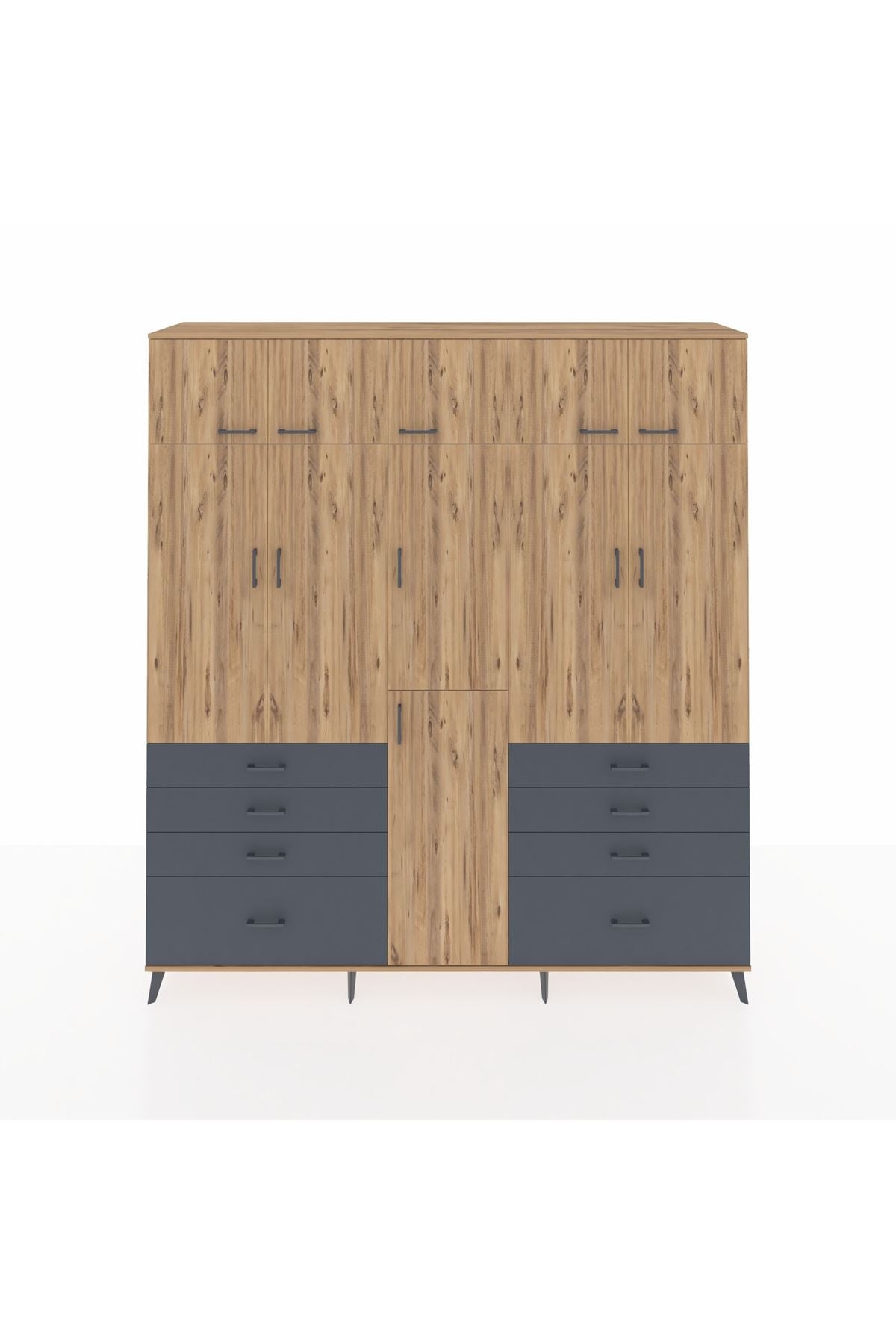 Hyperion Dolap 8 Raflı 8 Çekmeceli 3 Askılı 220x44x243 Çam-Çam/Antrasit