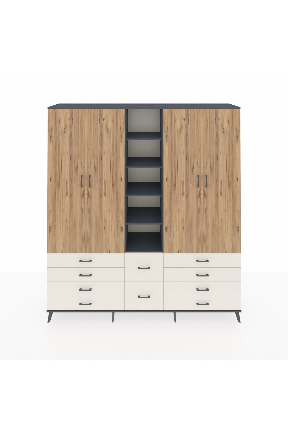 Hyperion Dolap 9 Raflı 10 Çekmeceli 2 Askılı 220x44x243 Antrasit-Çam/Aytaşı