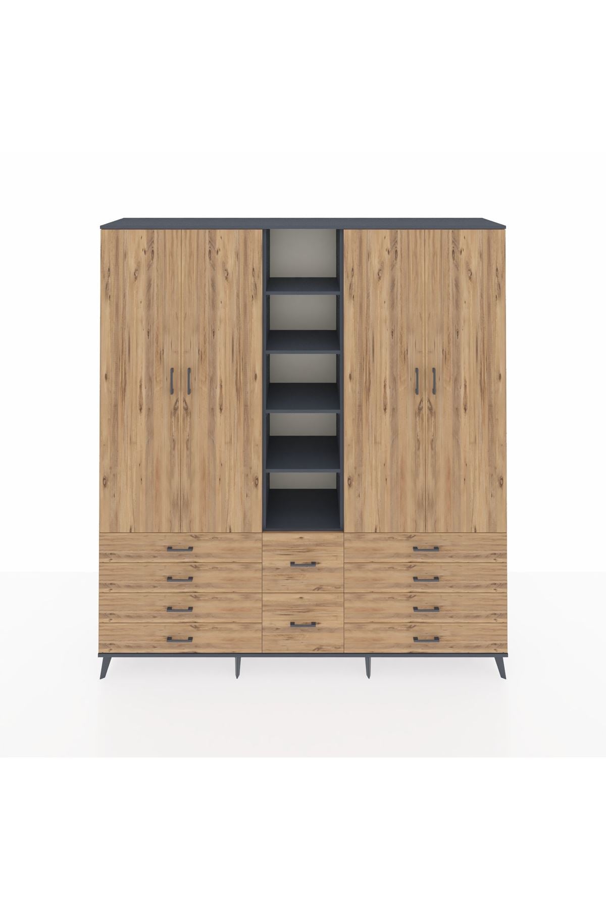 Hyperion Dolap 9 Raflı 10 Çekmeceli 2 Askılı 220x44x243 Antrasit-Çam/Çam