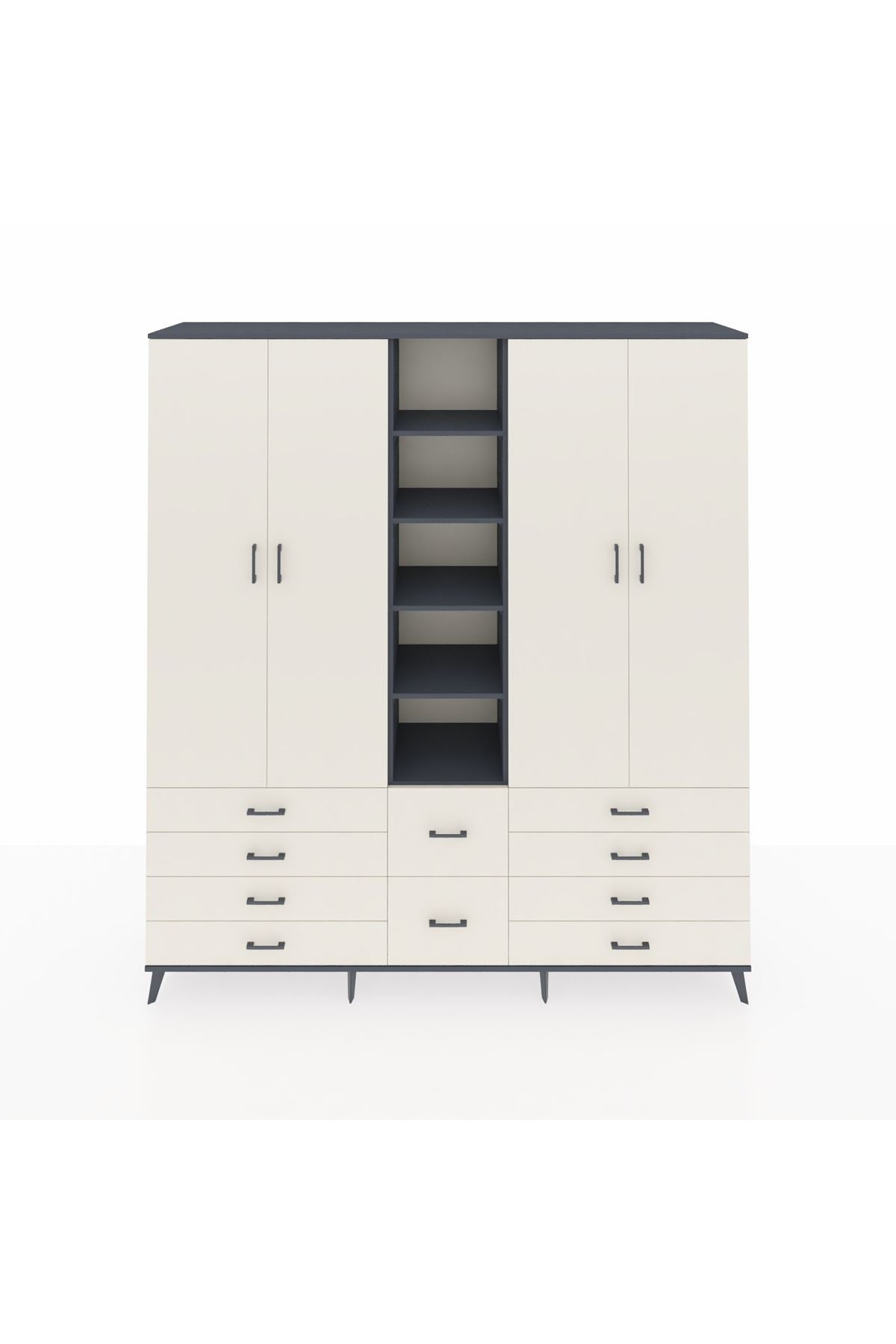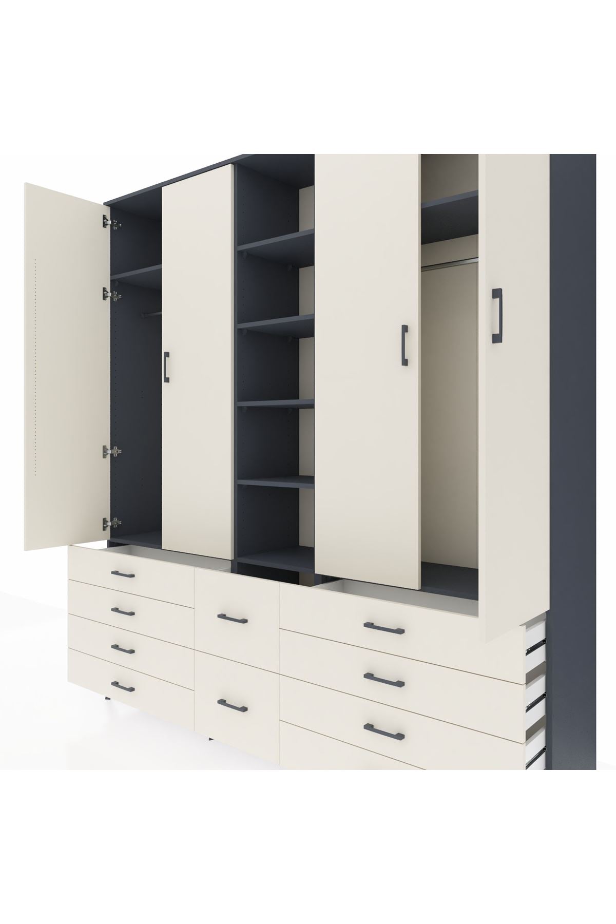 Hyperion Dolap 9 Raflı 10 Çekmeceli 2 Askılı 220x44x243 Antrasit-Aytaşı/Aytaşı
