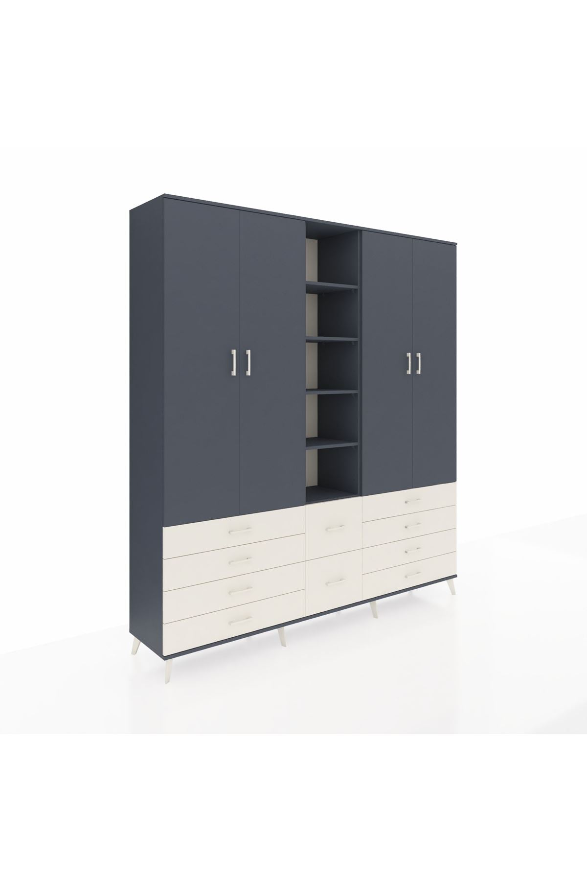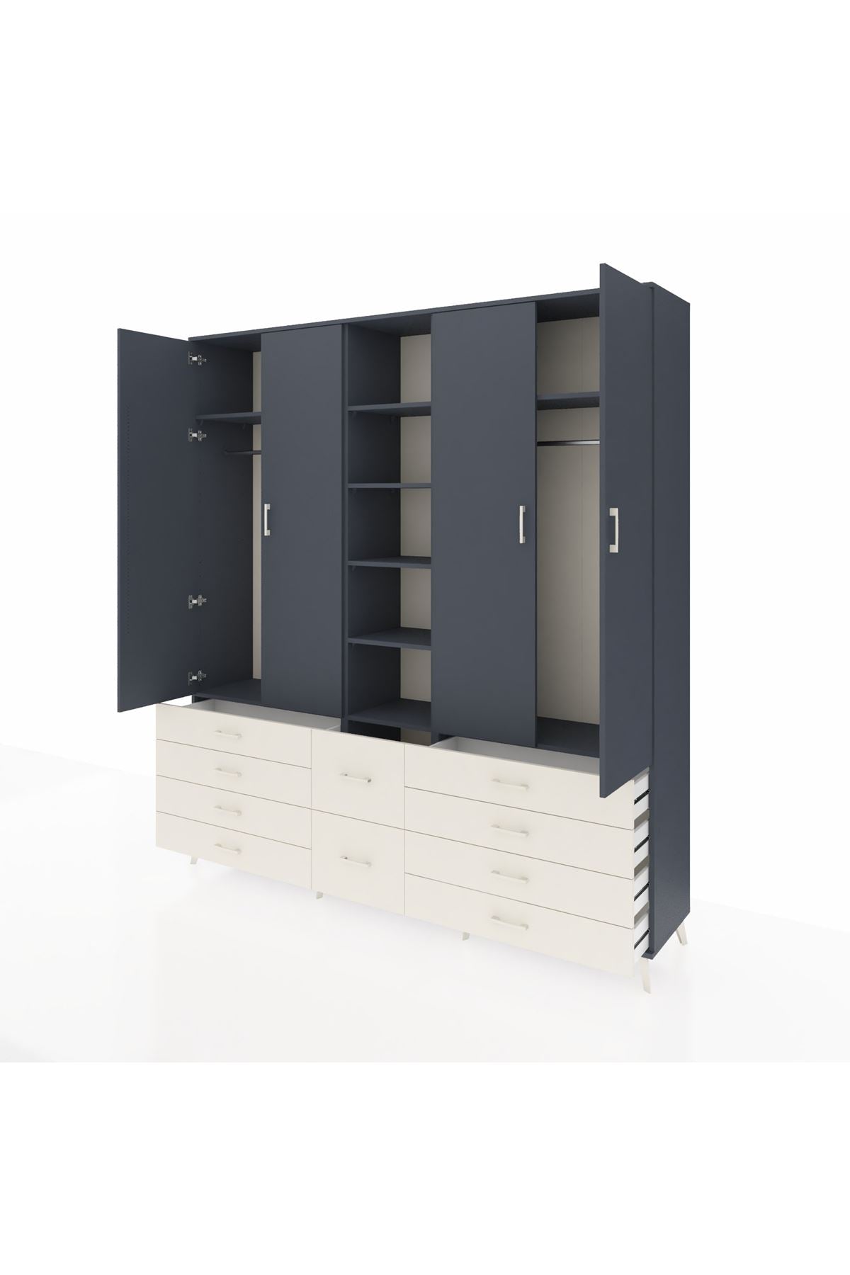 Hyperion Dolap 9 Raflı 10 Çekmeceli 2 Askılı 220x44x243 Antrasit-Antrasit/Aytaşı