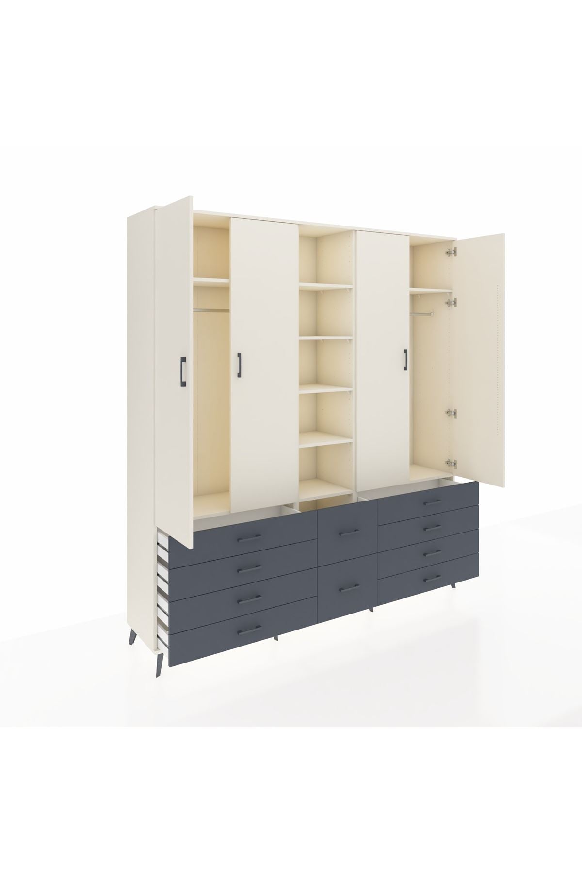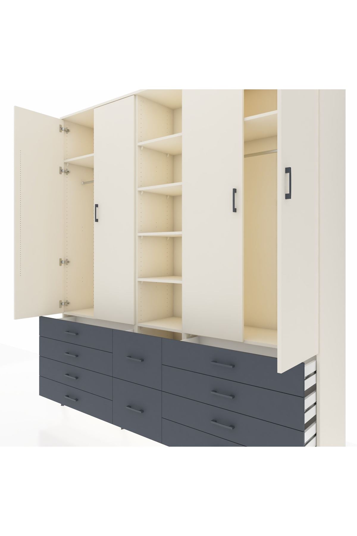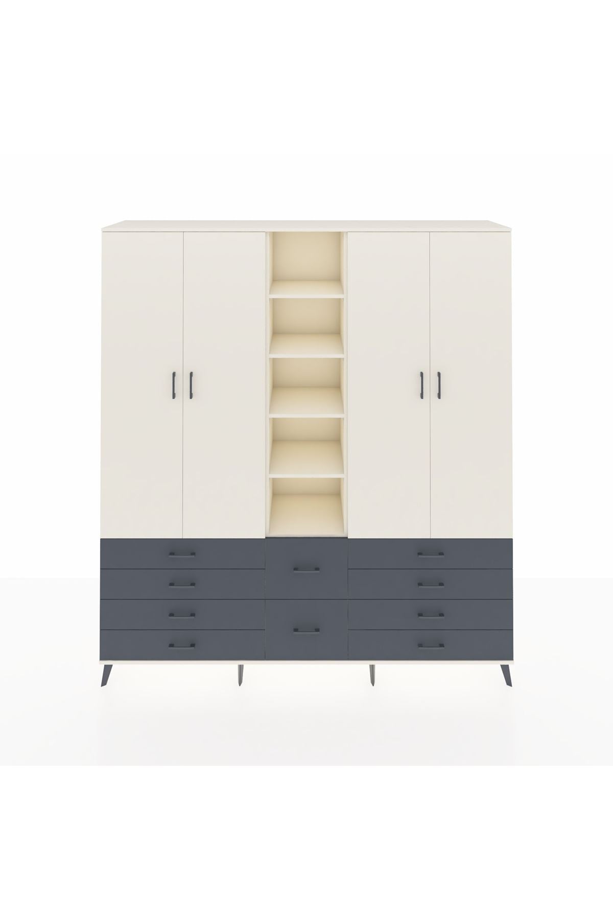 Hyperion Dolap 9 Raflı 10 Çekmeceli 2 Askılı 220x44x243 Aytaşı-Aytaşı/Antrasit