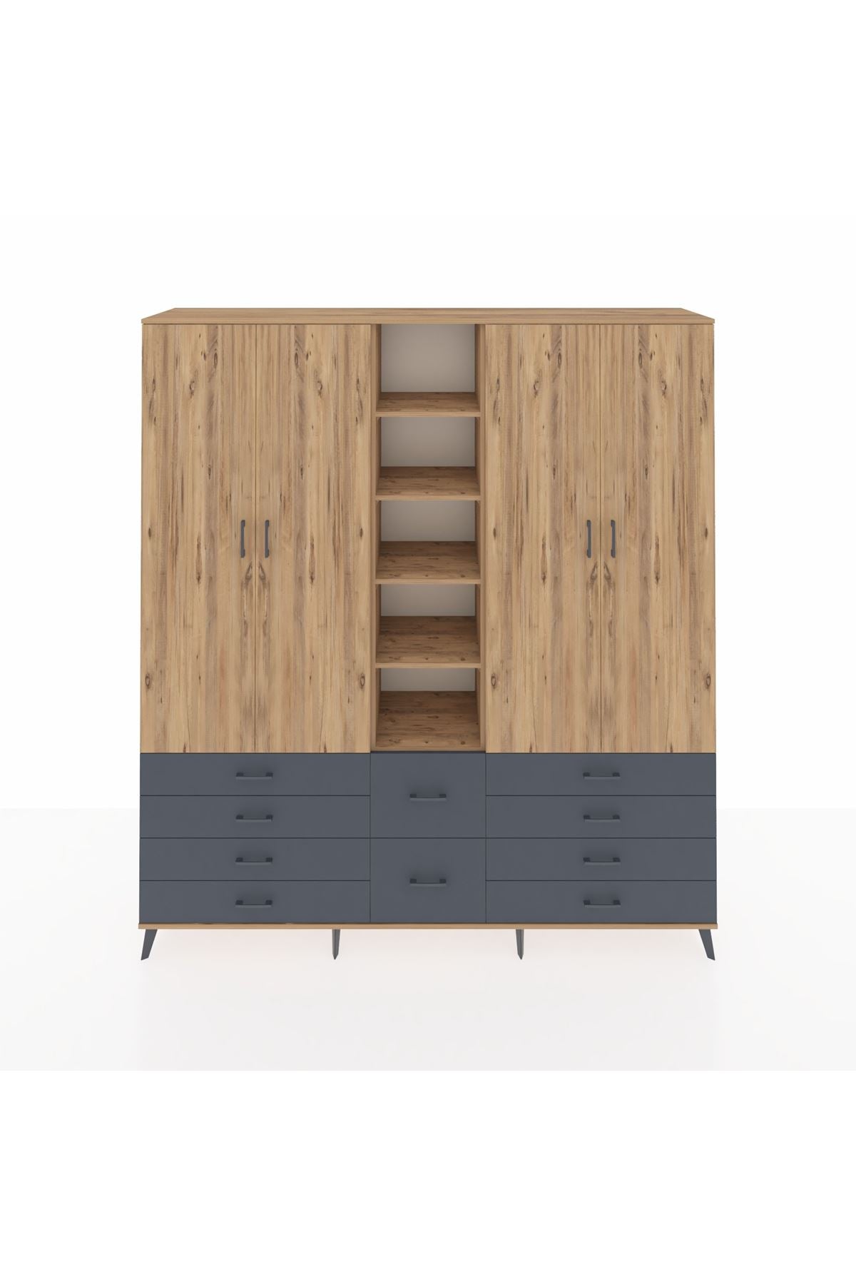Hyperion Dolap 9 Raflı 10 Çekmeceli 2 Askılı 220x44x243 Çam-Çam/Antrasit