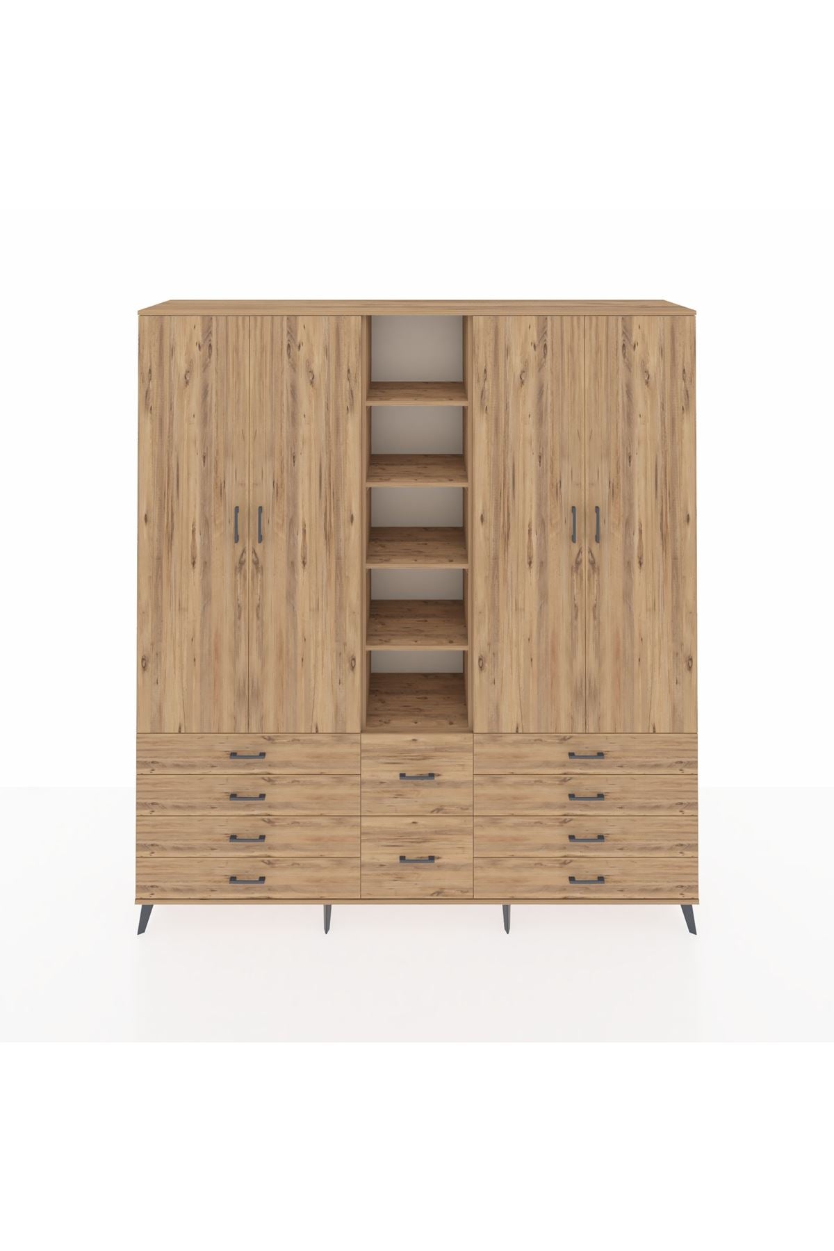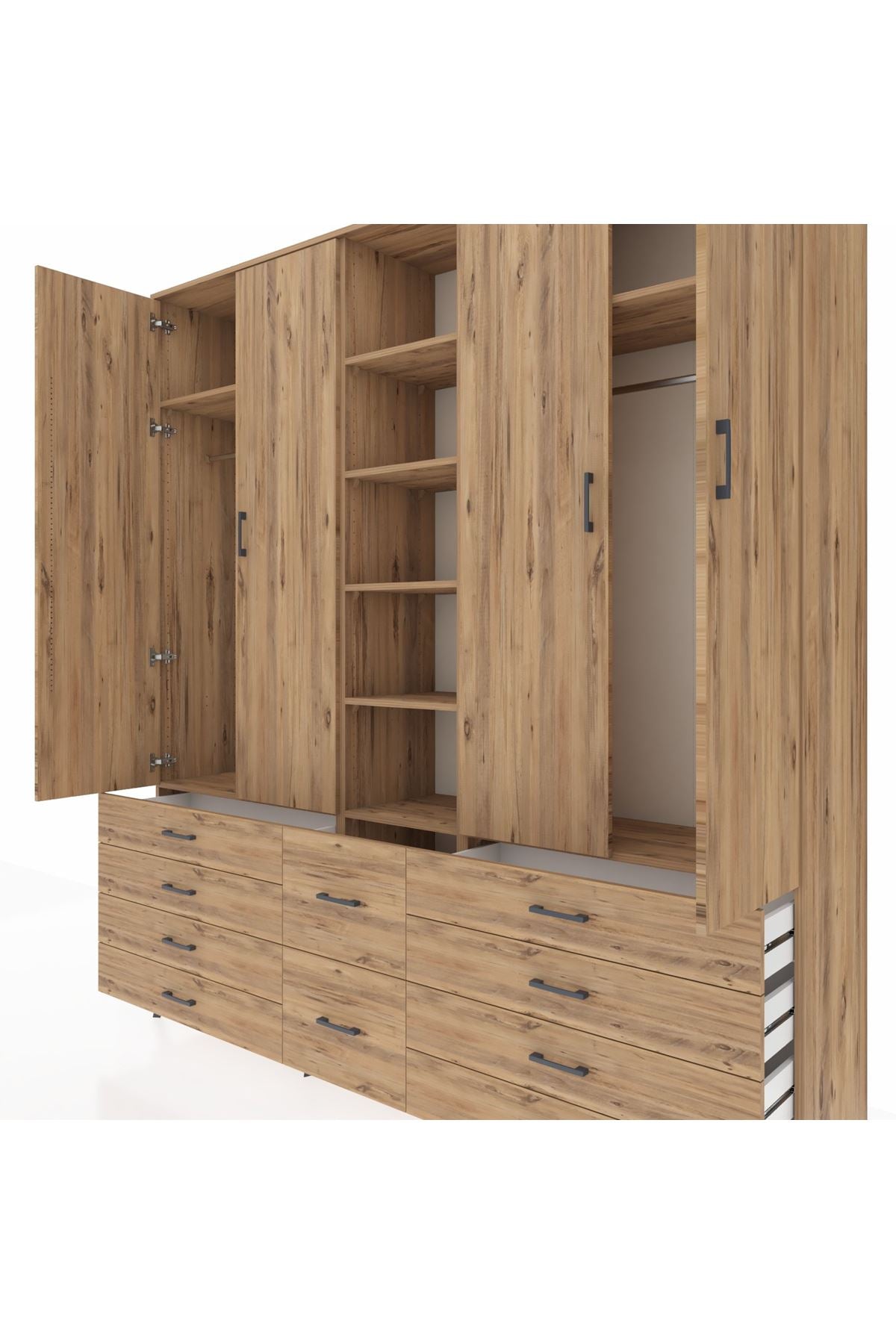 Hyperion Dolap 9 Raflı 10 Çekmeceli 2 Askılı 220x44x243 Çam-Çam/Çam