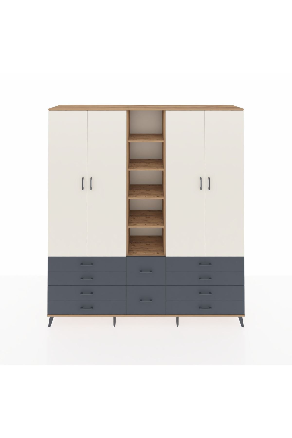 Hyperion Dolap 9 Raflı 10 Çekmeceli 2 Askılı 220x44x243 Çam-Aytaşı/Antrasit