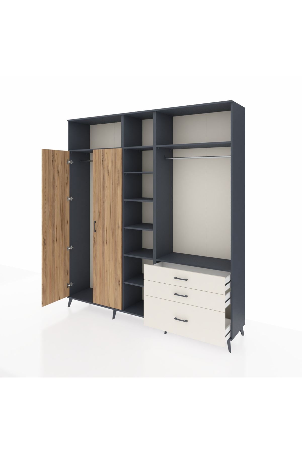Hyperion Dolap 9 Raflı 3 Çekmeceli 2 Askılı 220x44x243 Antrasit-Çam/Aytaşı