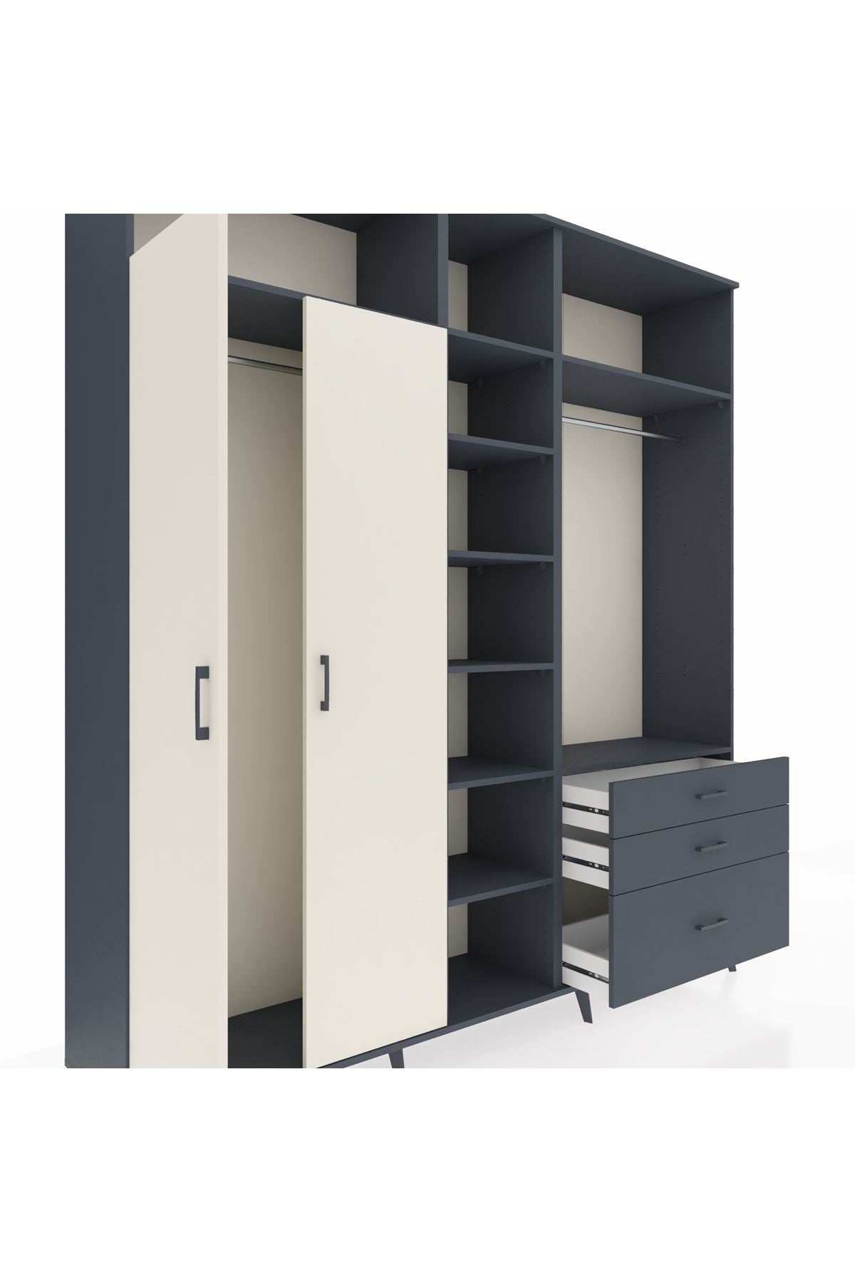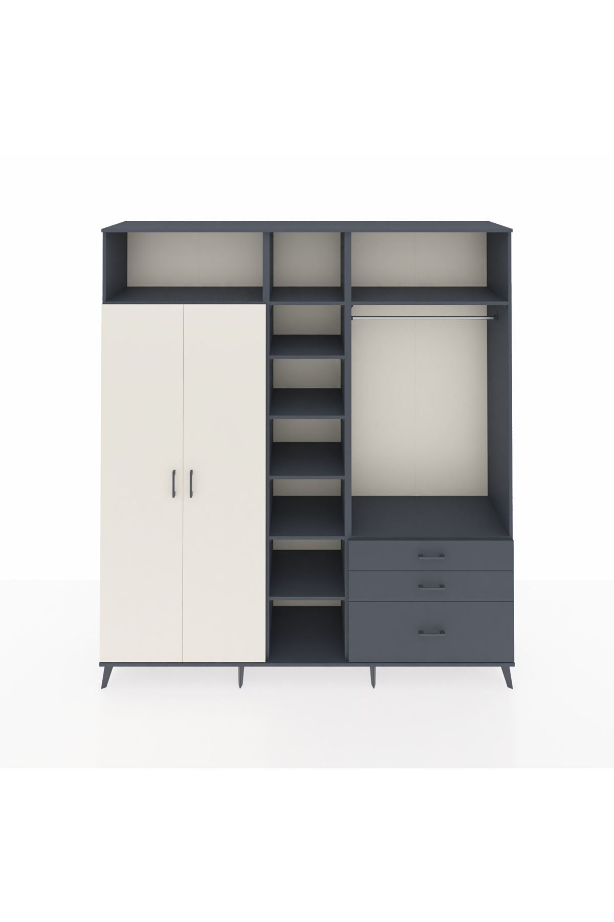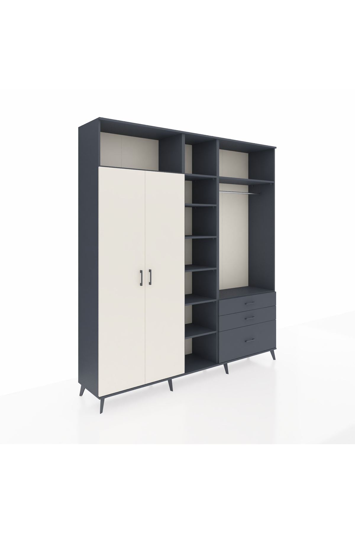 Hyperion Dolap 9 Raflı 3 Çekmeceli 2 Askılı 220x44x243 Antrasit-Aytaşı/Antrasit
