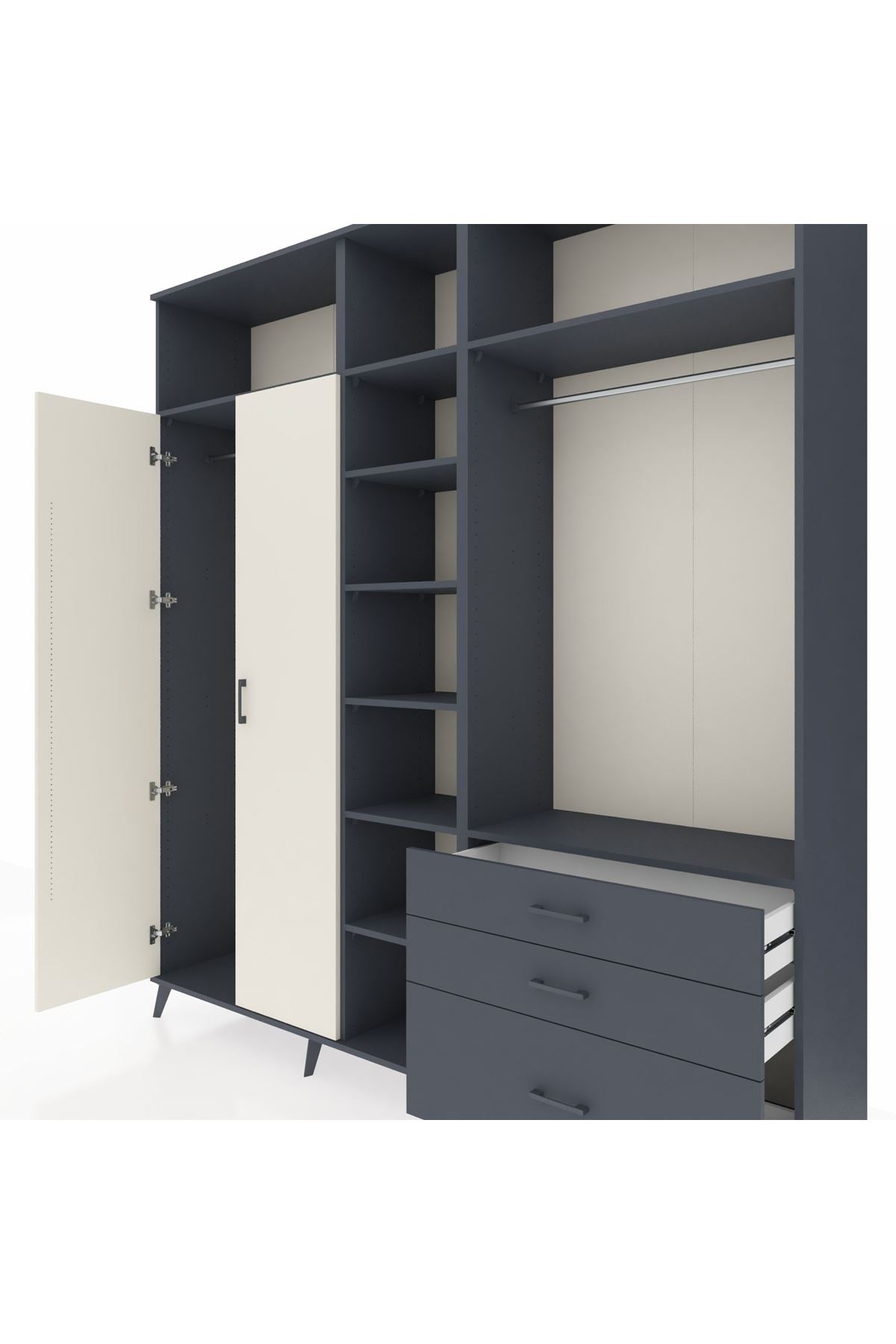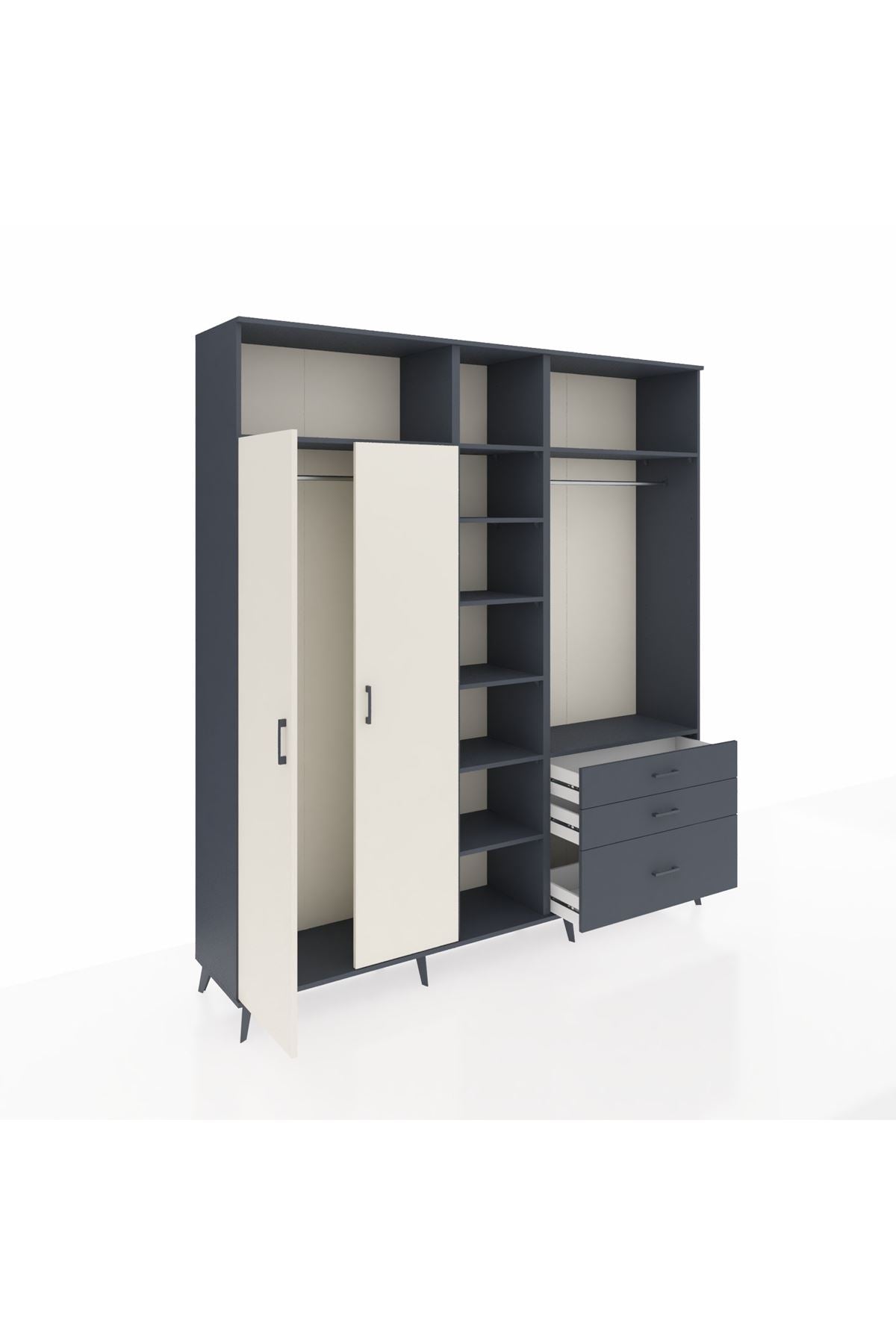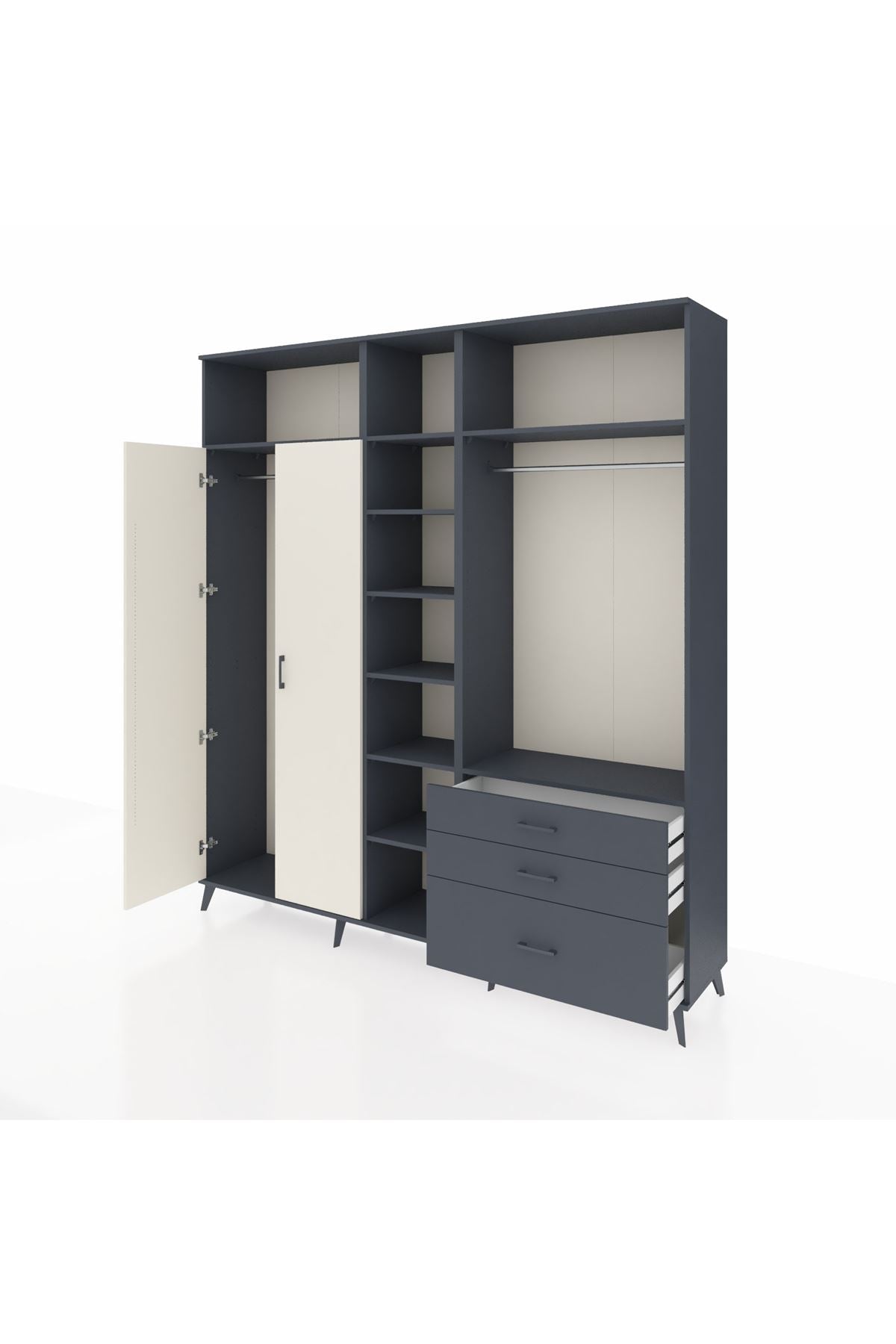Hyperion Dolap 9 Raflı 3 Çekmeceli 2 Askılı 220x44x243 Antrasit-Aytaşı/Antrasit
