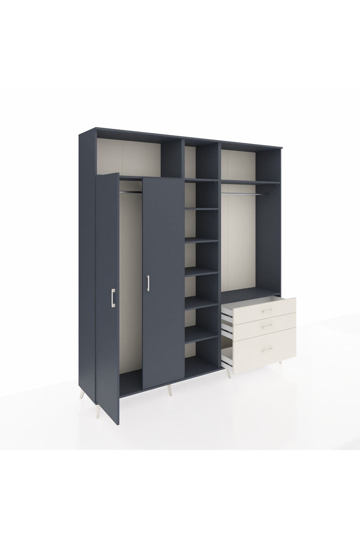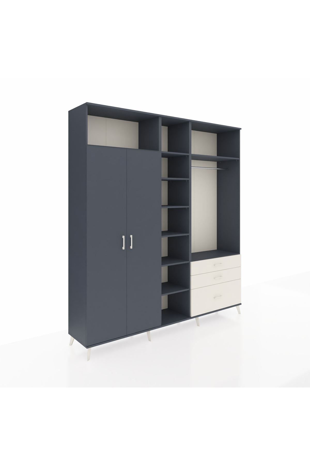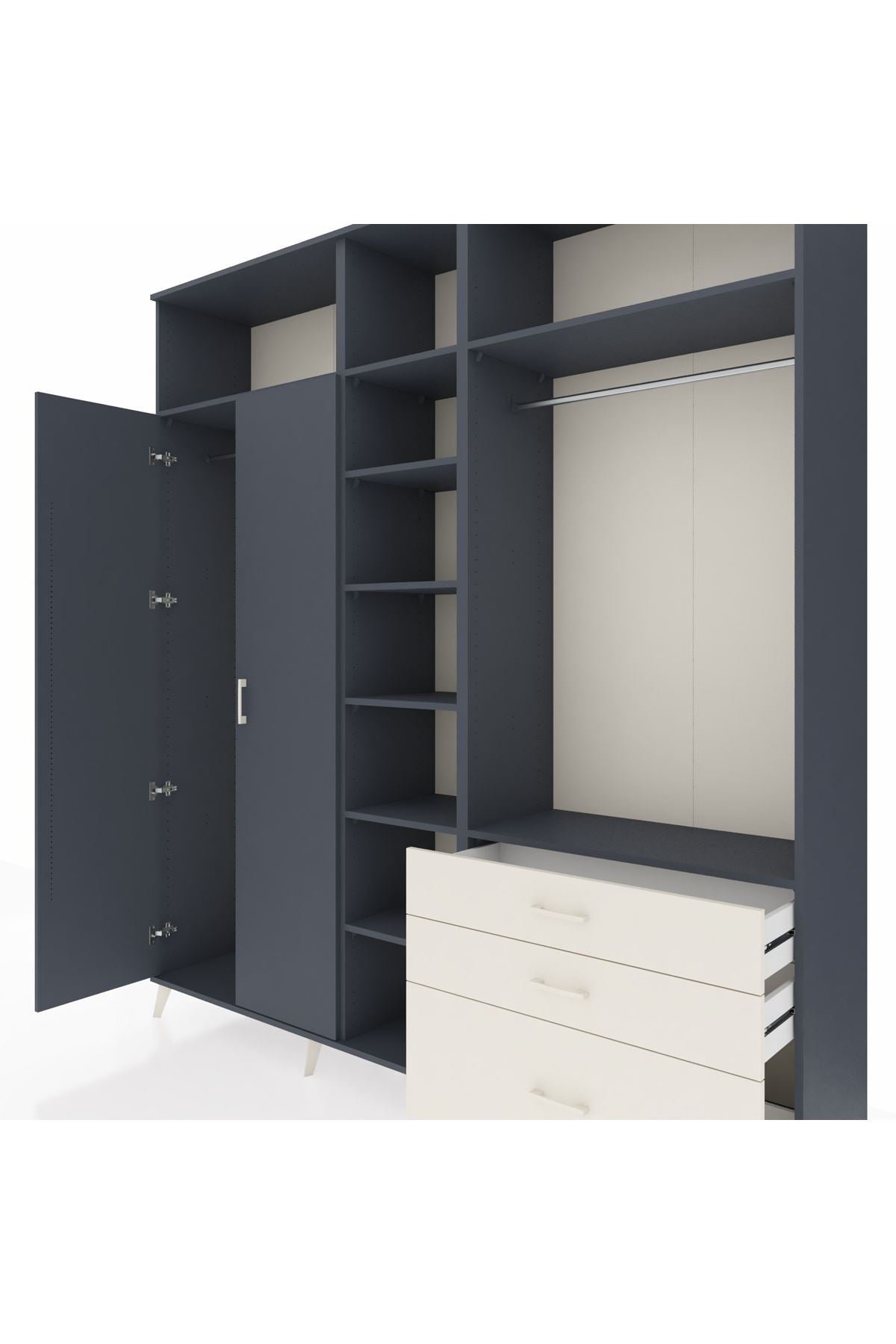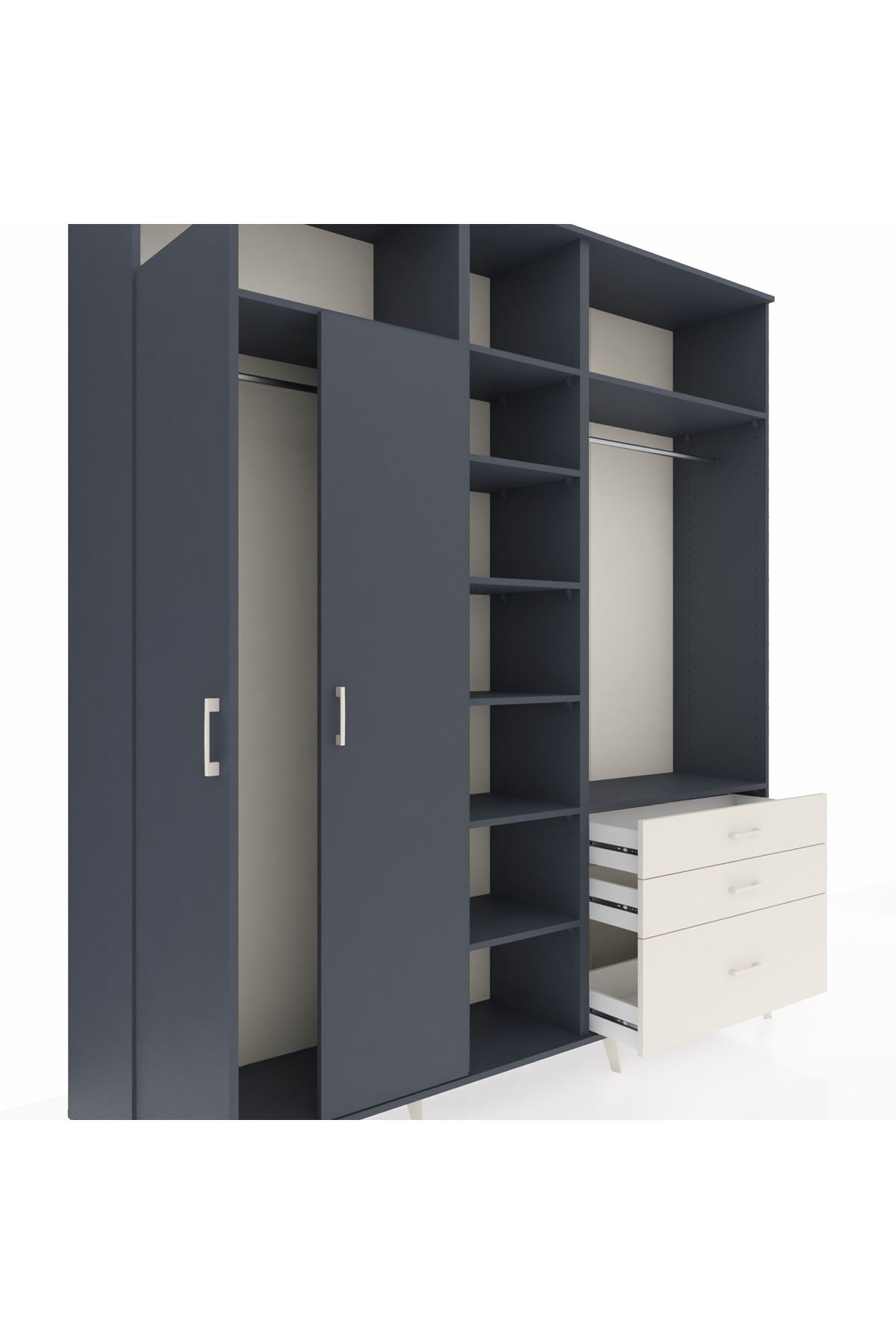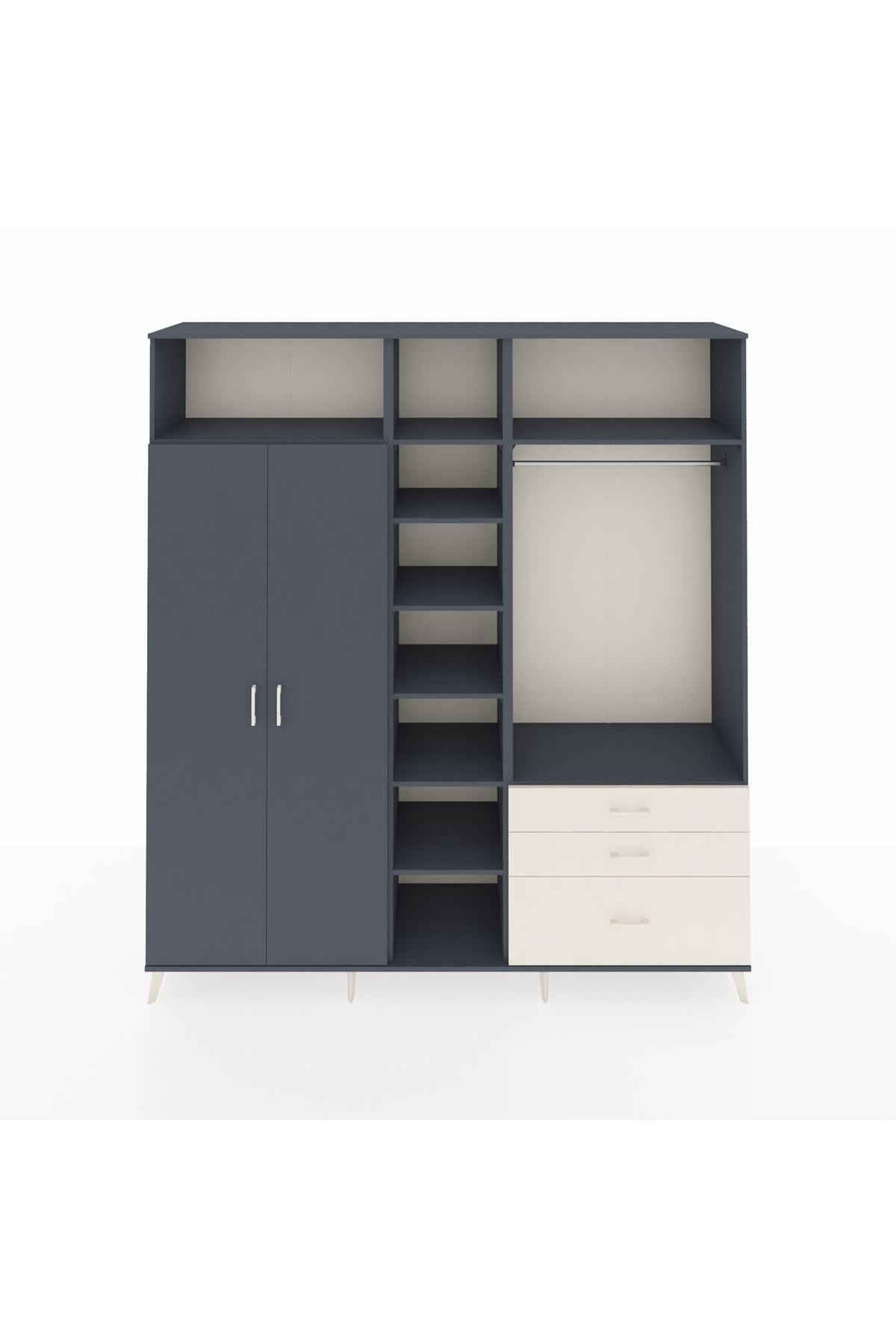 Hyperion Dolap 9 Raflı 3 Çekmeceli 2 Askılı 220x44x243 Antrasit-Antrasit/Aytaşı