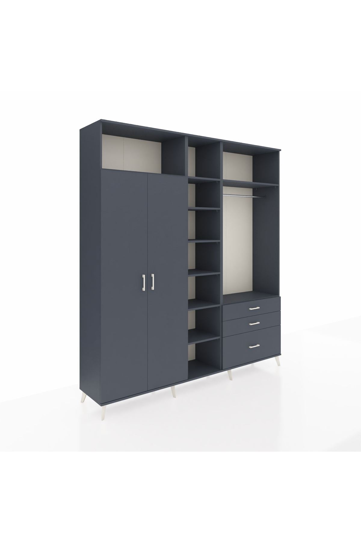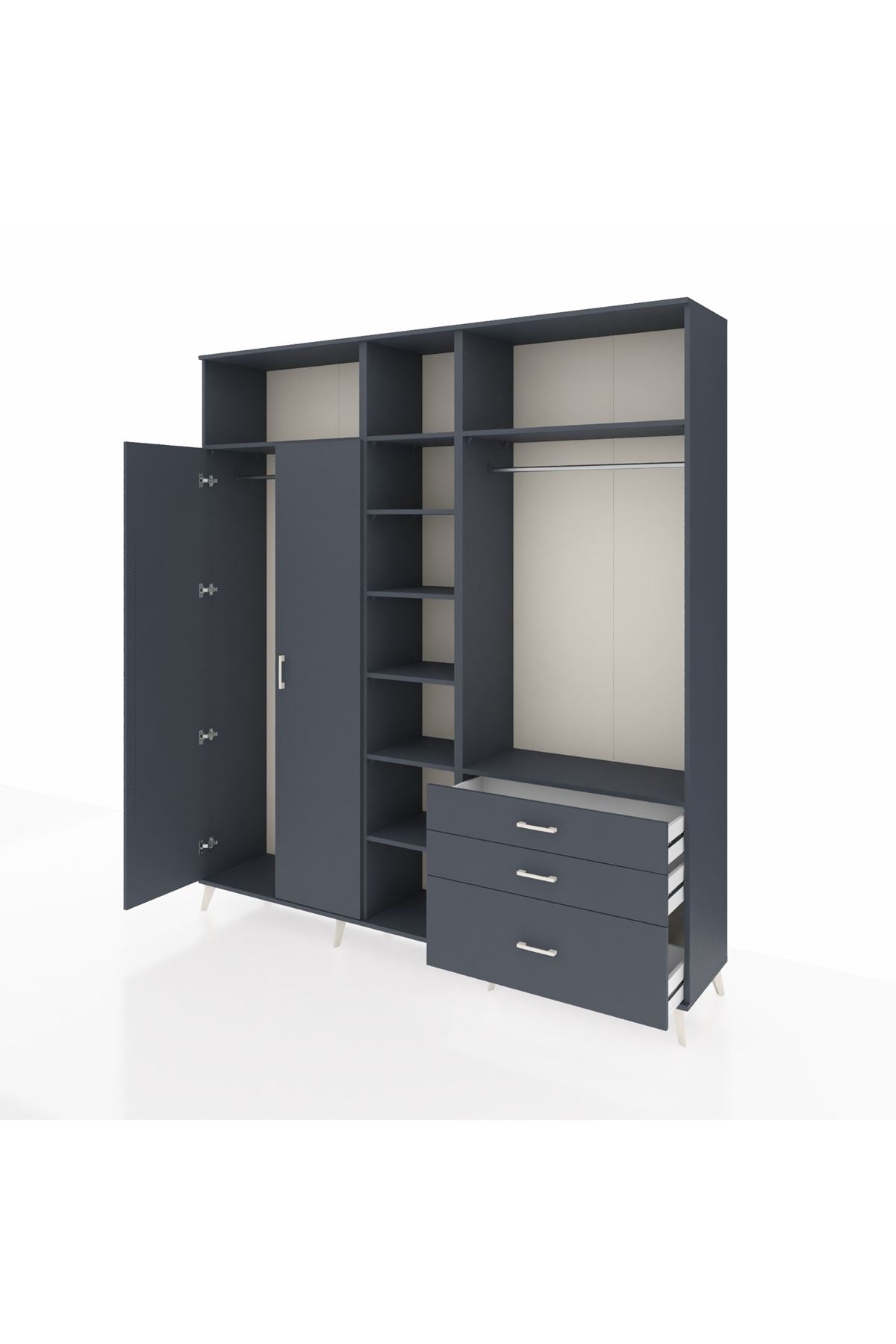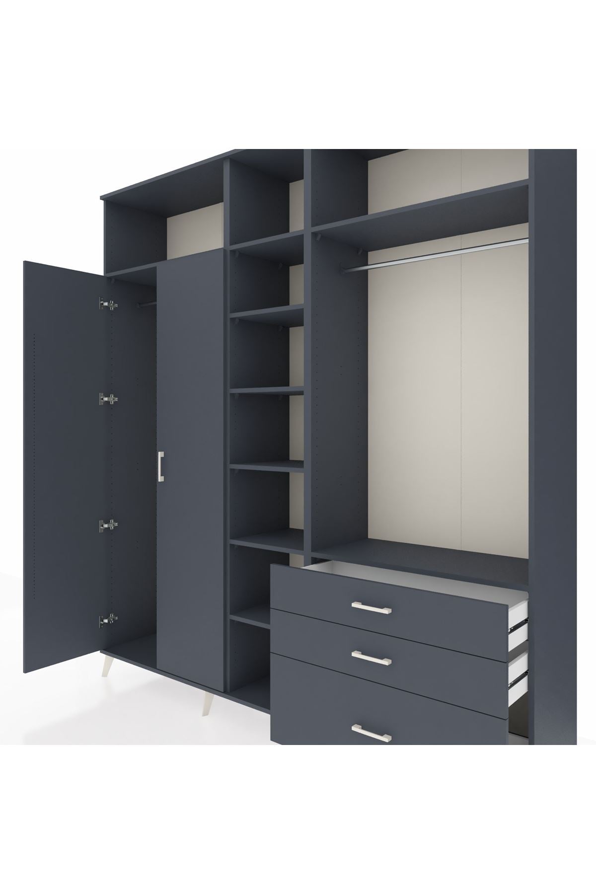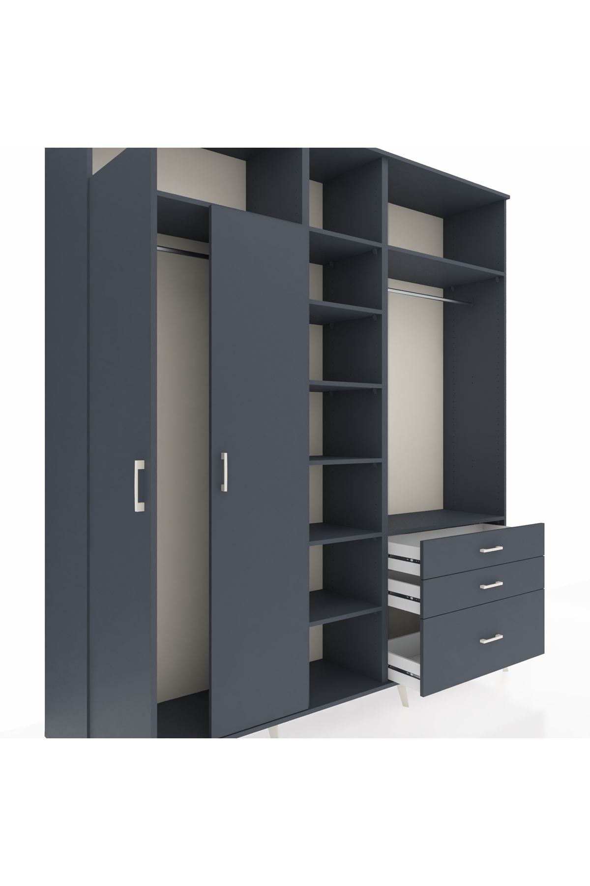 Hyperion Dolap 9 Raflı 3 Çekmeceli 2 Askılı 220x44x243 Antrasit-Antrasit/Antrasit