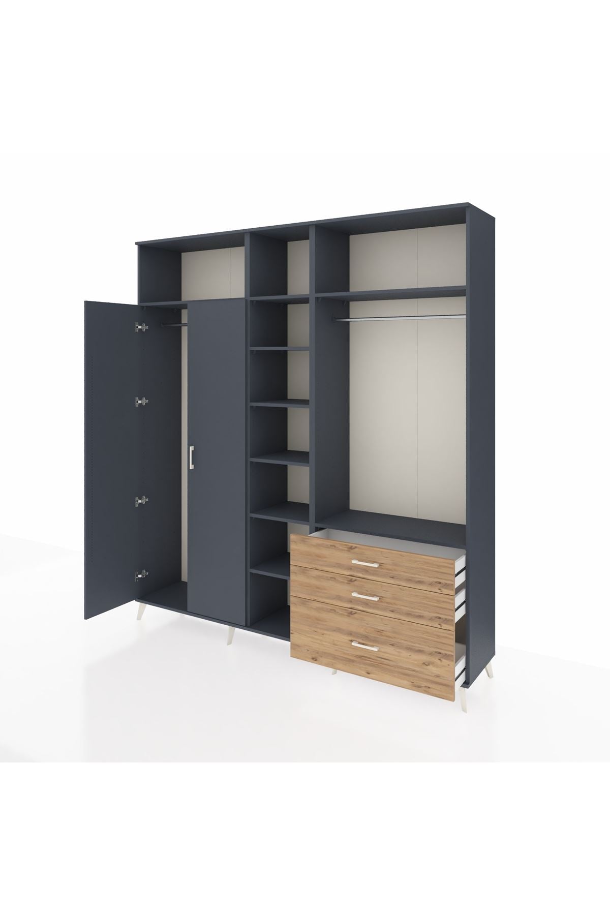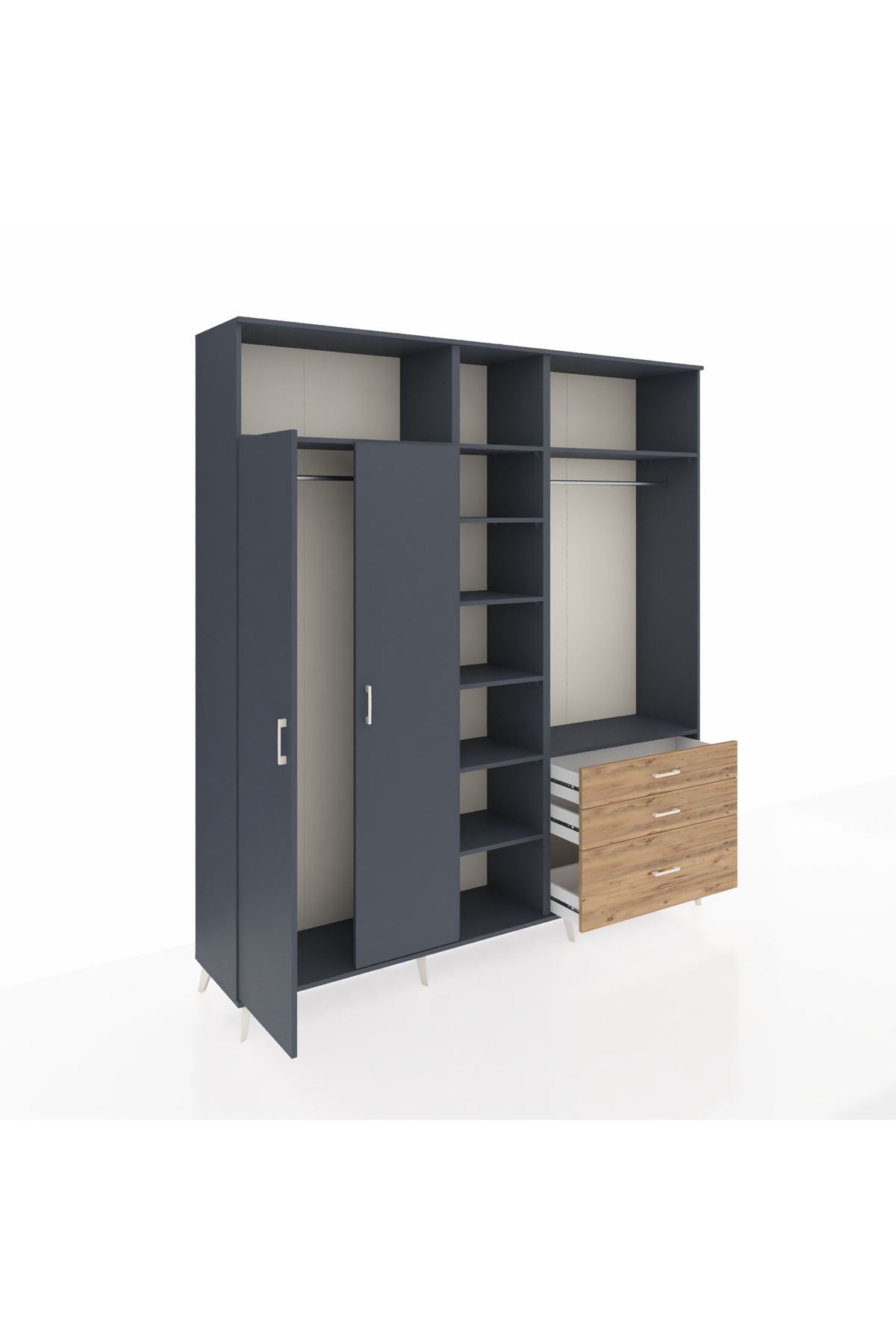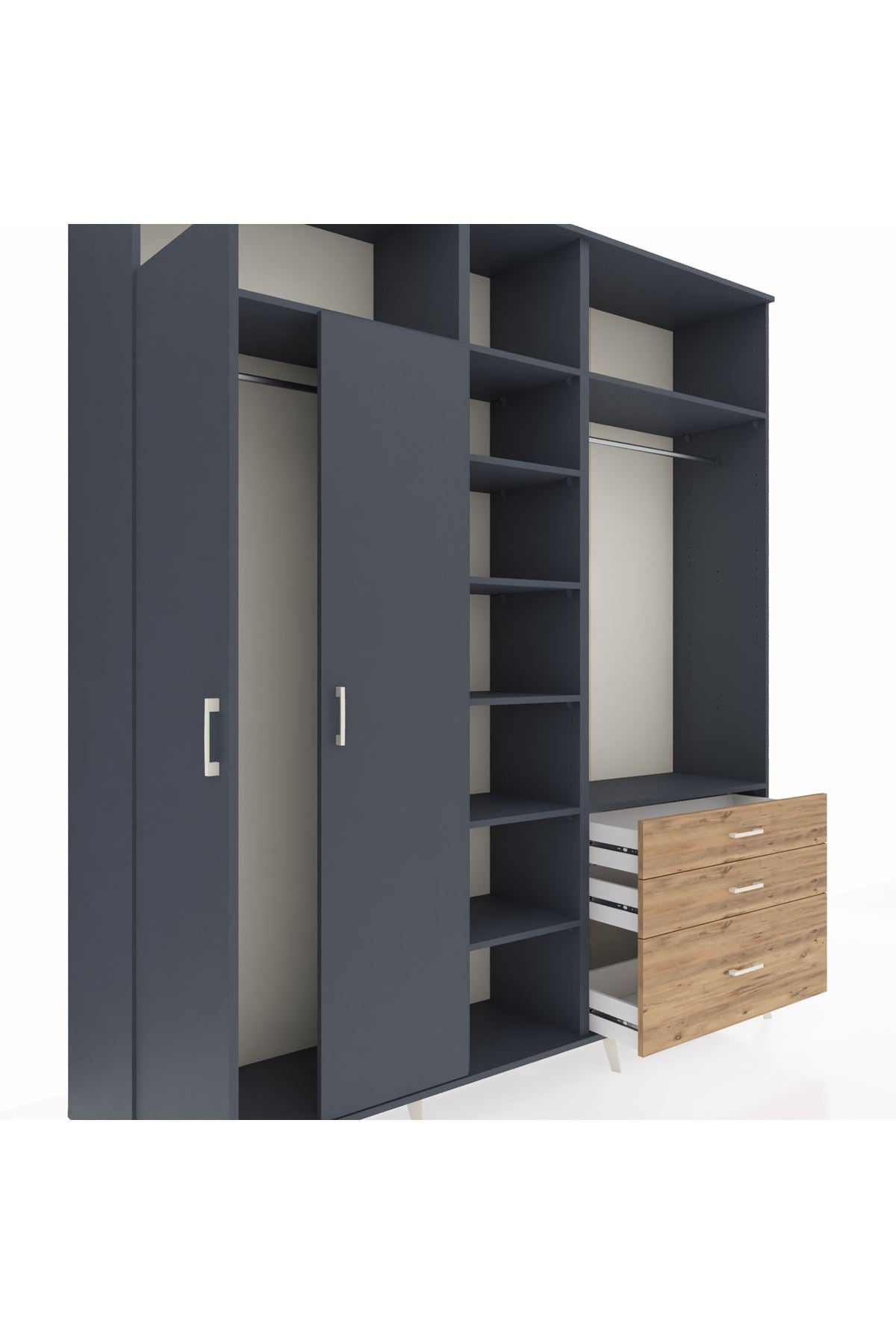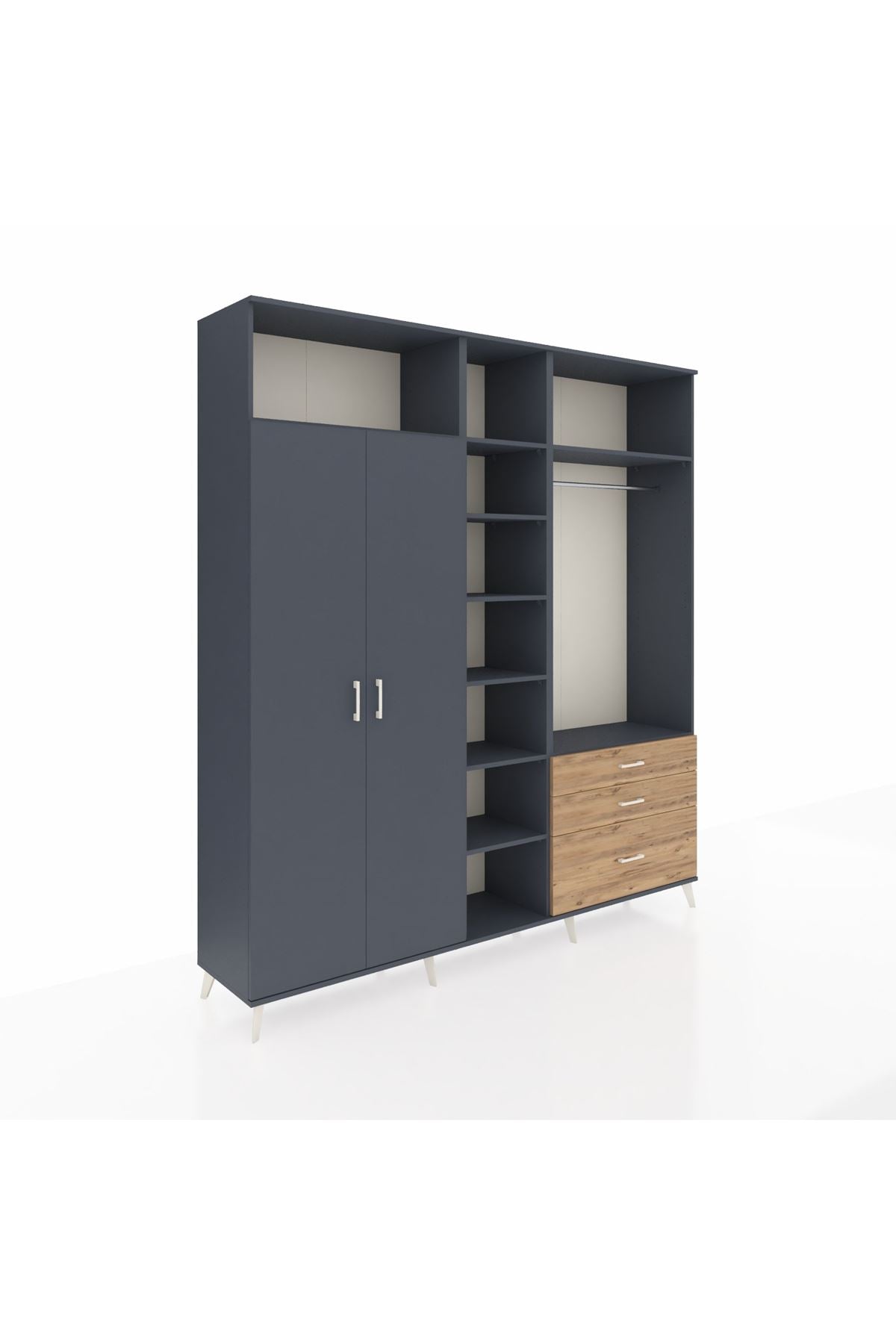 Hyperion Dolap 9 Raflı 3 Çekmeceli 2 Askılı 220x44x243 Antrasit-Antrasit/Çam
