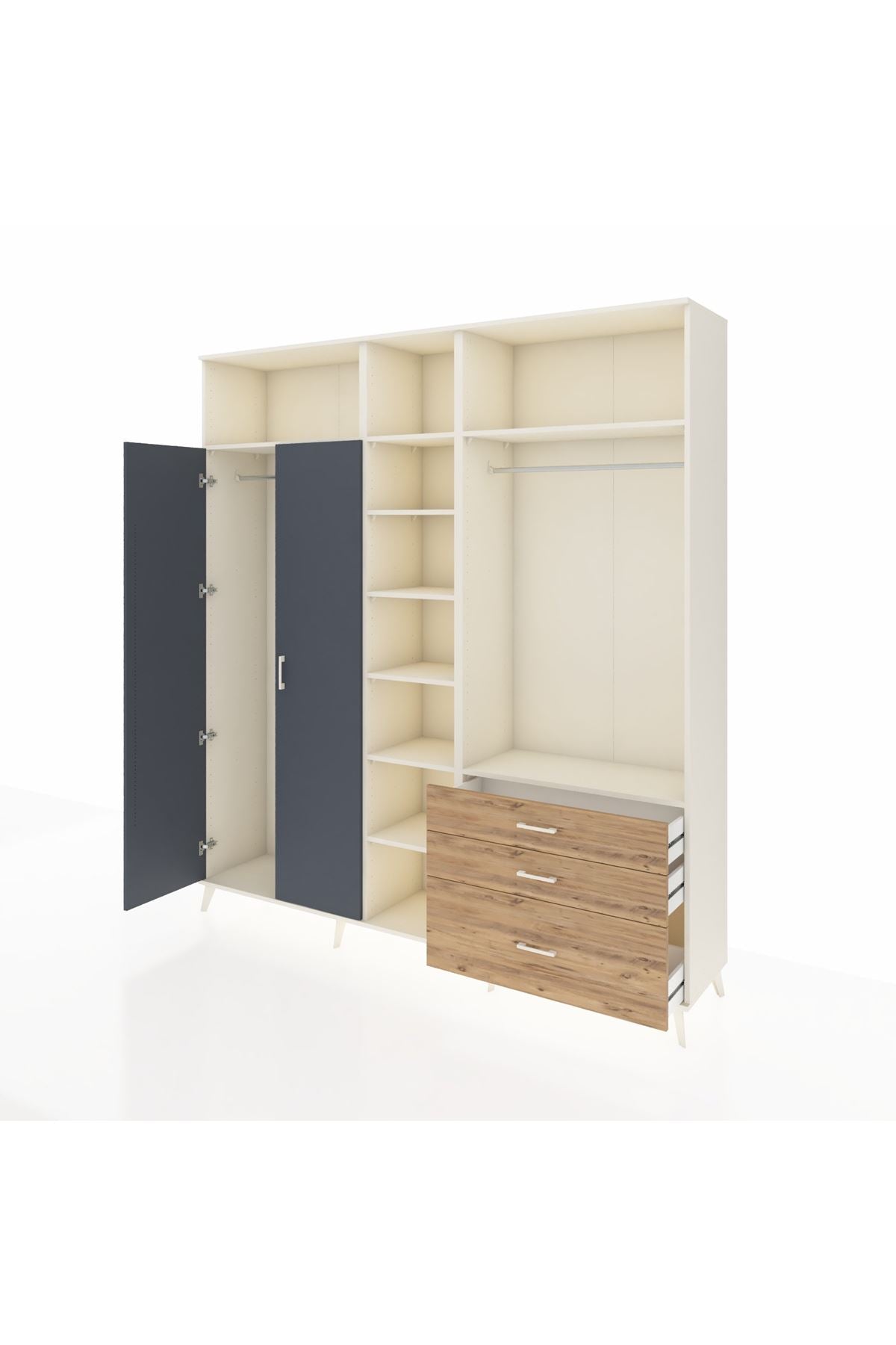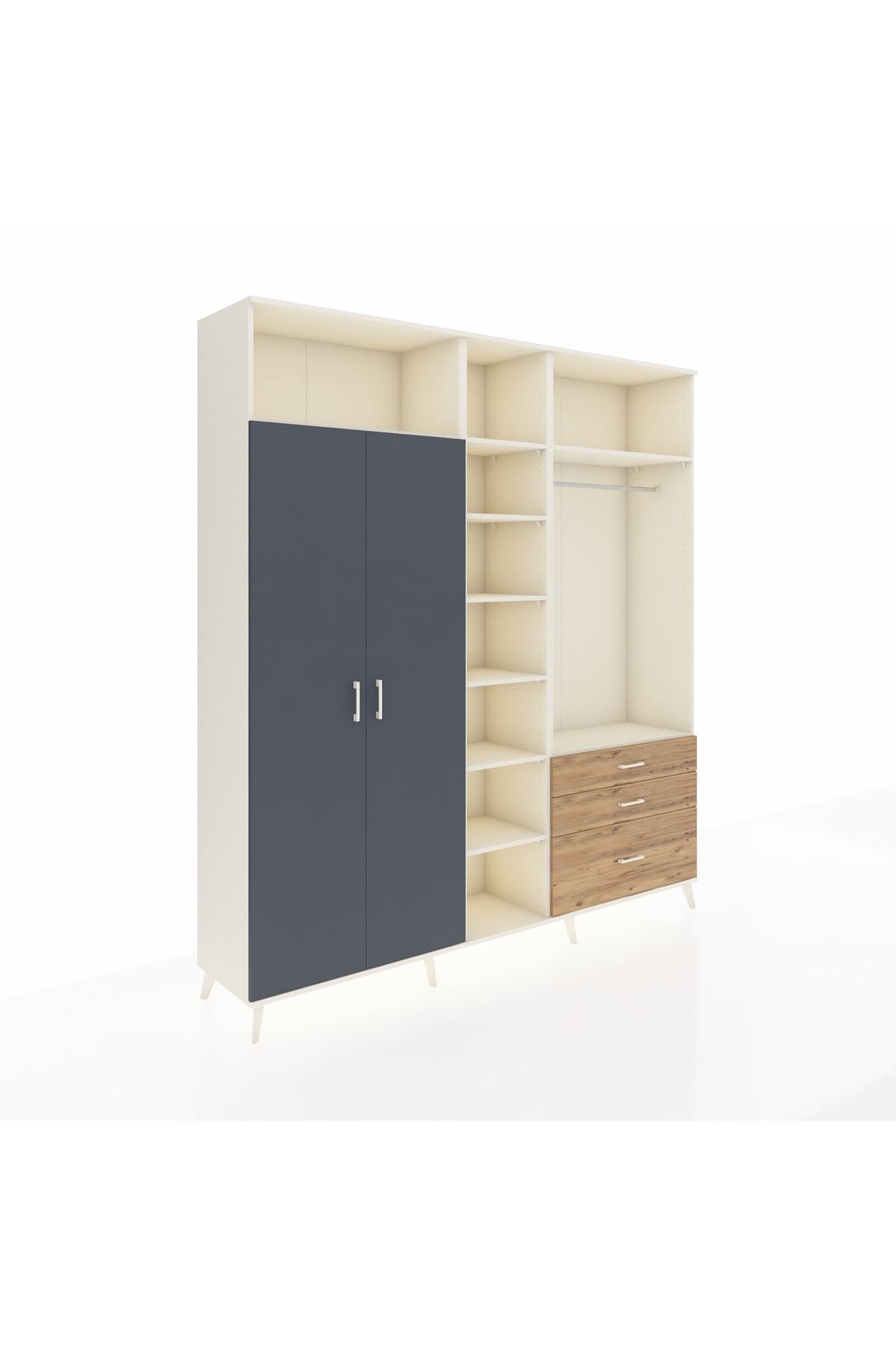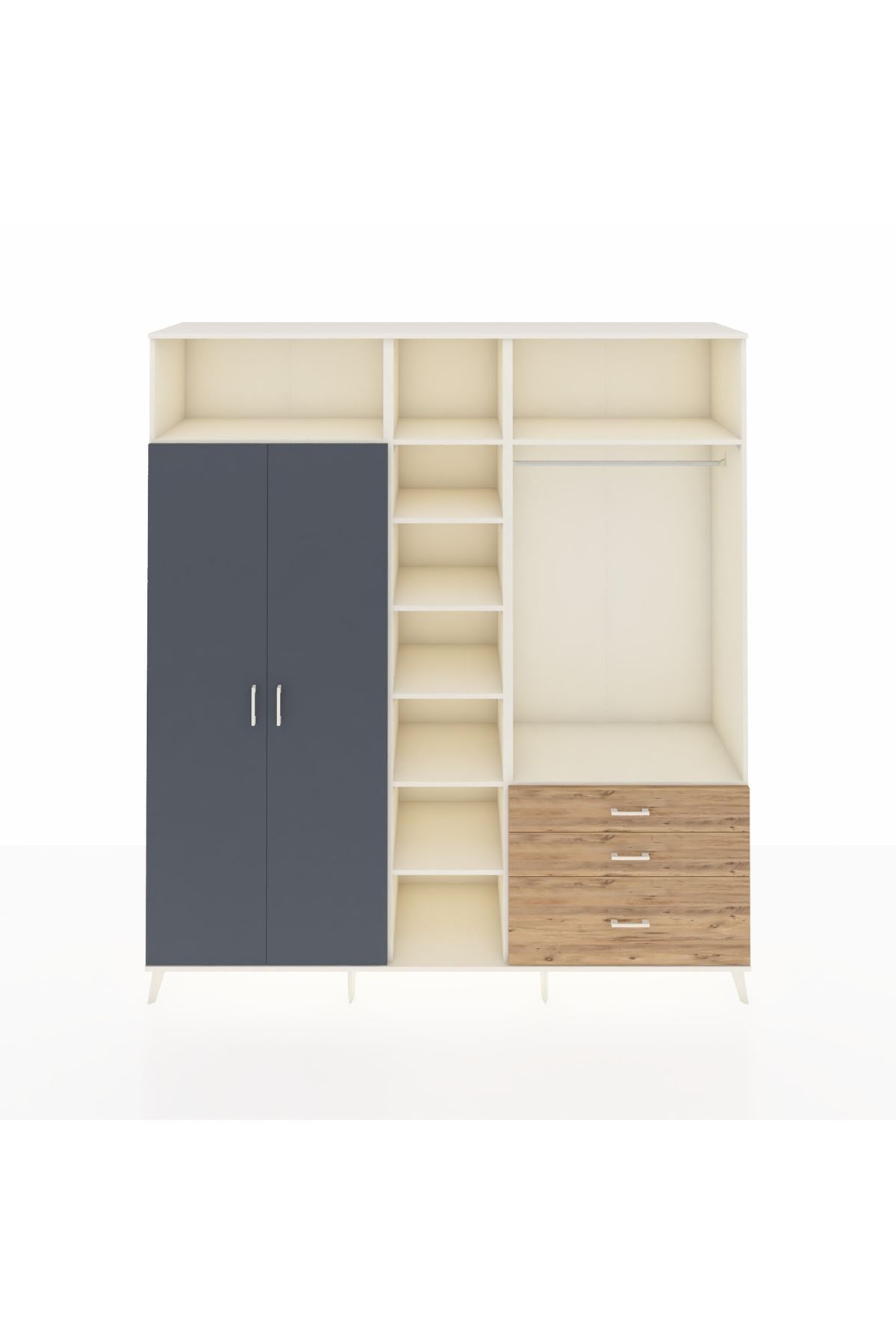 Hyperion Dolap 9 Raflı 3 Çekmeceli 2 Askılı 220x44x243 Aytaşı-Antrasit/Çam