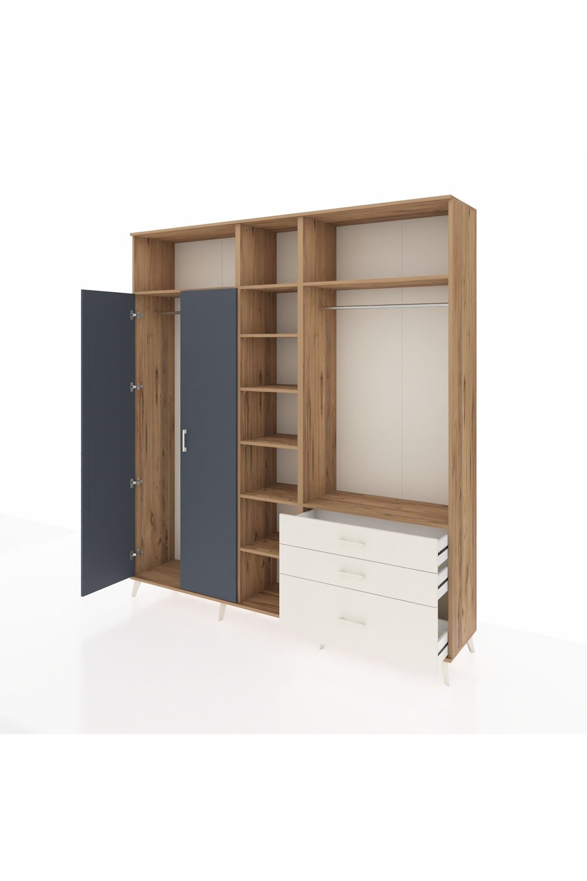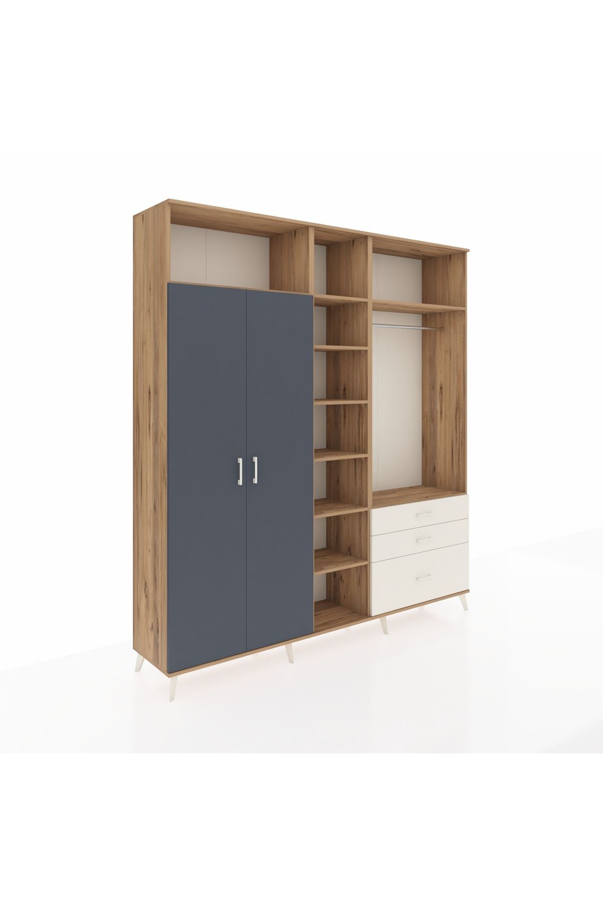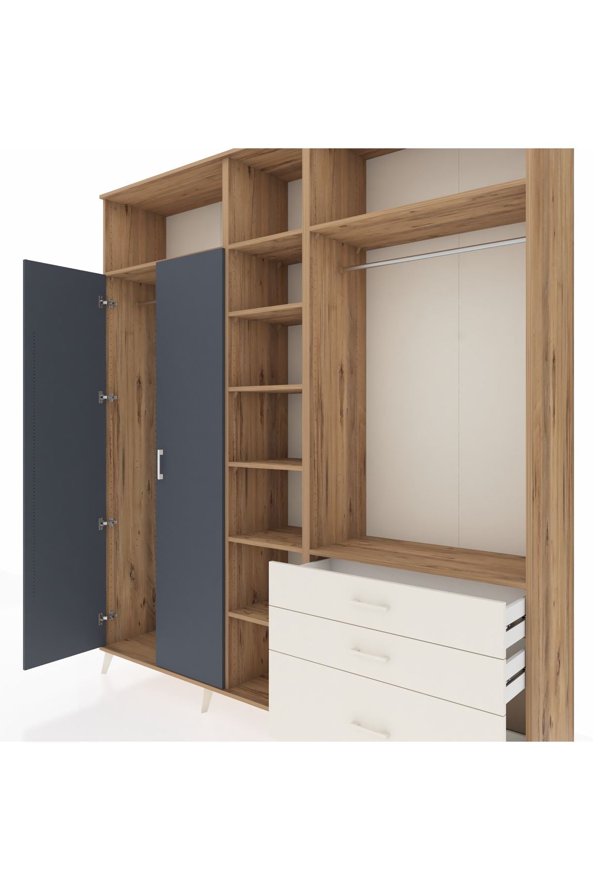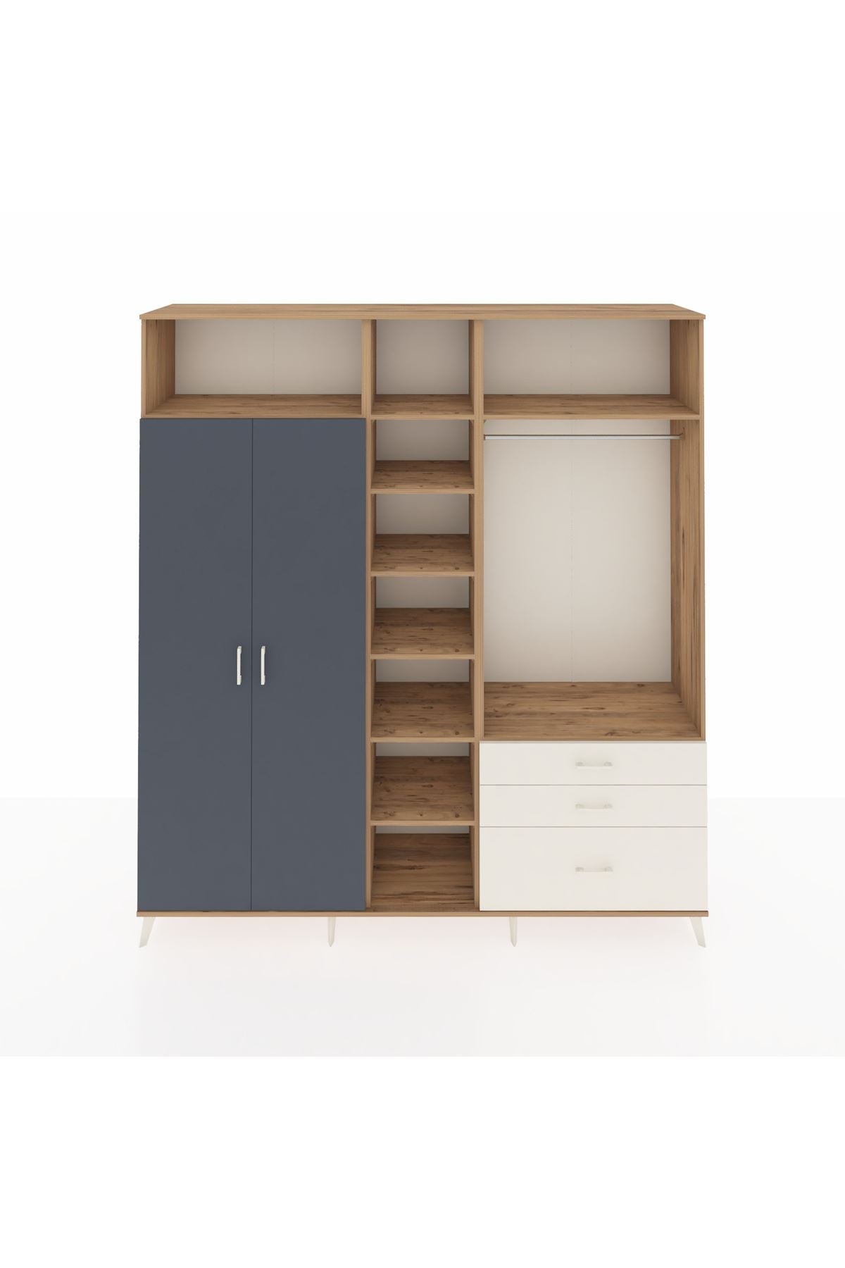 Hyperion Dolap 9 Raflı 3 Çekmeceli 2 Askılı 220x44x243 Çam-Antrasit/Aytaşı