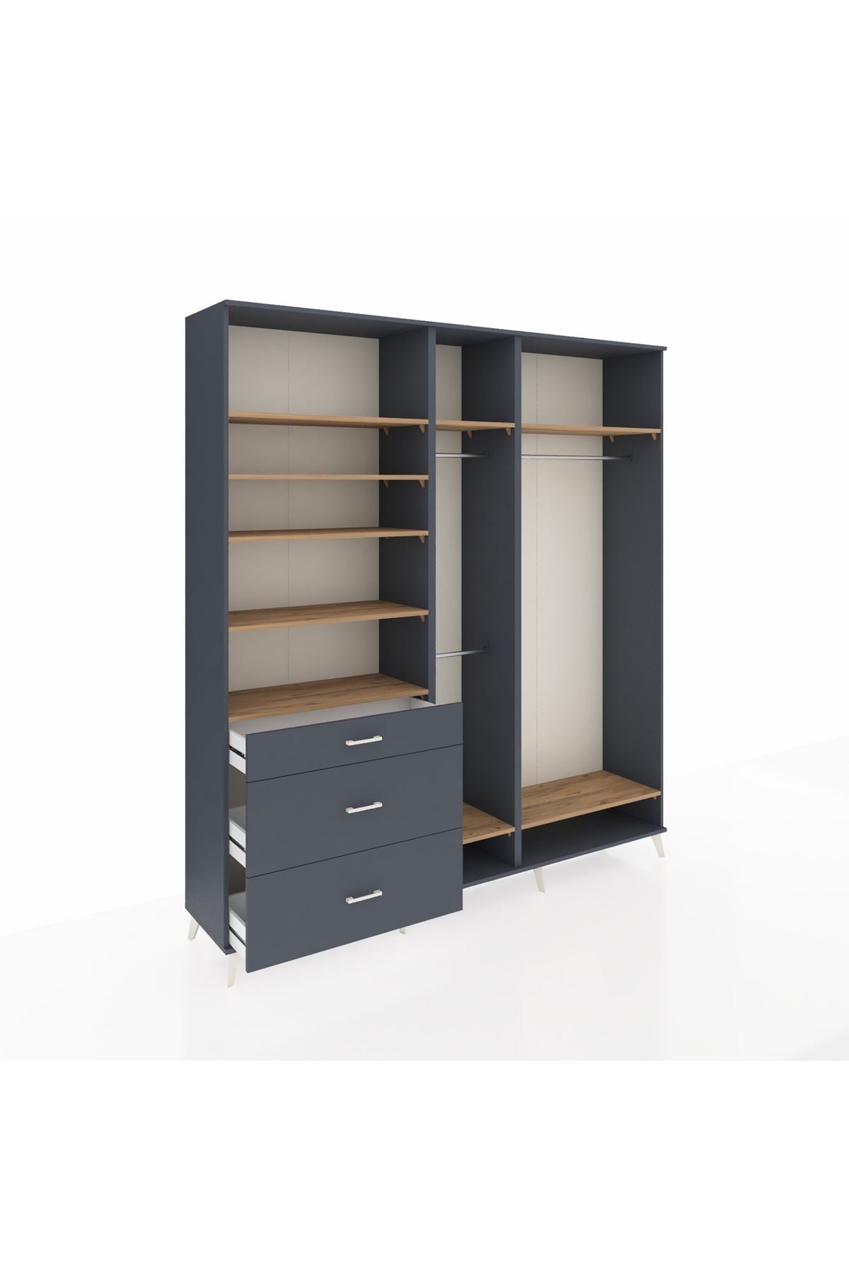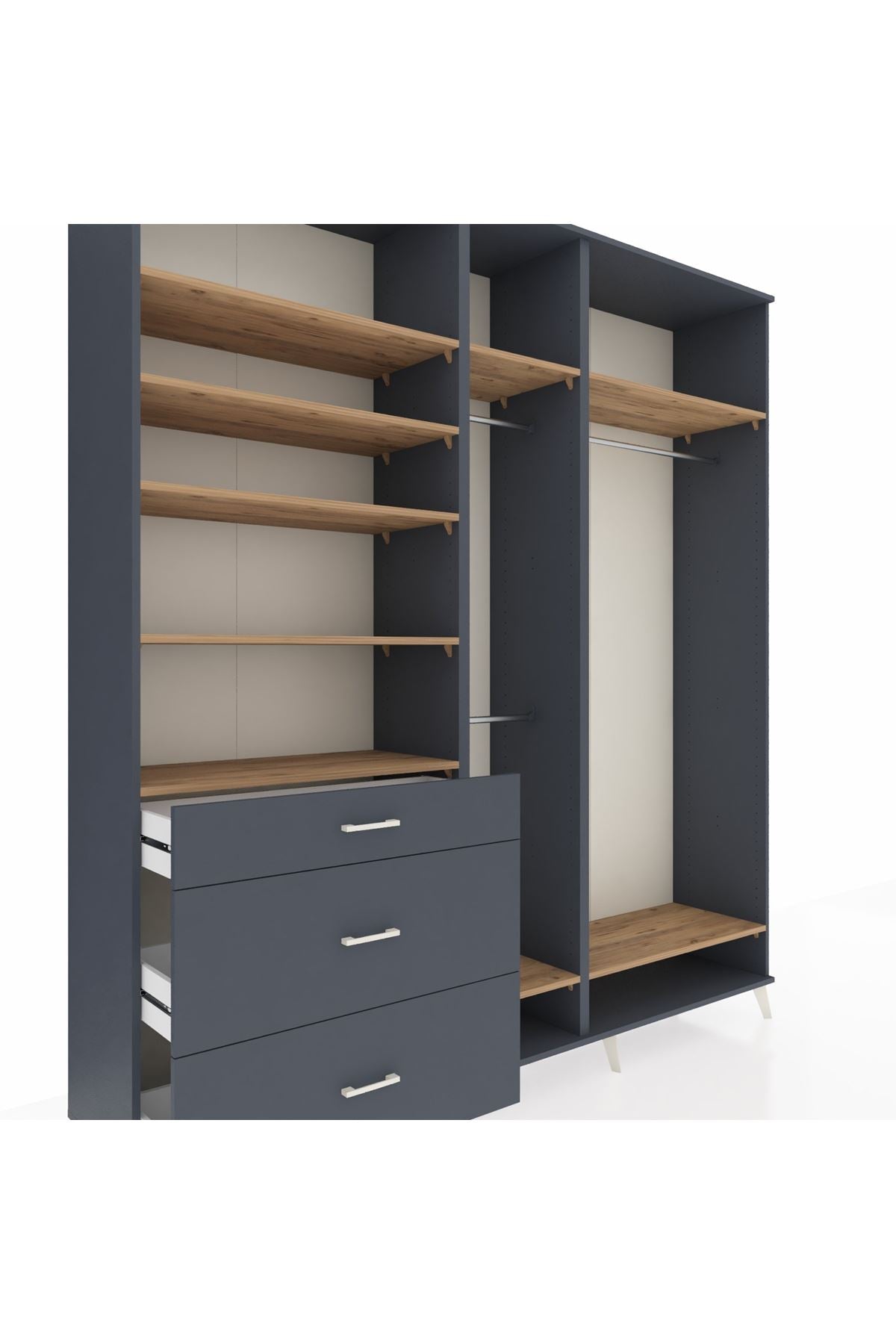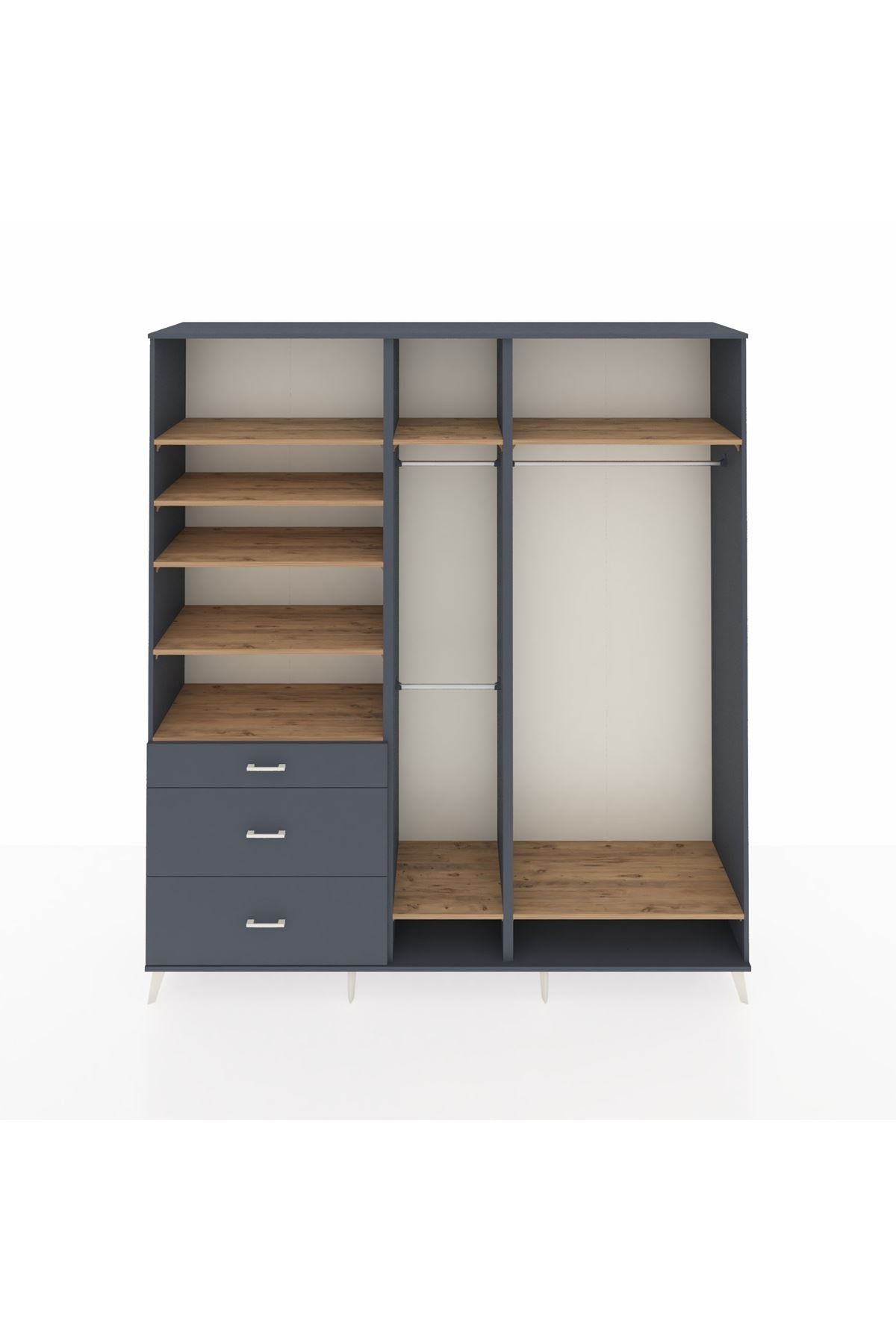 Hyperion Dolap 9 Raflı 3 Çekmeceli 3 Askılı 220x44x243 Antrasit-Çam/Antrasit