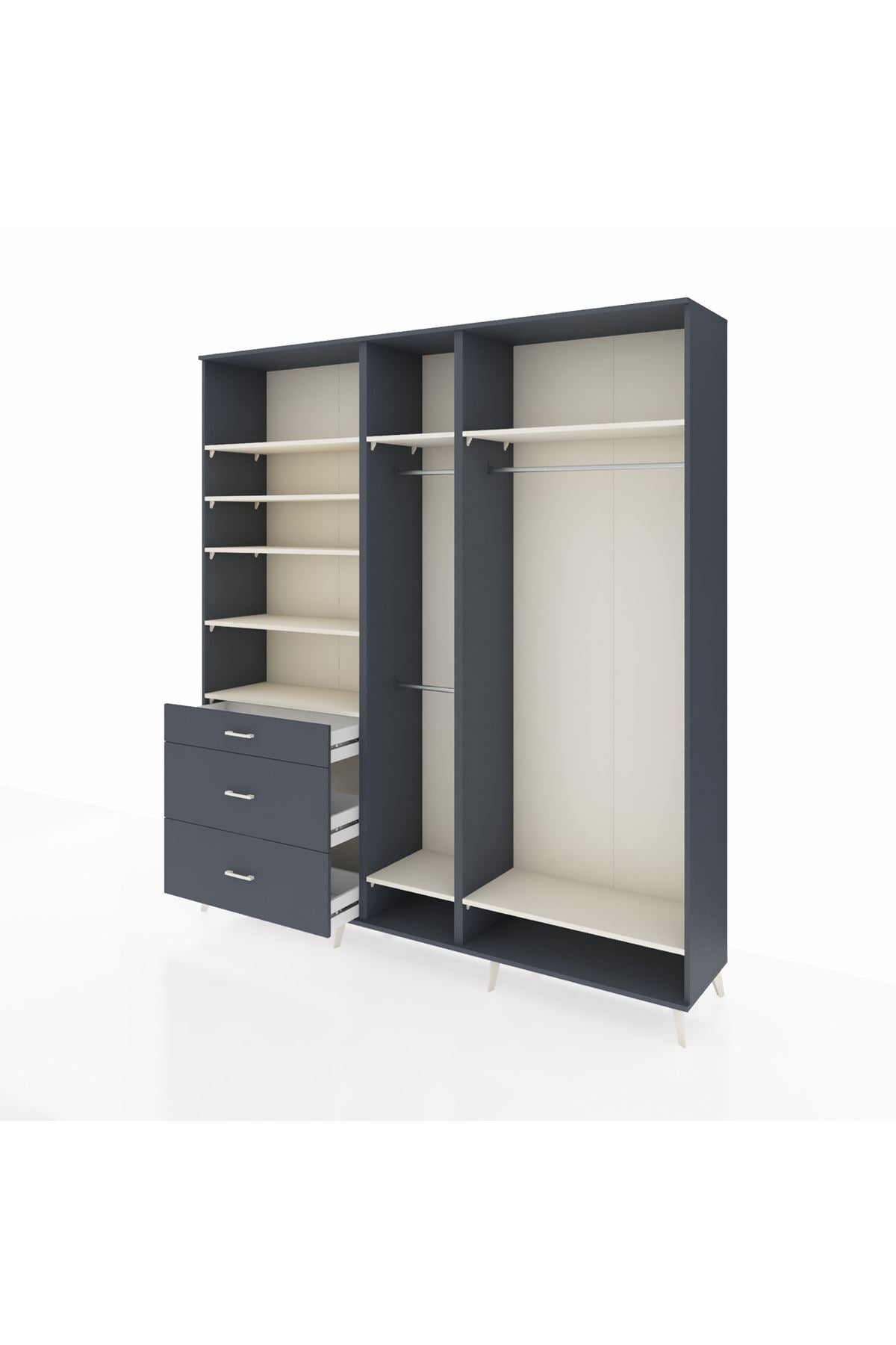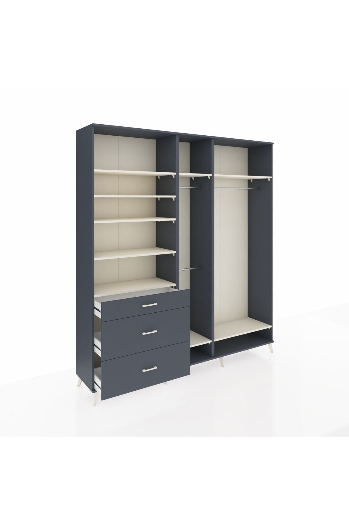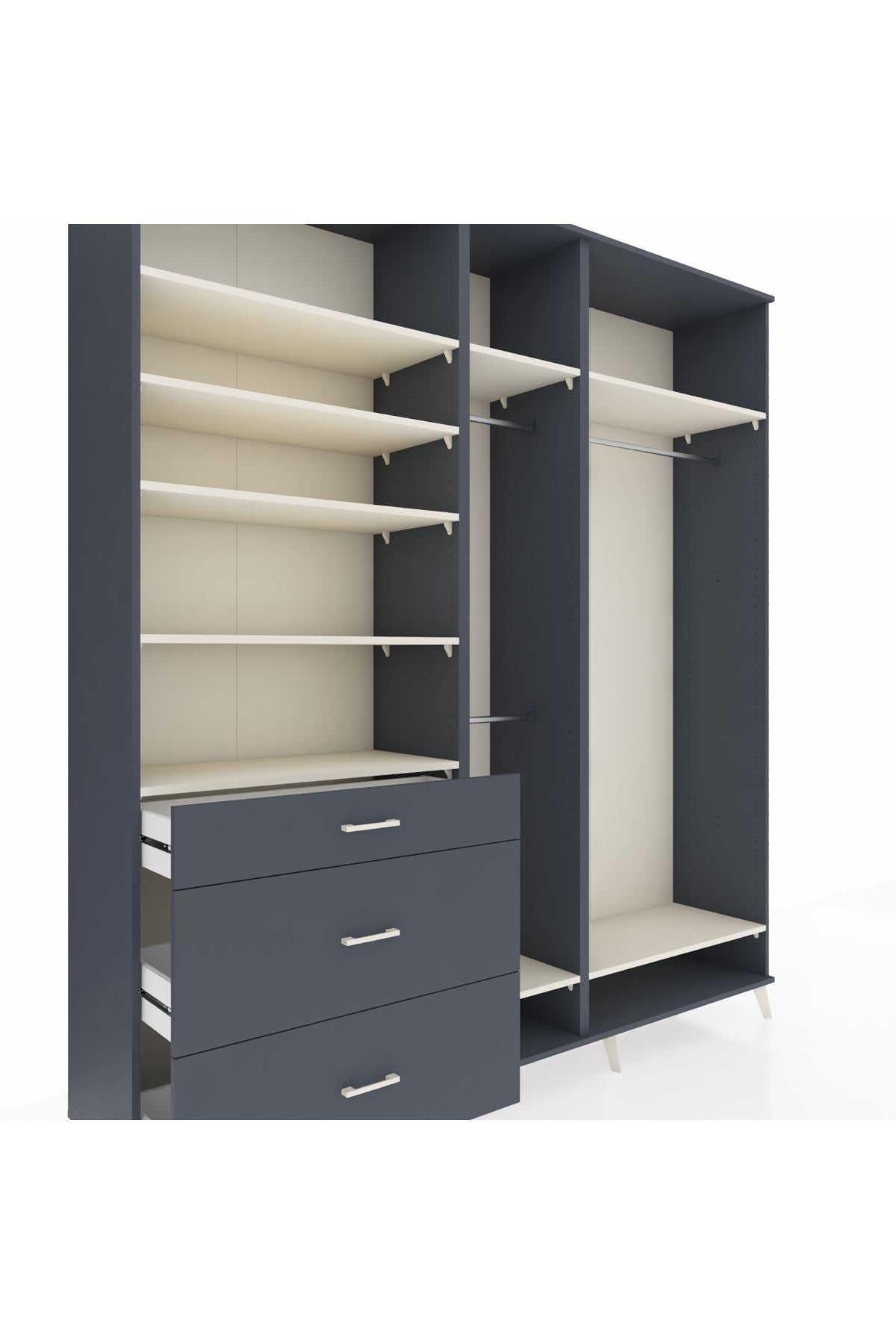 Hyperion Dolap 9 Raflı 3 Çekmeceli 3 Askılı 220x44x243 Antrasit-Aytaşı/Antrasit