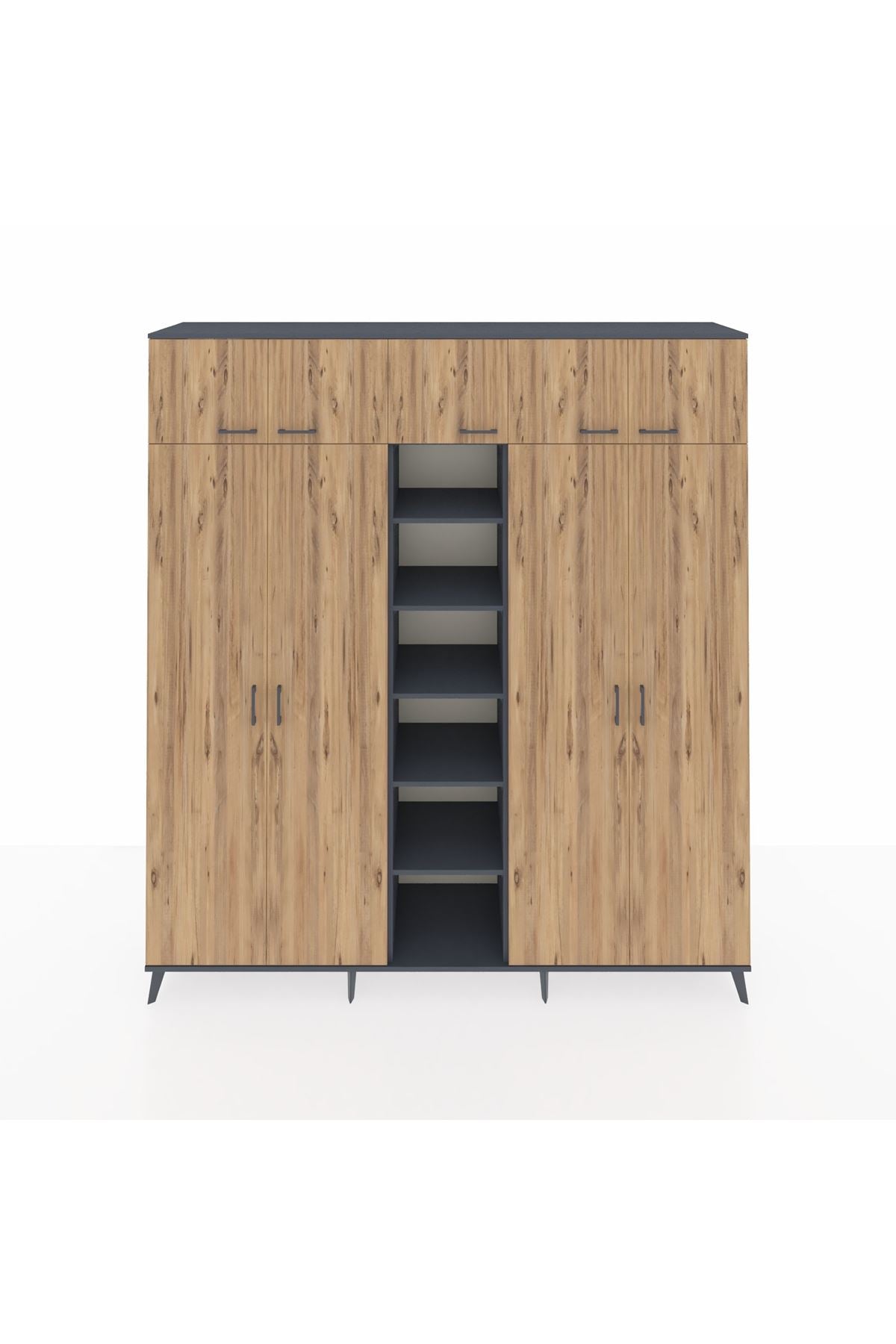 Hyperion Dolap 12 Raflı 9 Kapaklı 2 Askılı 220x44x243 Antrasit-Çam/Antrasit