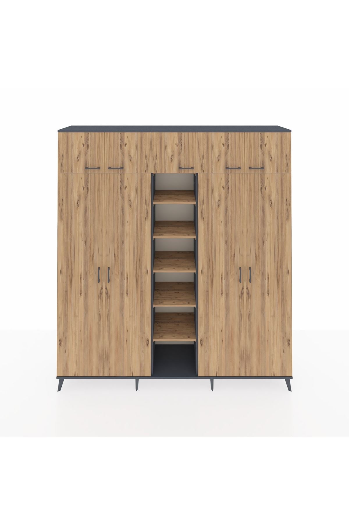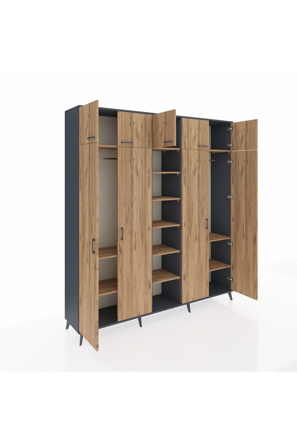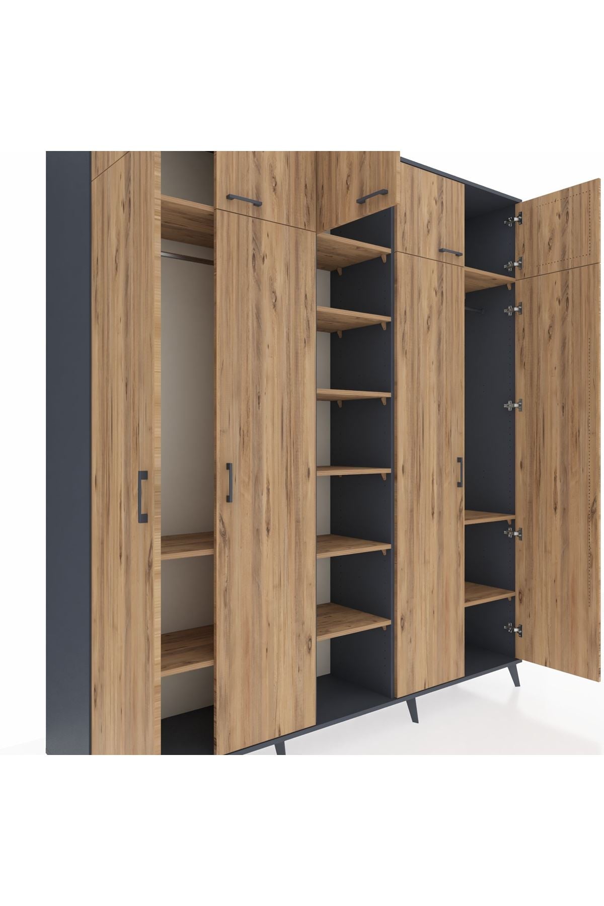 Hyperion Dolap 12 Raflı 9 Kapaklı 2 Askılı 220x44x243 Antrasit-Çam/Çam