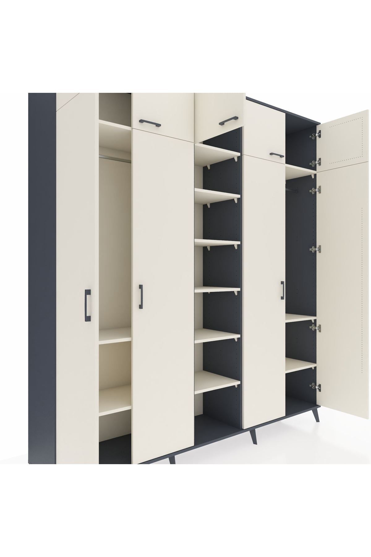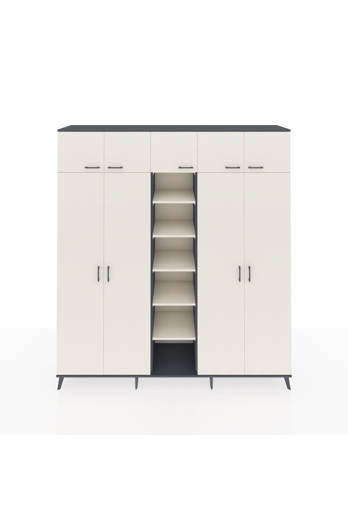 Hyperion Dolap 12 Raflı 9 Kapaklı 2 Askılı 220x44x243 Antrasit-Aytaşı/Aytaşı