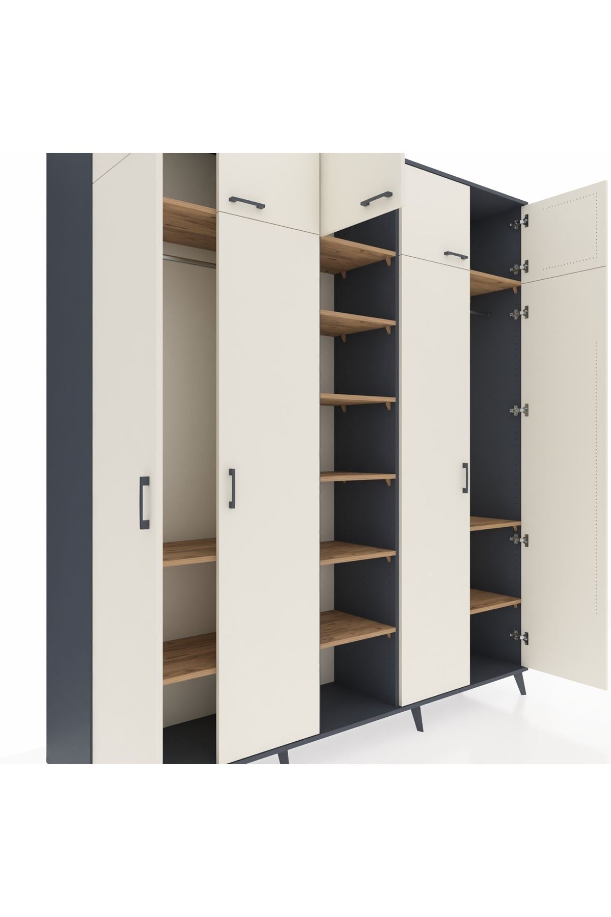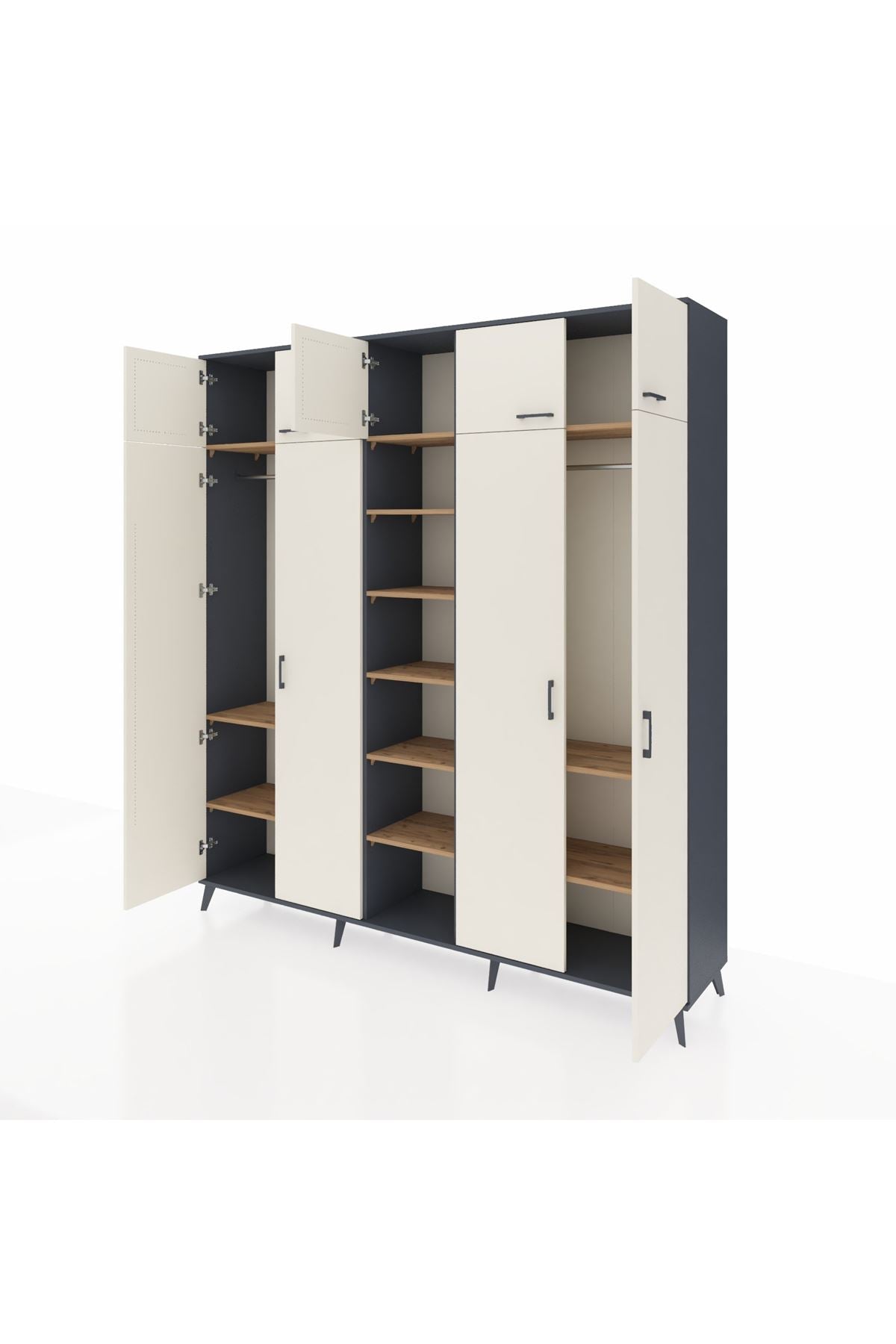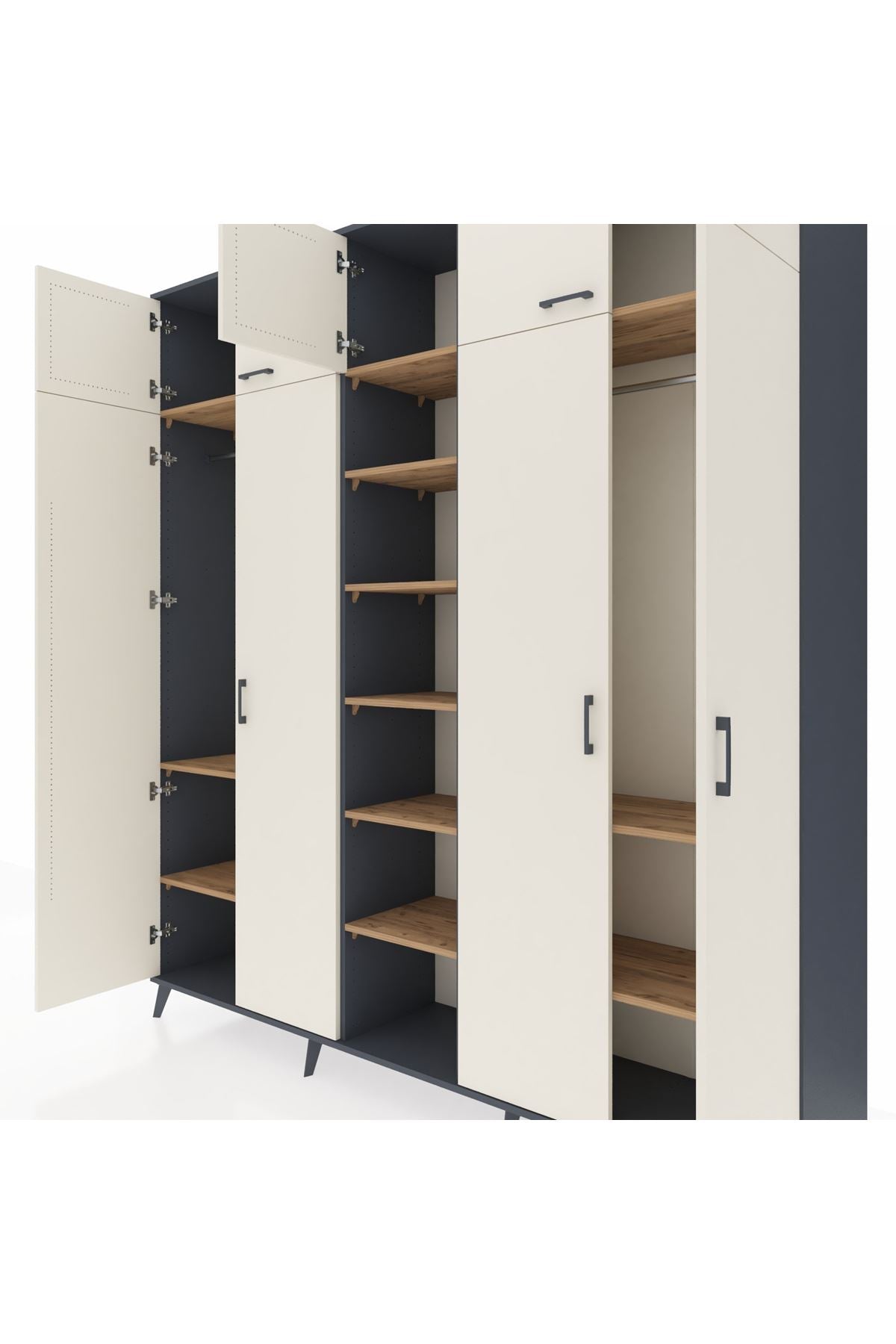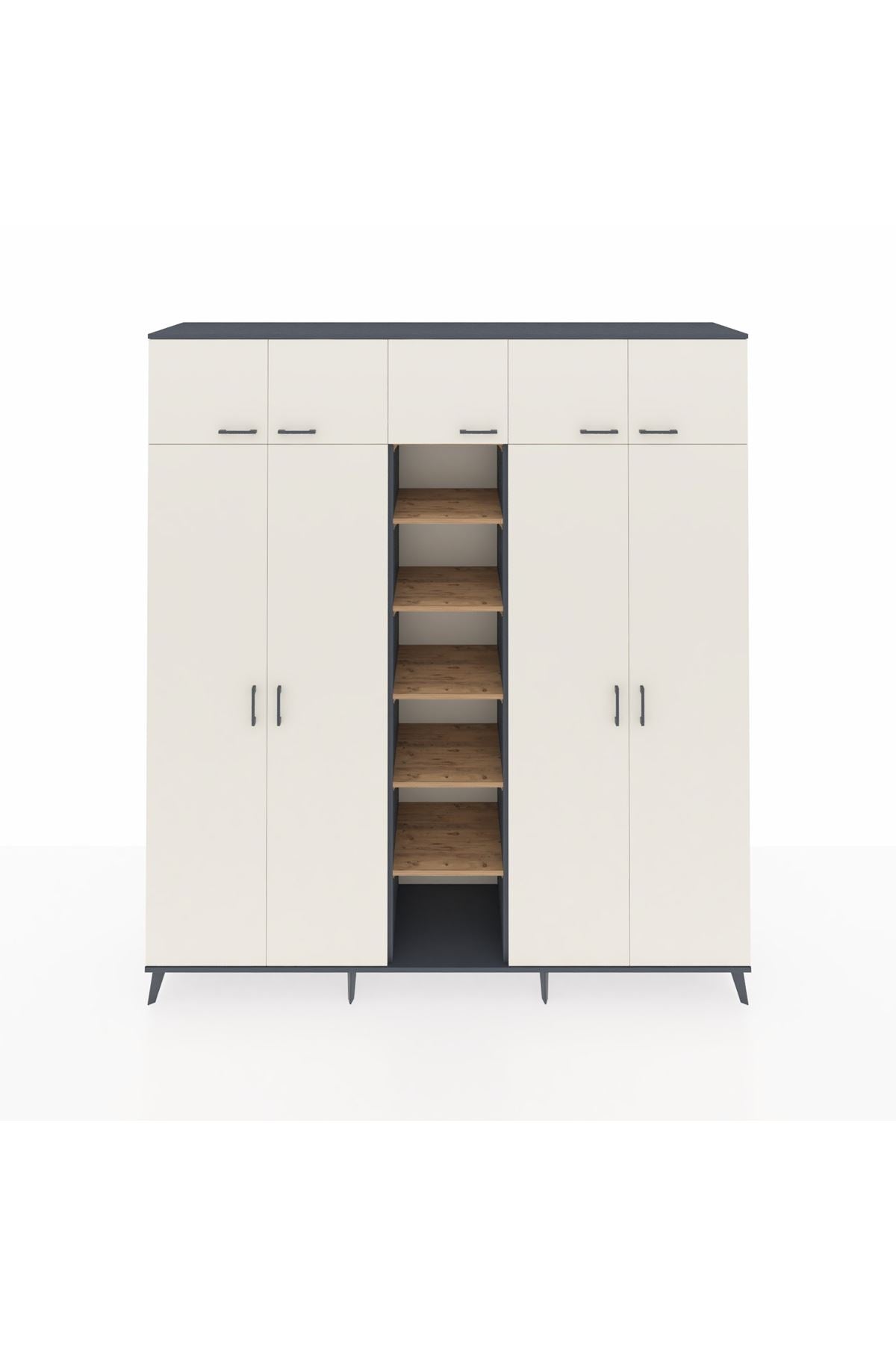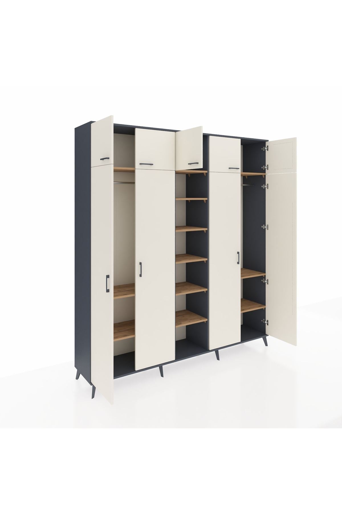 Hyperion Dolap 12 Raflı 9 Kapaklı 2 Askılı 220x44x243 Antrasit-Aytaşı/Çam