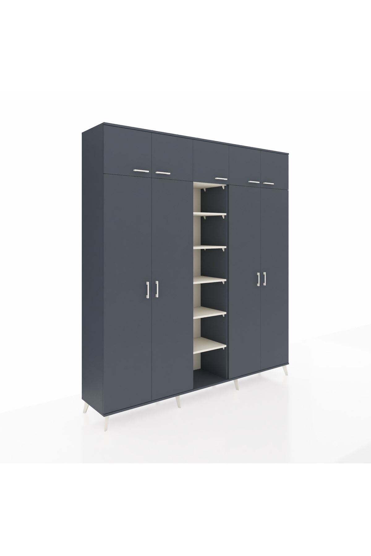 Hyperion Dolap 12 Raflı 9 Kapaklı 2 Askılı 220x44x243 Antrasit-Antrasit/Aytaşı