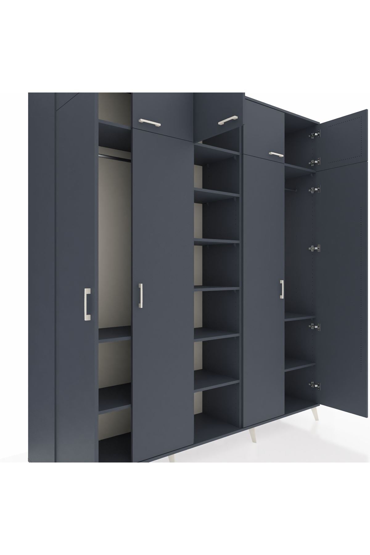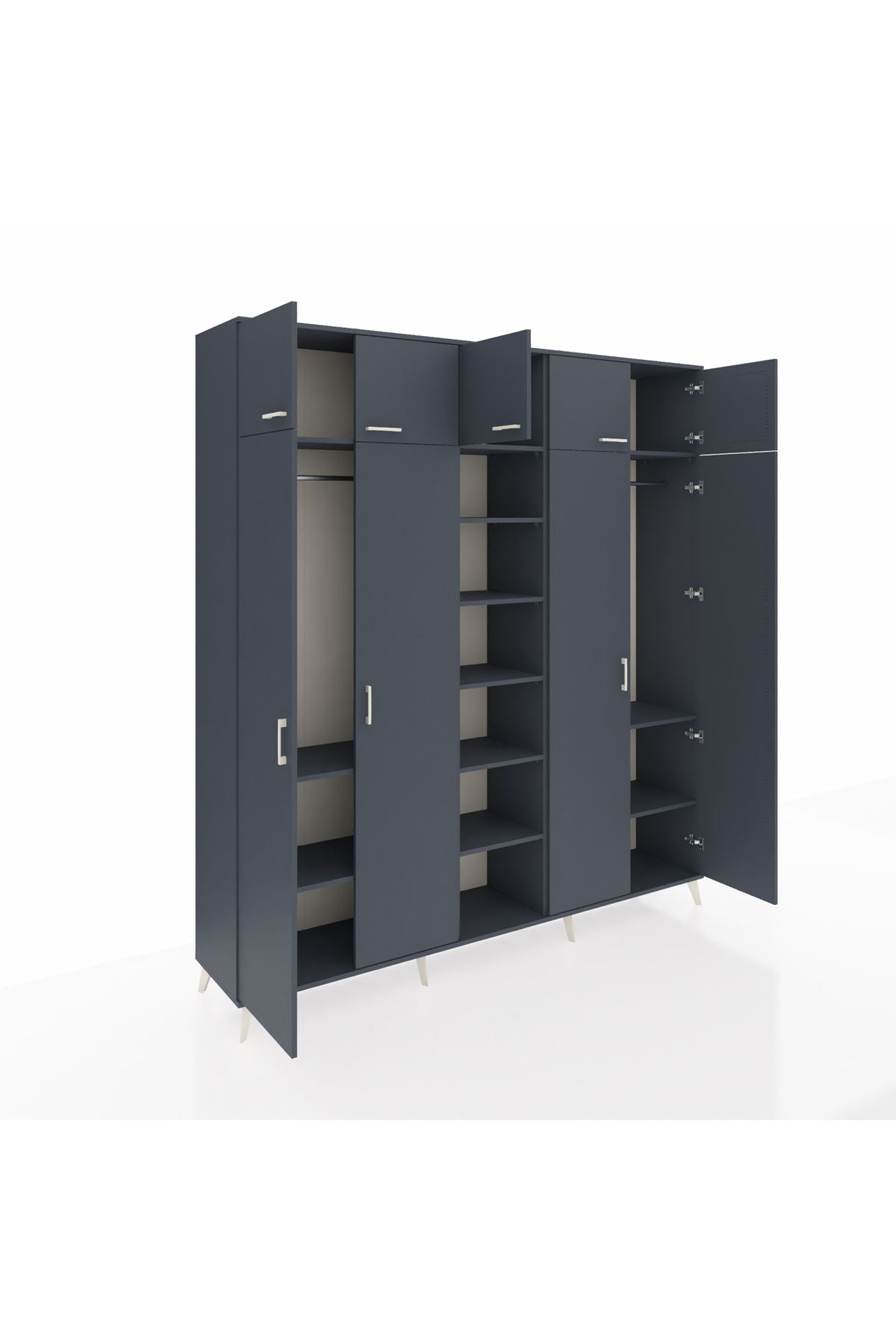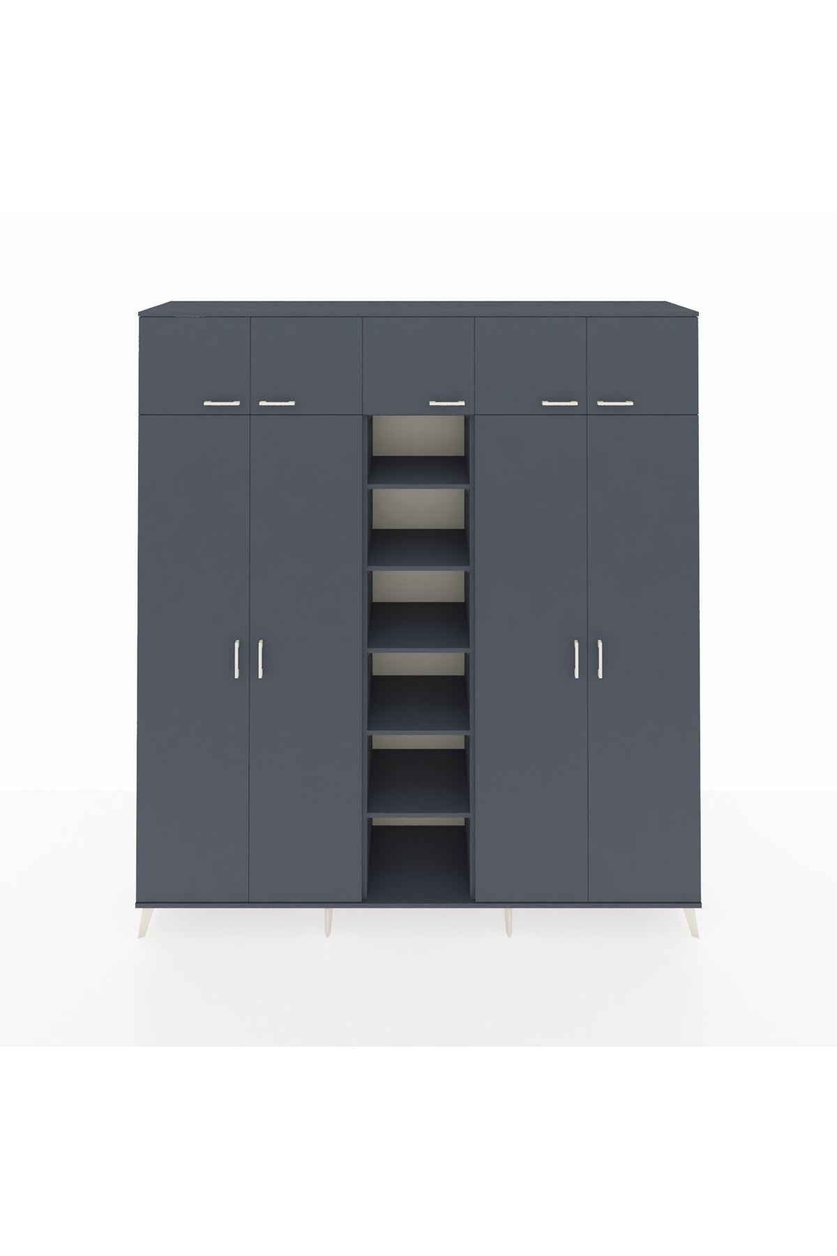 Hyperion Dolap 12 Raflı 9 Kapaklı 2 Askılı 220x44x243 Antrasit-Antrasit/Antrasit