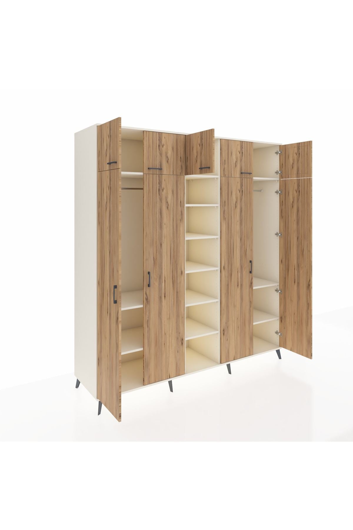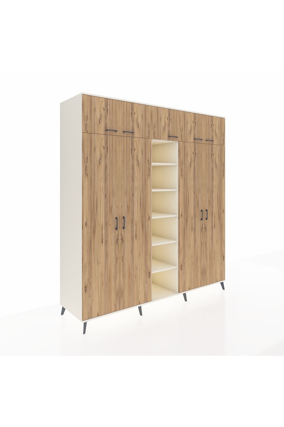 ✨ Kronos Dolap, 220x59x243 ölçülerinde antrasit-çam ve aytaşı renk seçenekleriyle, estetiği ve işlevselliği aynı çatı altında buluşturuyor. 12 raflı, 9 kapaklı ve 2 askılı bölmesi ile günlük yaşamda gereksinim duyduğunuz her şeyi düzenlemenize yardımcı olur.