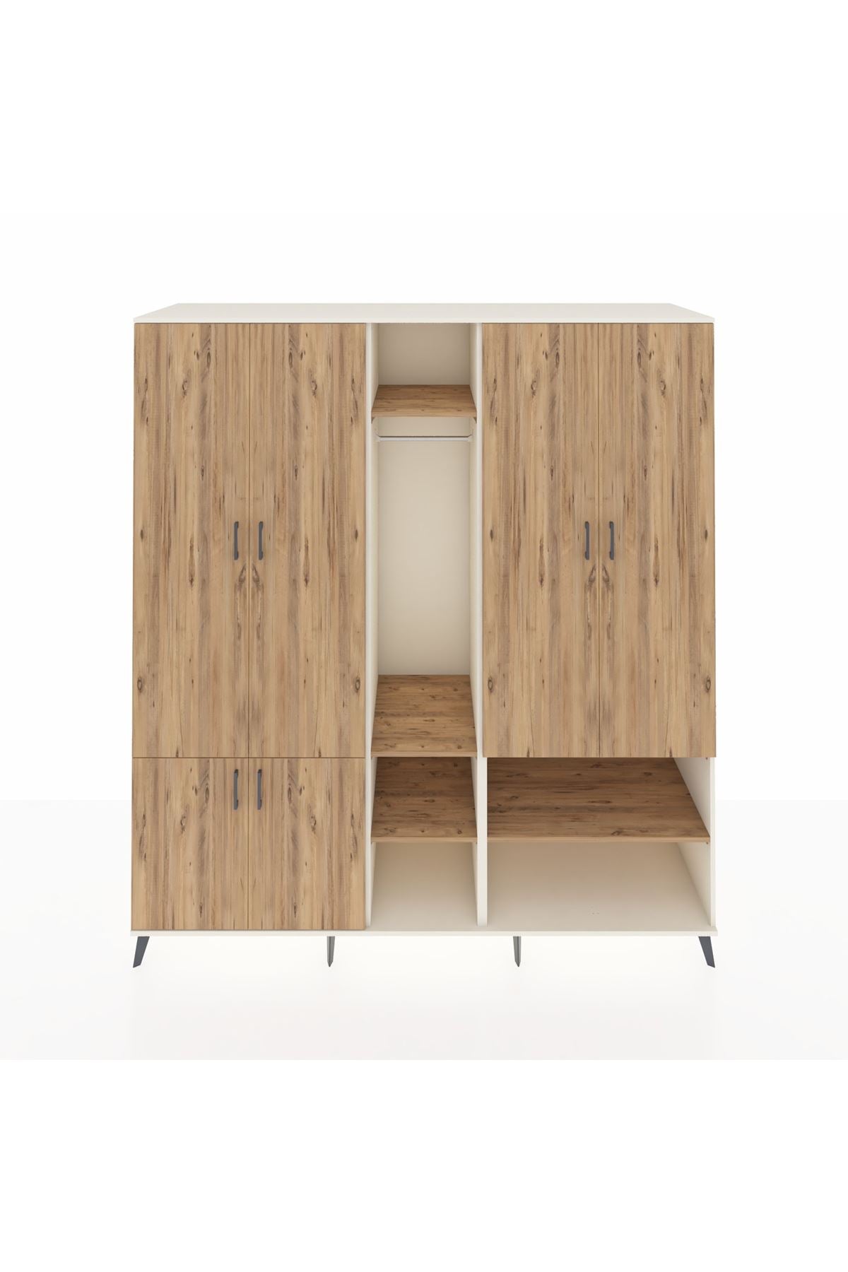 🔩 Metal ayakları ve metal kulpları ile dayanıklılık en üst seviyeye taşınıyor, her bölümü Kastamonu Entegre 1. sınıf suntalam gövde ve kapak ile güçlendirilmiş durumda. Tüm kenarlarında 1.2 mm kalınlığında bant kullanılarak, aşınma ve darbeye karşı ekstra koruma sağlanıyor.