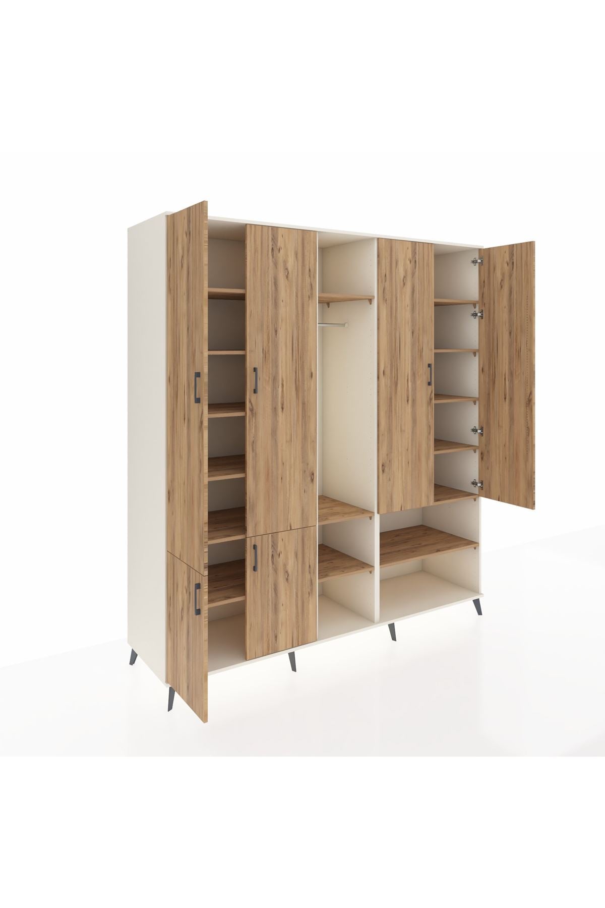 Kronos Dolap 15 Raflı 5 Kapaklı Tek Askılı 220x59x243 Aytaşı-Çam/Çam