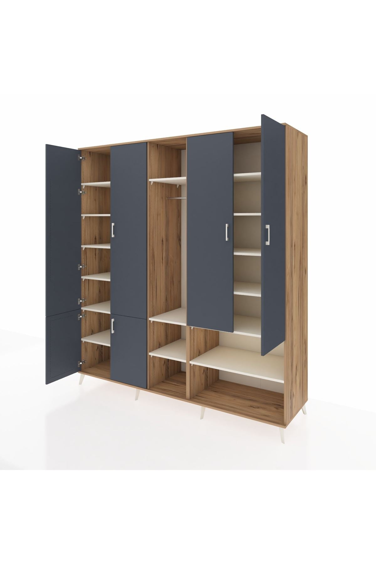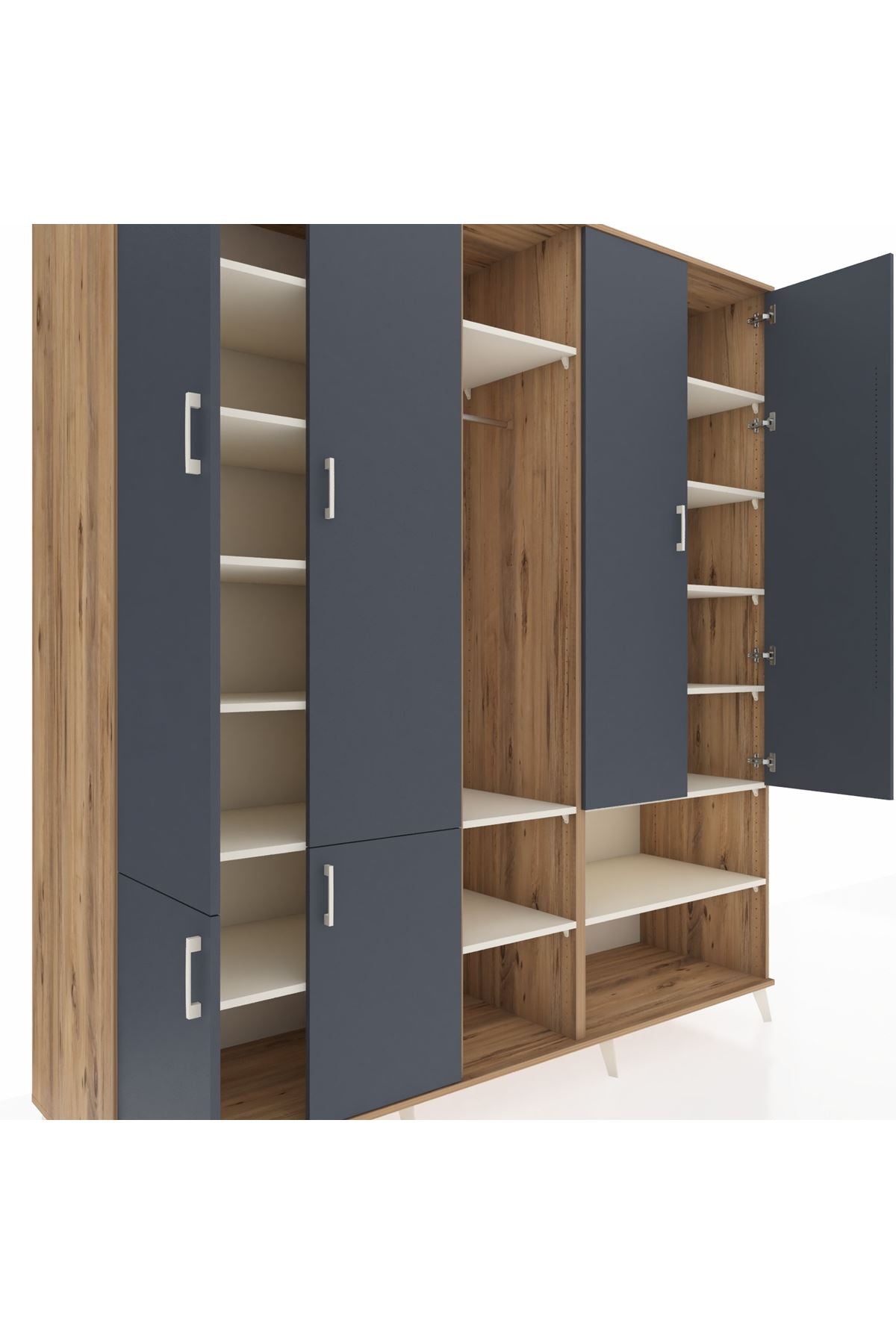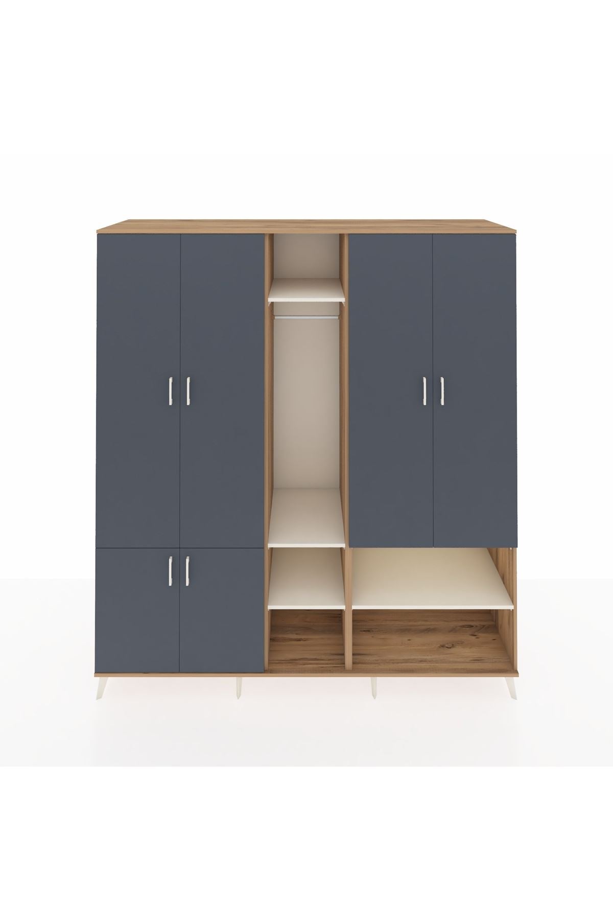Kronos Dolap 15 Raflı 5 Kapaklı Tek Askılı 220x59x243 Çam-Antrasit/Aytaşı