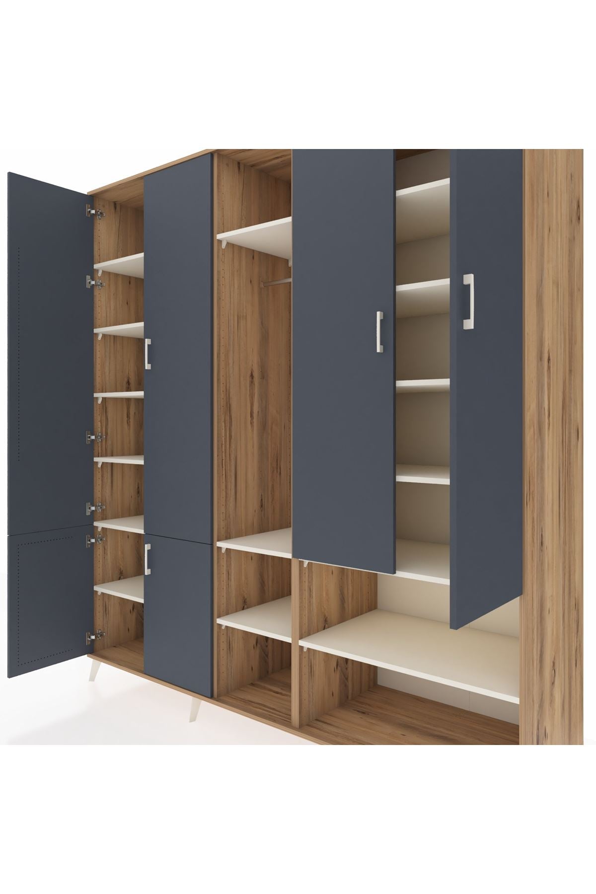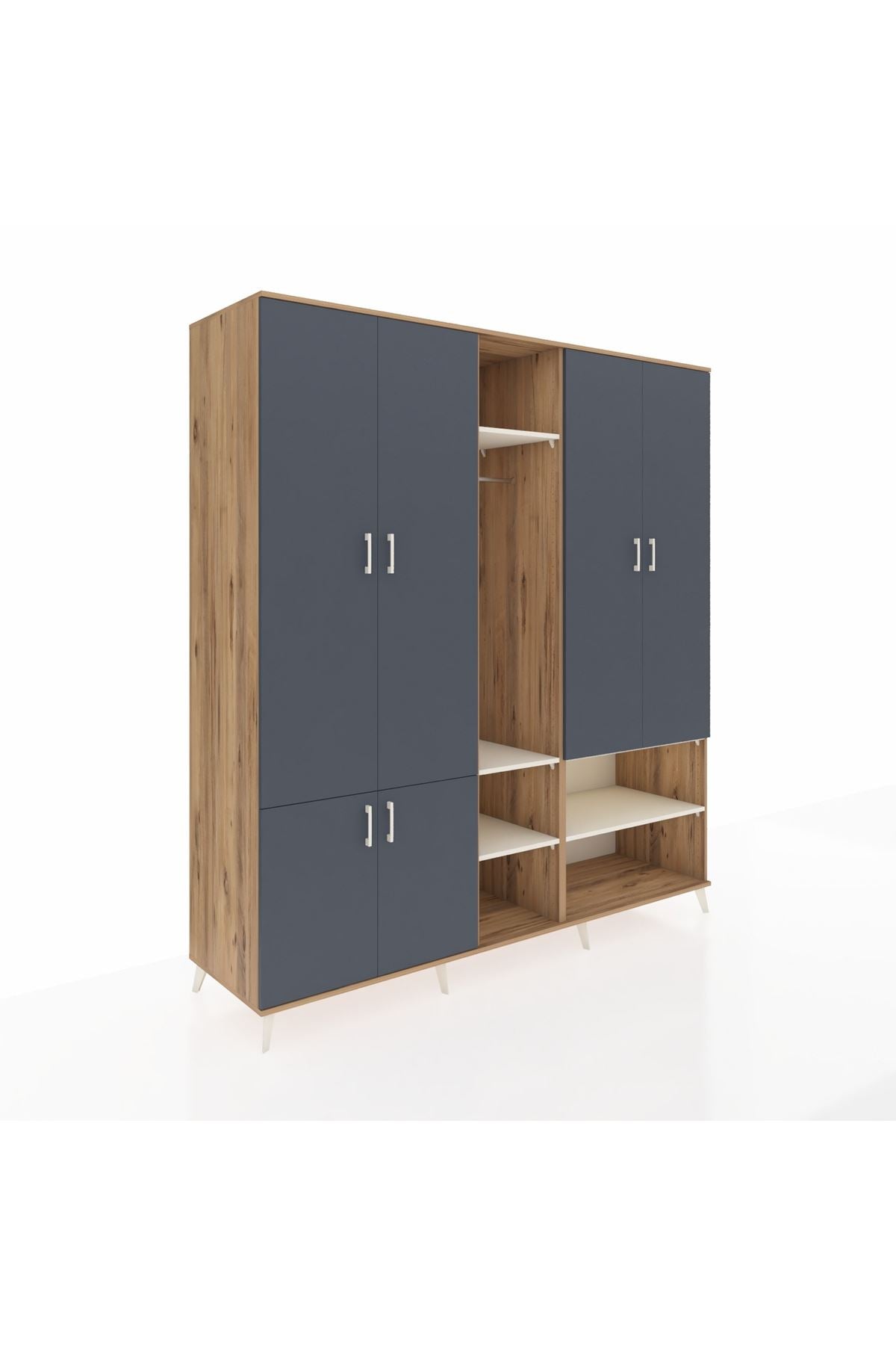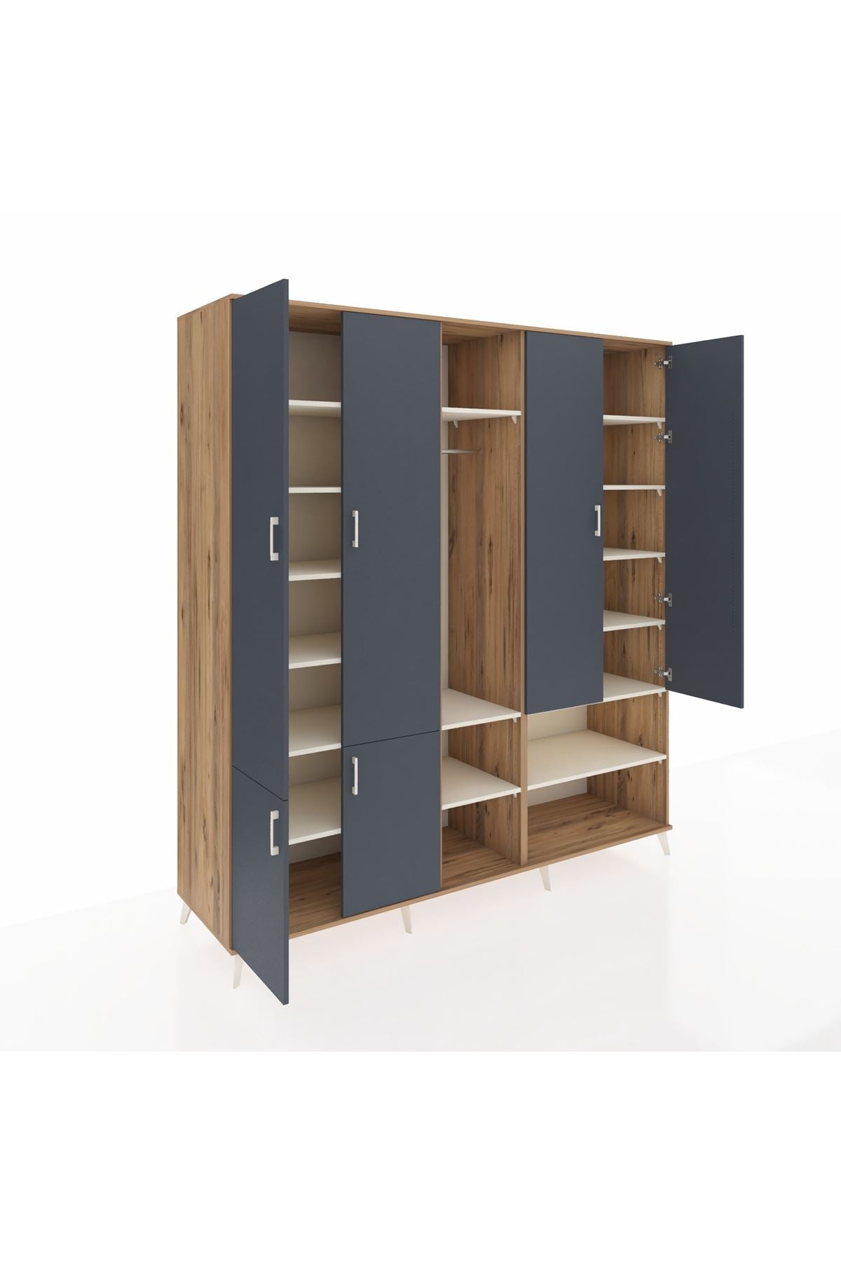 Kronos Dolap 15 Raflı 5 Kapaklı Tek Askılı 220x59x243 Çam-Antrasit/Aytaşı