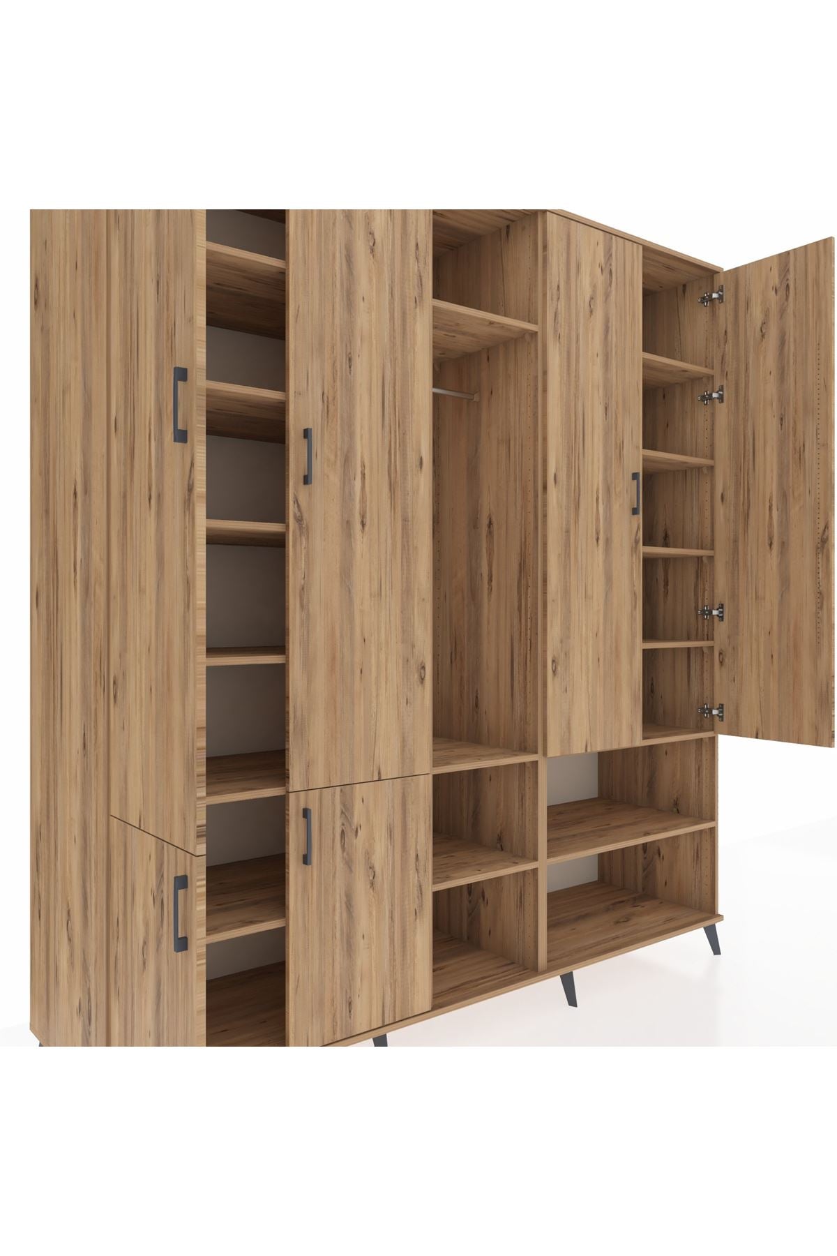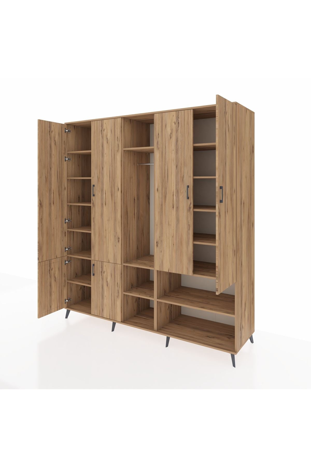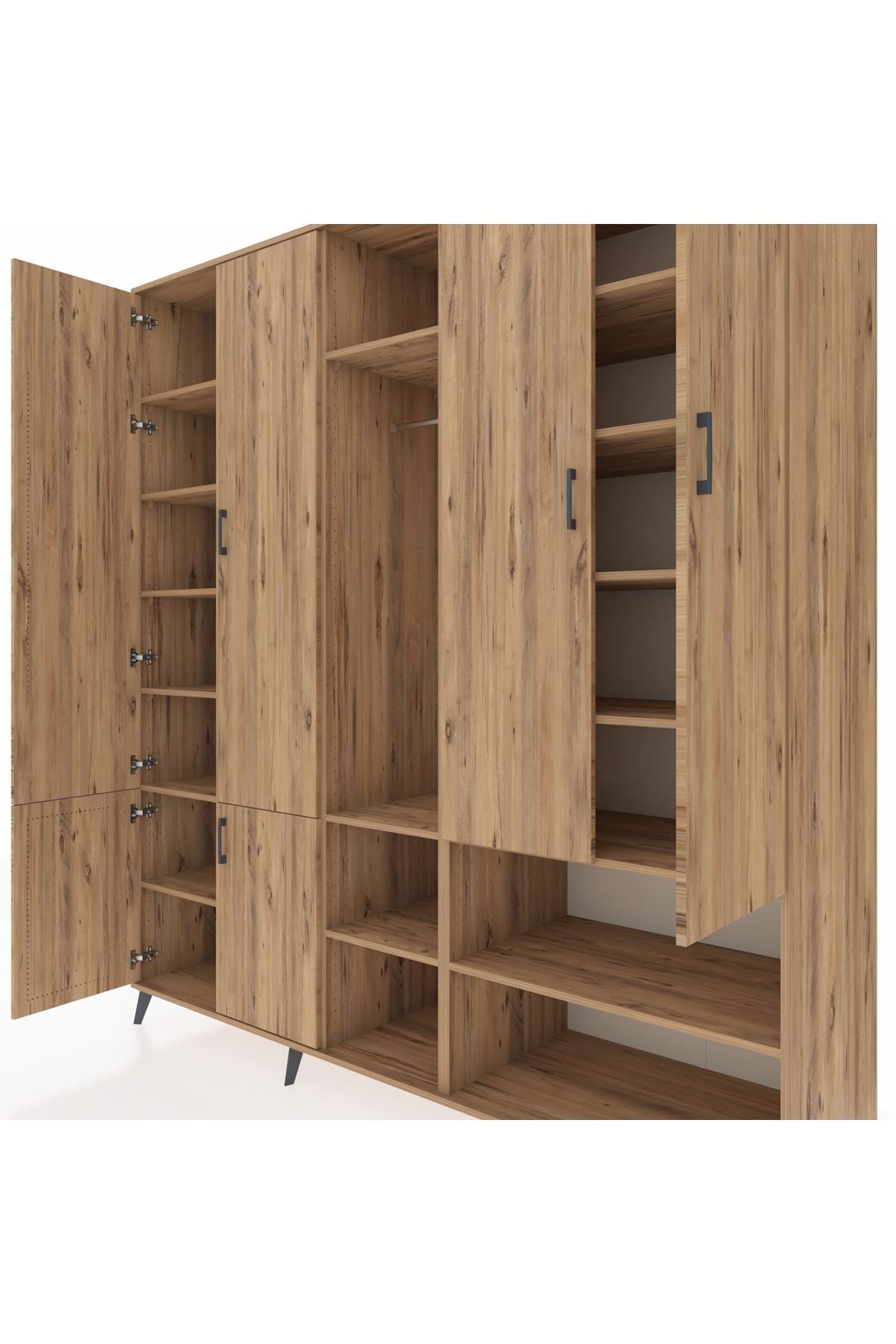 Kronos Dolap 15 Raflı 5 Kapaklı Tek Askılı 220x59x243 Çam-Çam/Çam