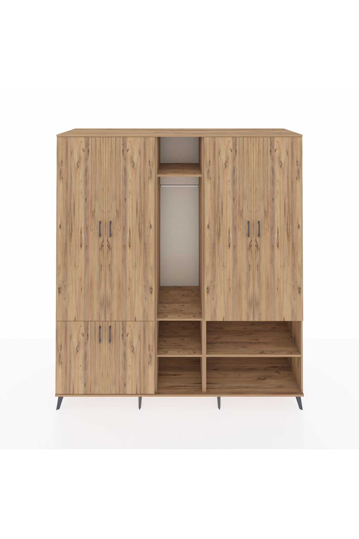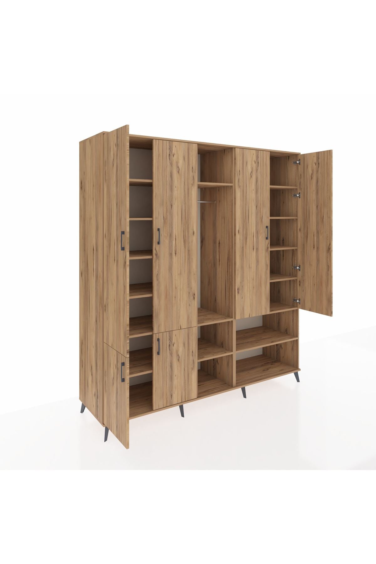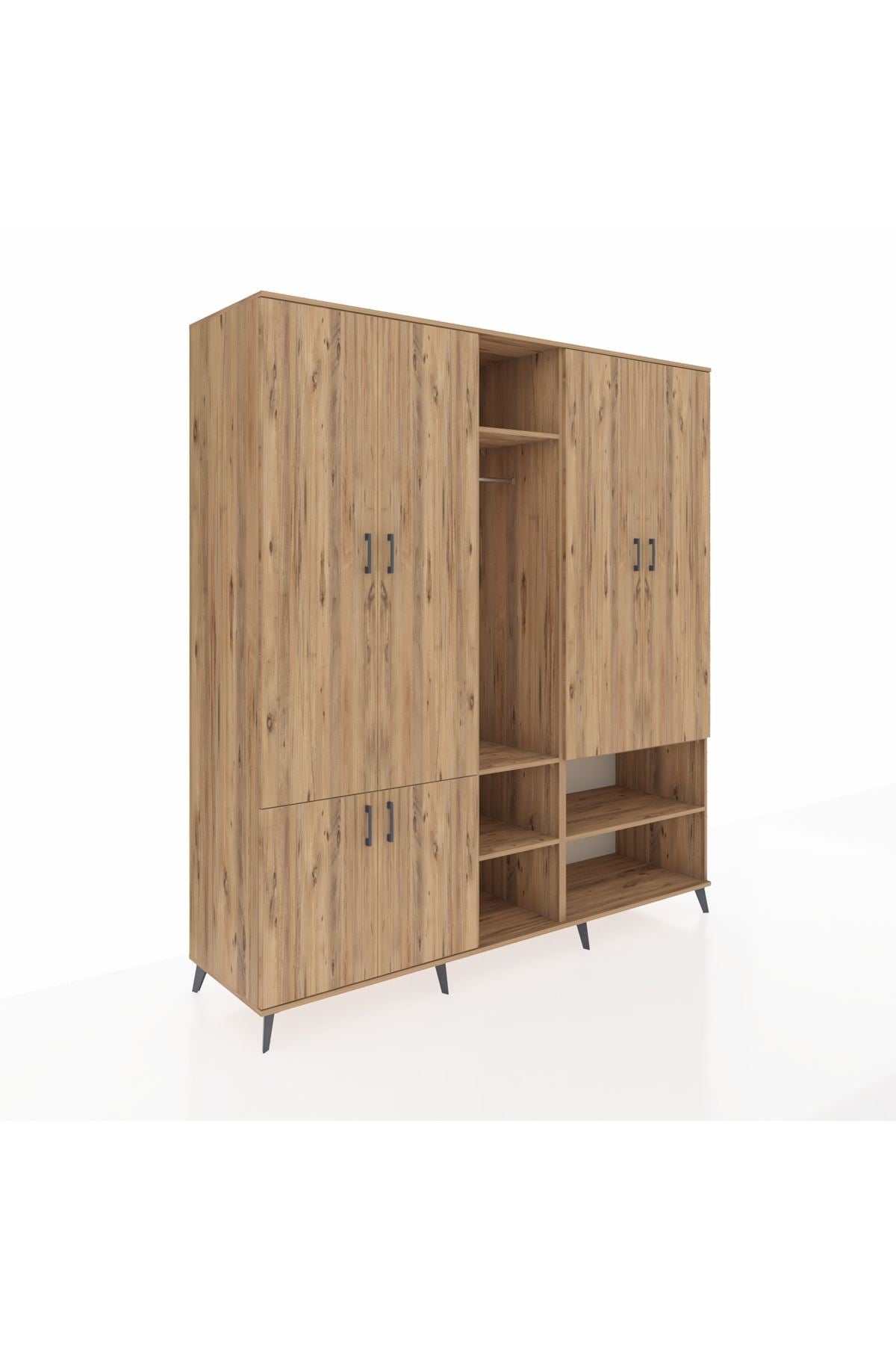Kronos Dolap 15 Raflı 5 Kapaklı Tek Askılı 220x59x243 Çam-Çam/Çam