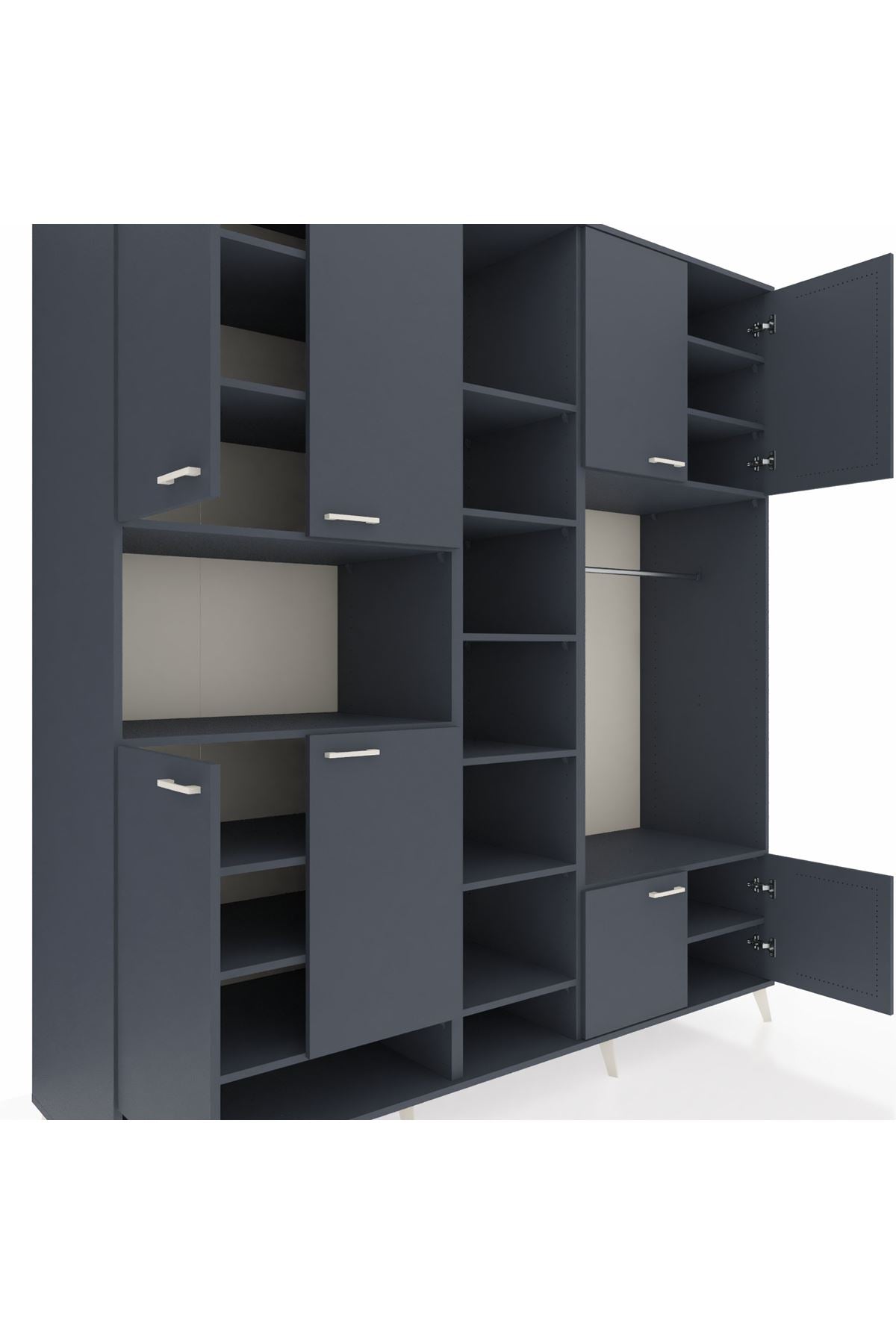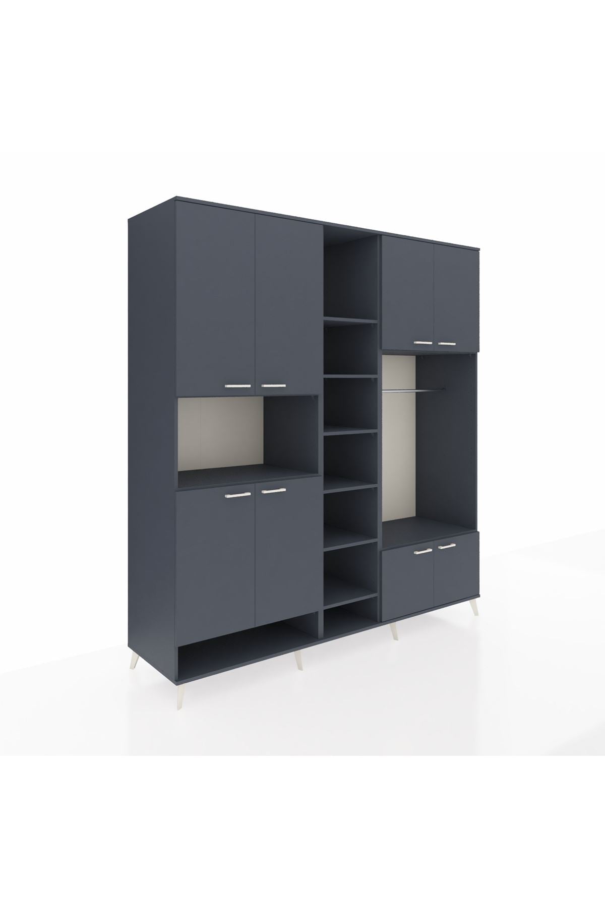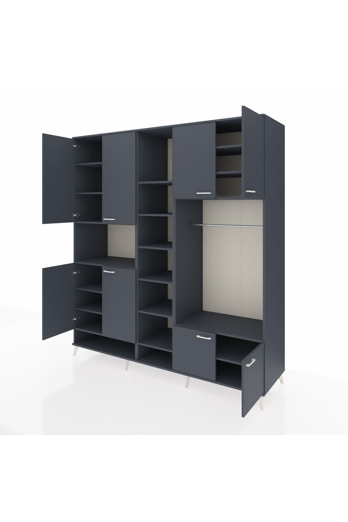 Kronos Dolap 18 Raflı 8 Kapaklı Tek Askılı 220x59x243 Antrasit-Antrasit/Antrasit