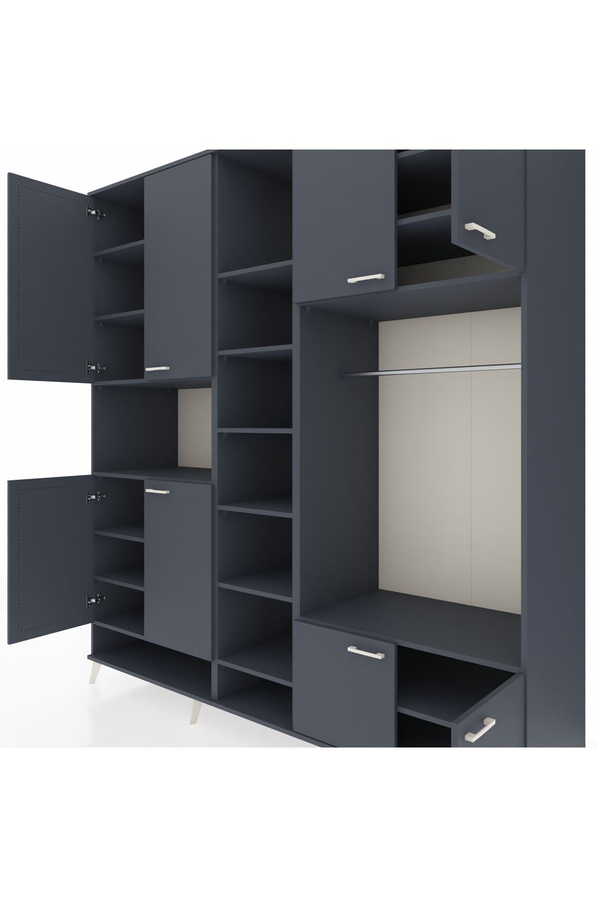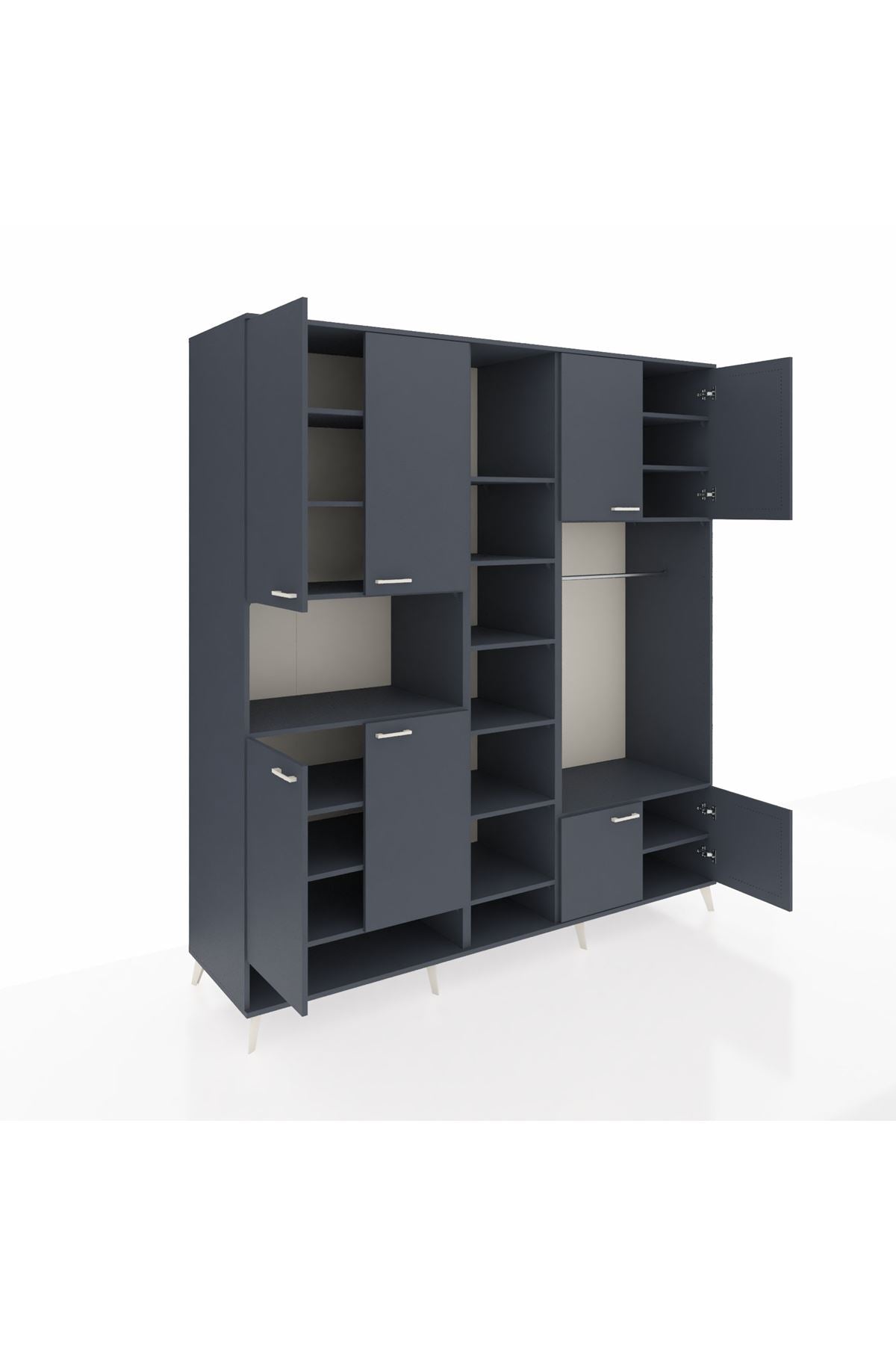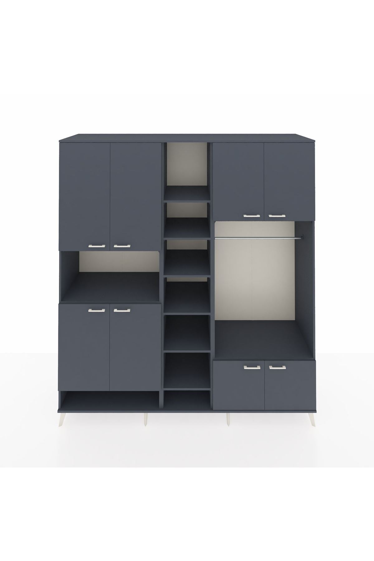 Kronos Dolap 18 Raflı 8 Kapaklı Tek Askılı 220x59x243 Antrasit-Antrasit/Antrasit